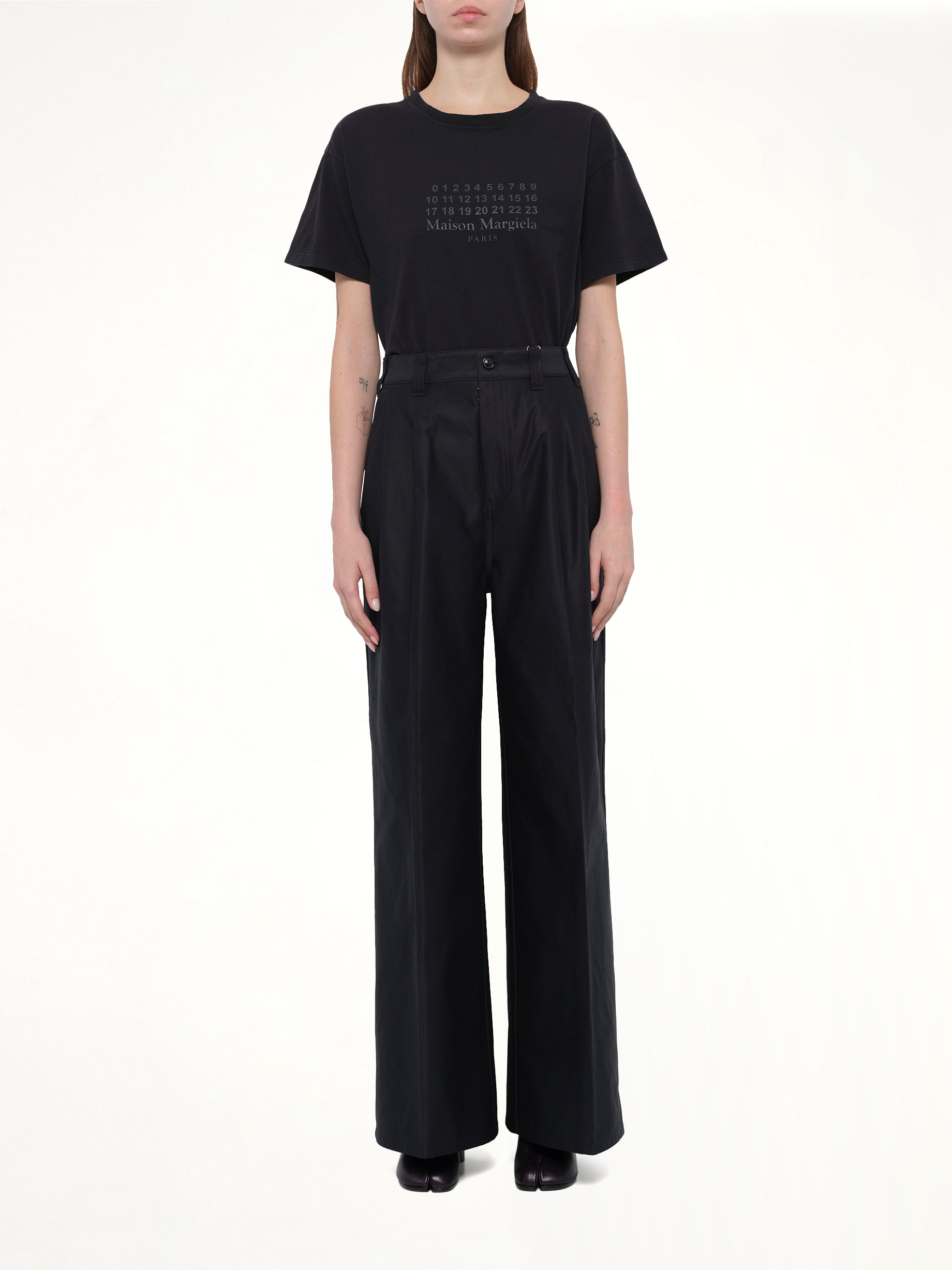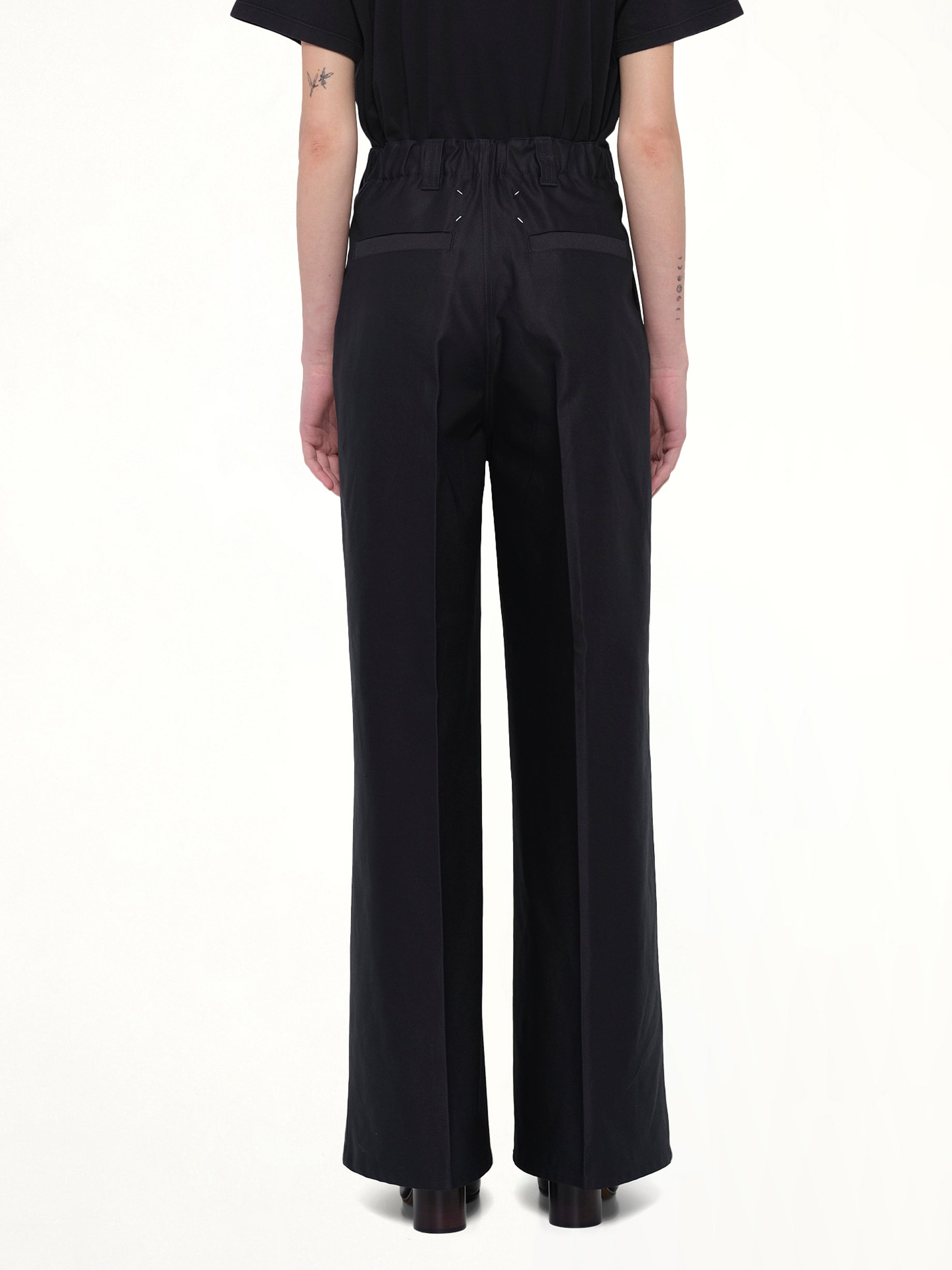 Maison Margiela's Cotton Palazzo Trouser in Black is a sophisticated addition to any wardrobe, offering a blend of comfort and style. These trousers are designed to provide a flattering silhouette with a modern edge.
