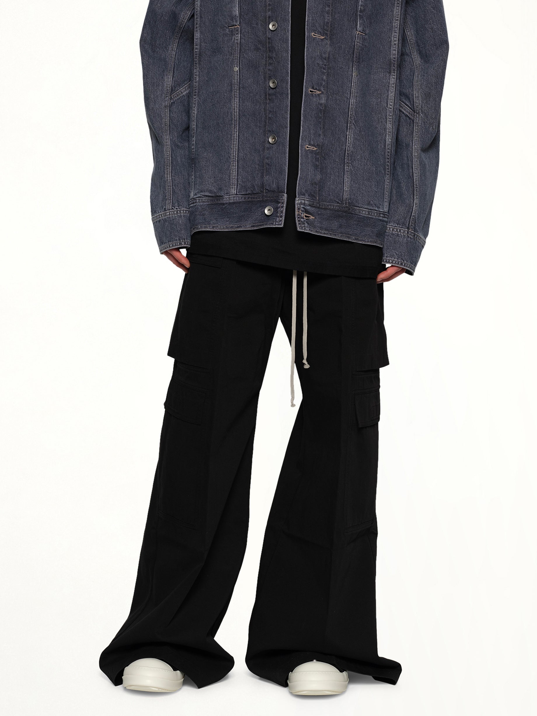 DRKSHDW's Cotton Twill Double Cargo Jumbo Belas in Black is a bold and functional piece designed for both style and utility. Featuring a contemporary silhouette, these cargos offer ample storage and a modern edge to any outfit.