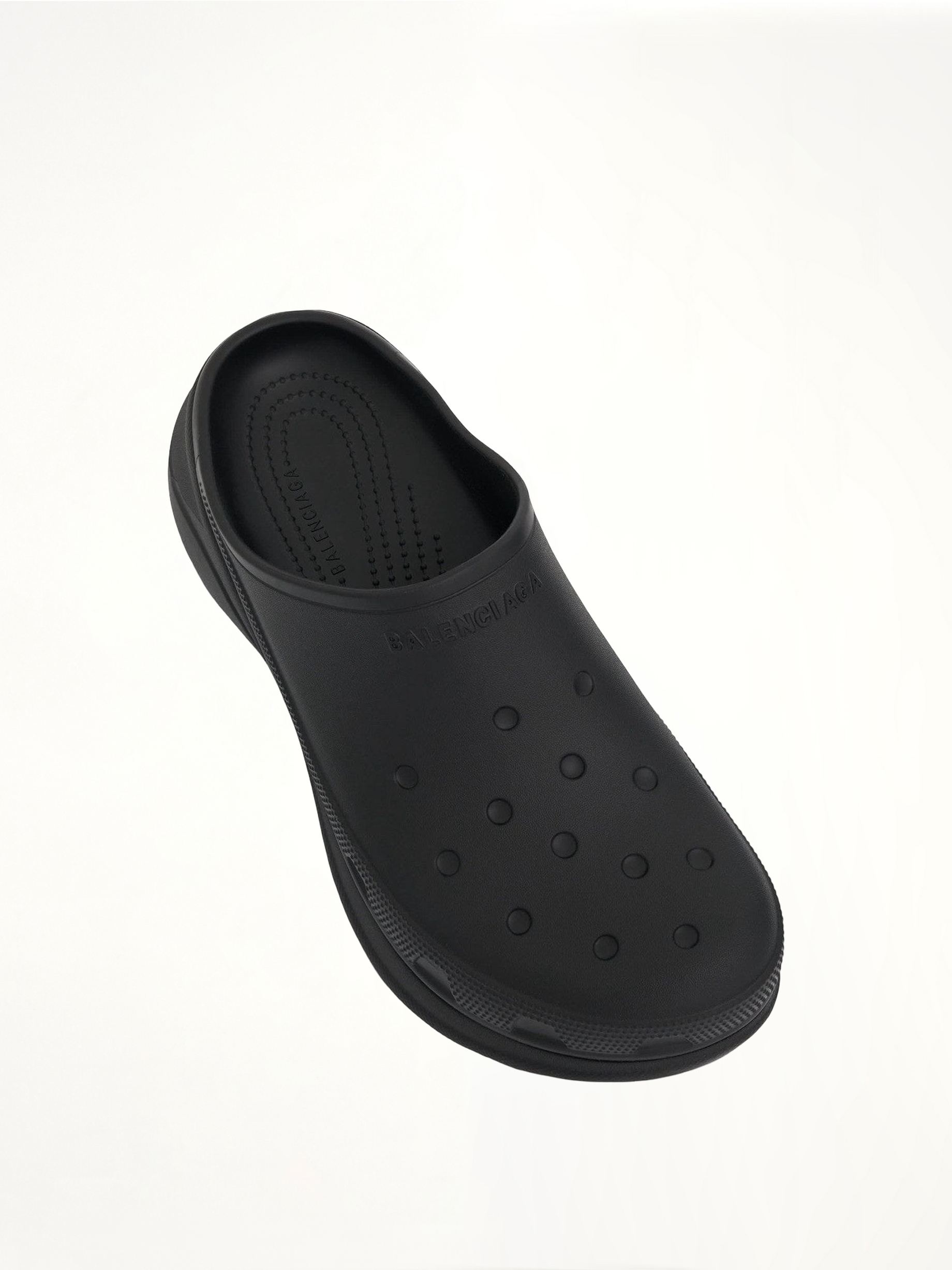 The Crocs Mule in Black is crafted with signature rubber for reliable comfort and durability. Its slip-on design provides easy on-and-off wear with a roomy and forgiving fit.