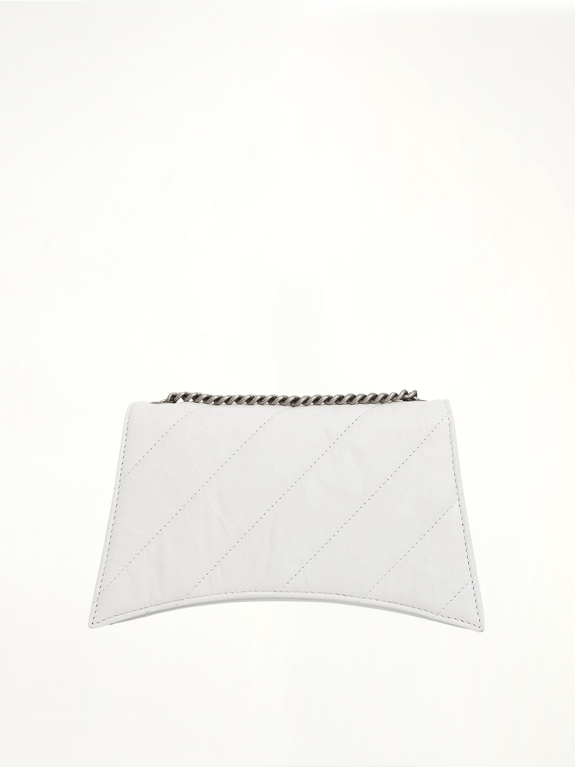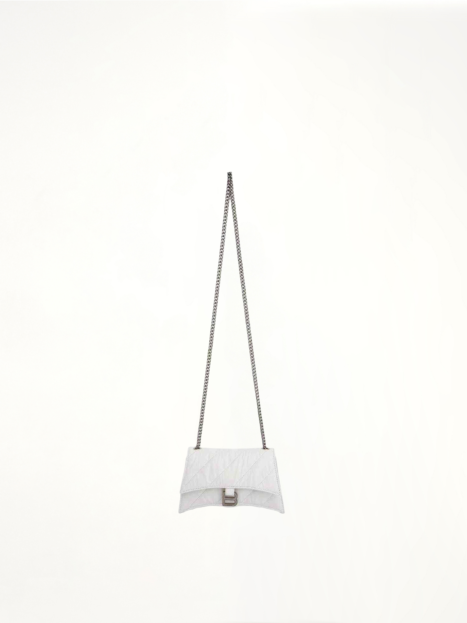 Crushed Calfskin and Quilted Chain Bag, a luxurious accessory that exudes sophistication and style. This exquisite chain bag is crafted from crushed calfskin, creating a unique and textured appearance. The quilted pattern adds an element of elegance and refinement to the design, while the curvilinear base enhances its modern appeal.