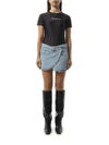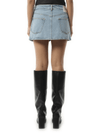 Made with high-quality denim, this mini skirt will elevate any outfit. The blue washed color adds a vintage touch, while the mini length gives it a modern twist. Perfect for any occasion, this skirt is a must-have for any fashion-forward wardrobe.