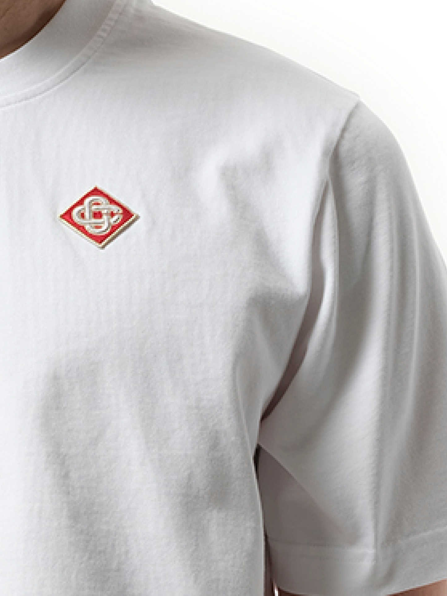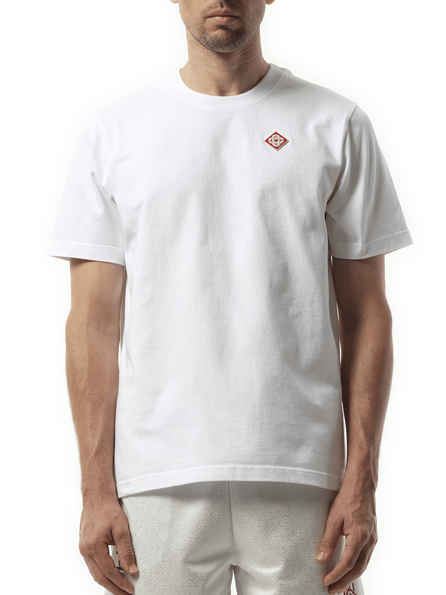 This Diamond Logo Patch T-Shirt in White is a must-have for any fashion-forward individual. Made with high-quality materials and featuring a sleek diamond logo patch, this shirt effortlessly combines style and comfort.