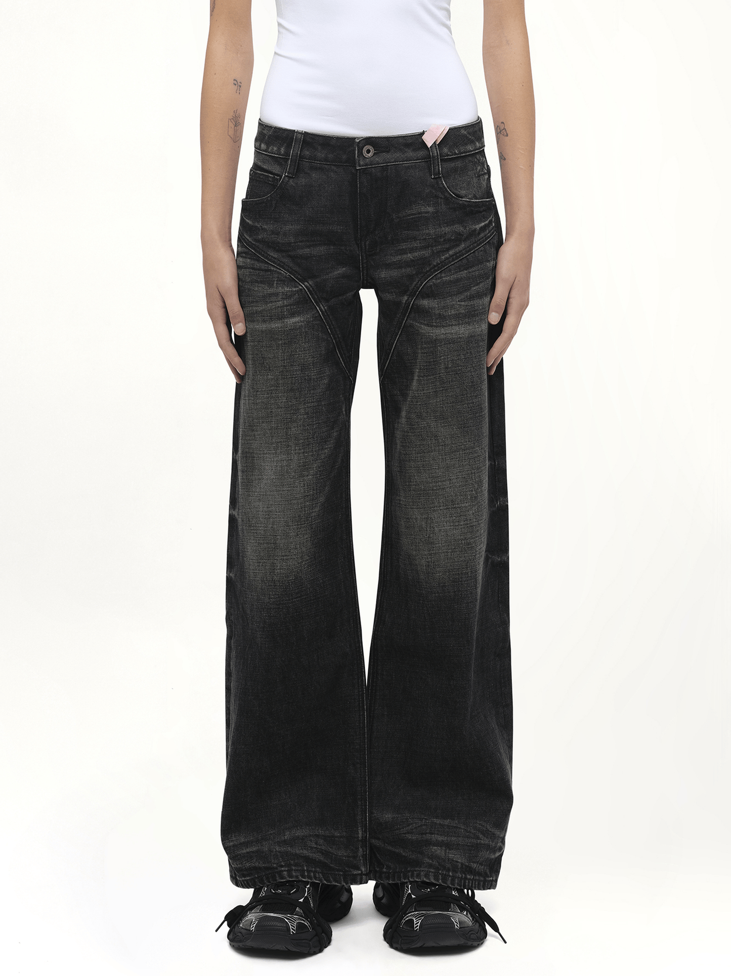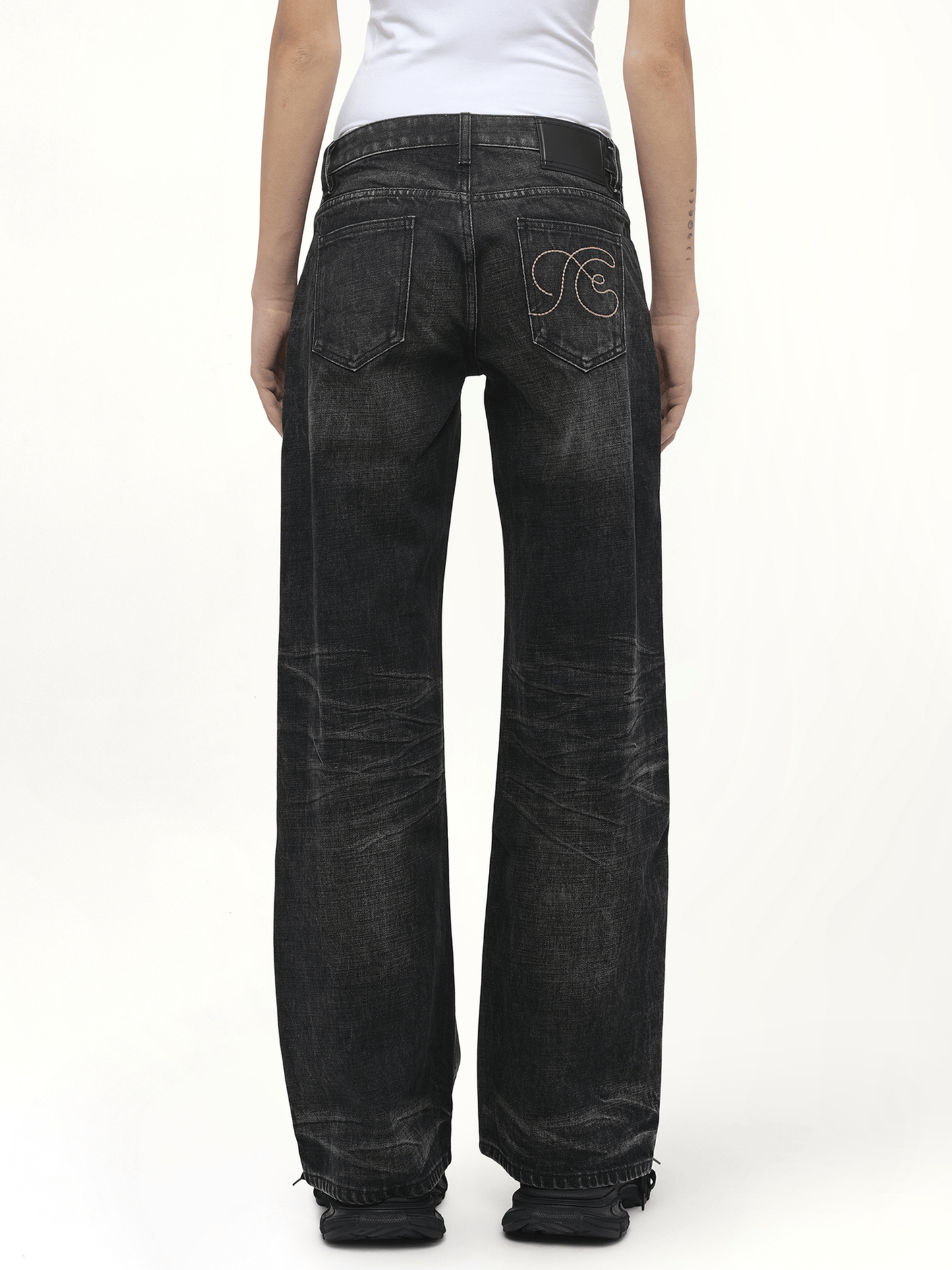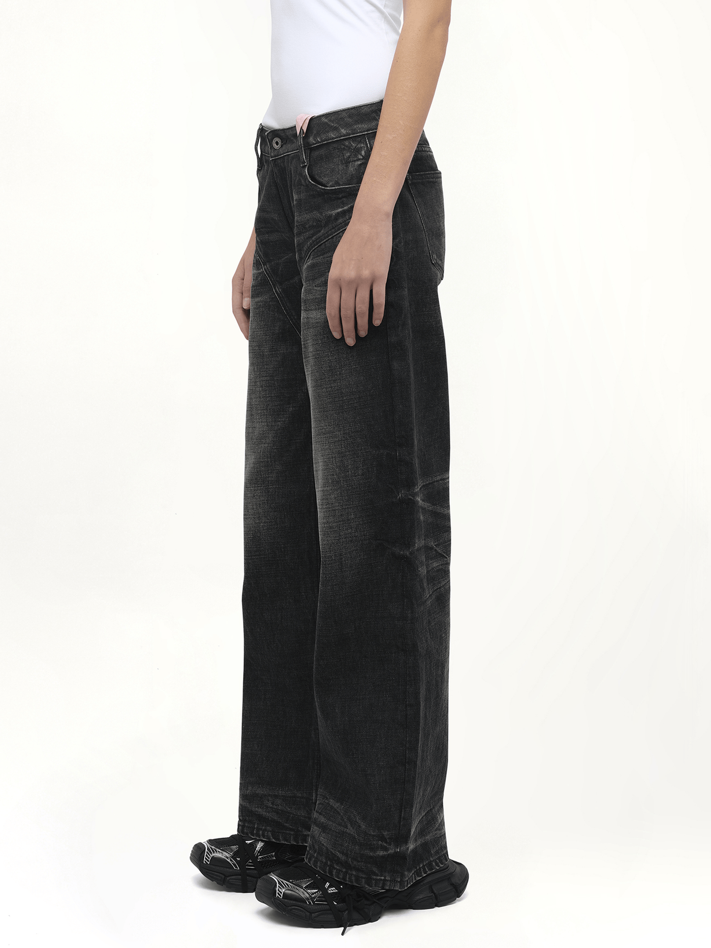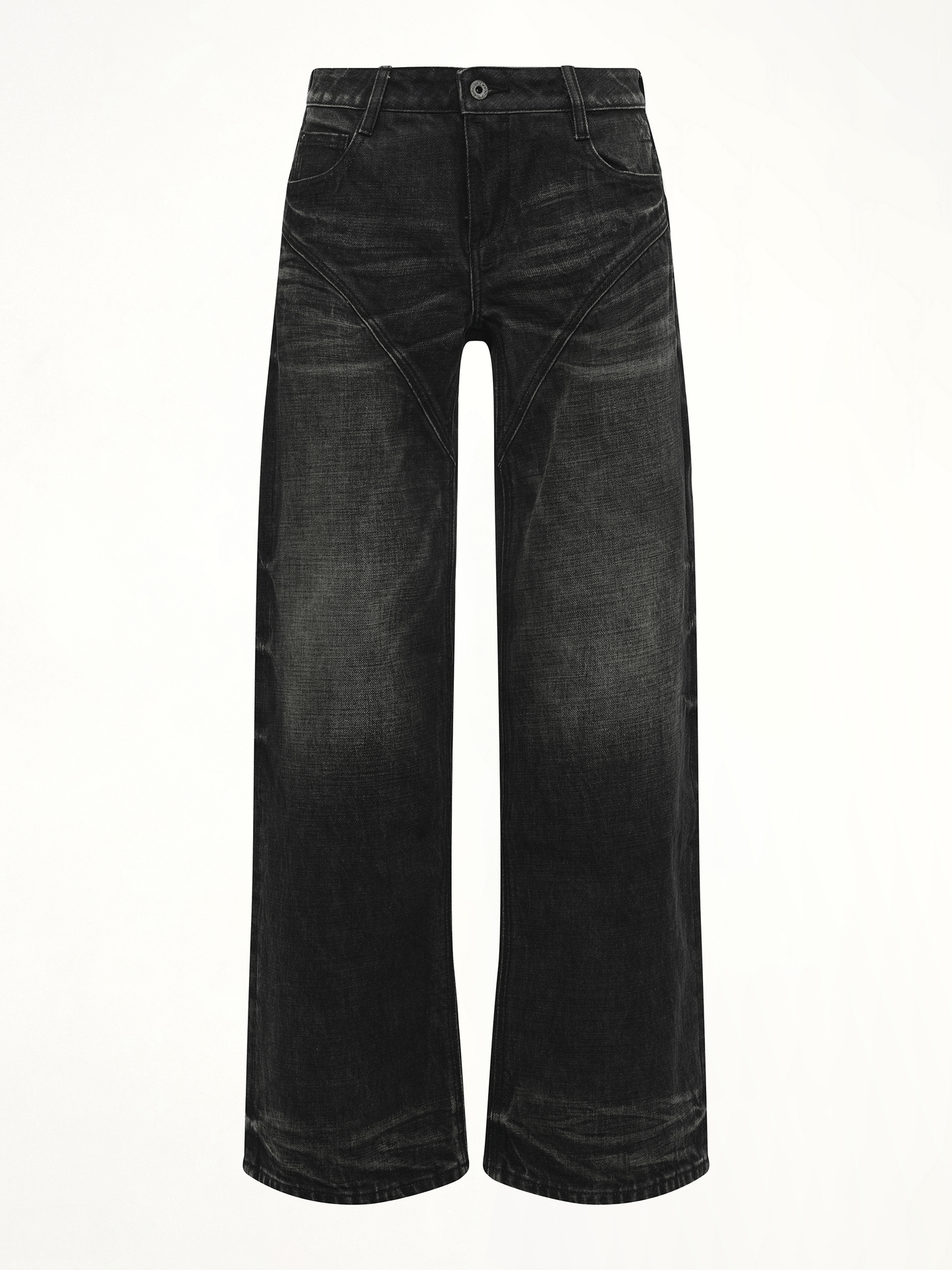 Fax Copy Express's Dirty Wash Straight Jeans in Black, featuring a rugged, lived-in look with a straight-leg cut for timeless style. These jeans offer a relaxed fit and durable construction, making them perfect for both everyday wear and more laid-back outings.
