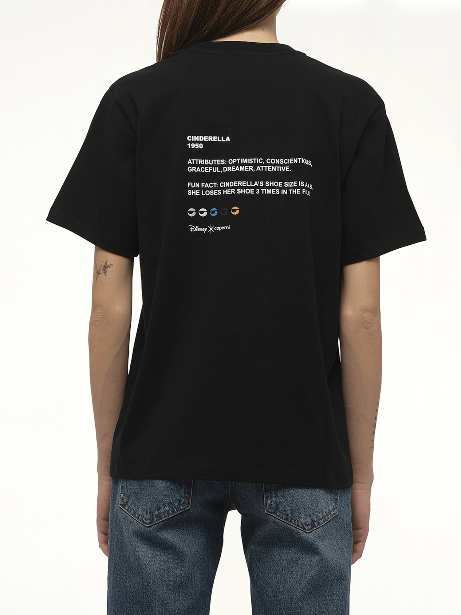 COPERNI's Disney x Coperni Cinderella T-Shirt in Black is a whimsical blend of fashion and fantasy, featuring a modern twist on a classic fairytale. Perfect for Disney enthusiasts and fashion-forward individuals alike, this t-shirt is a must-have addition to your wardrobe.