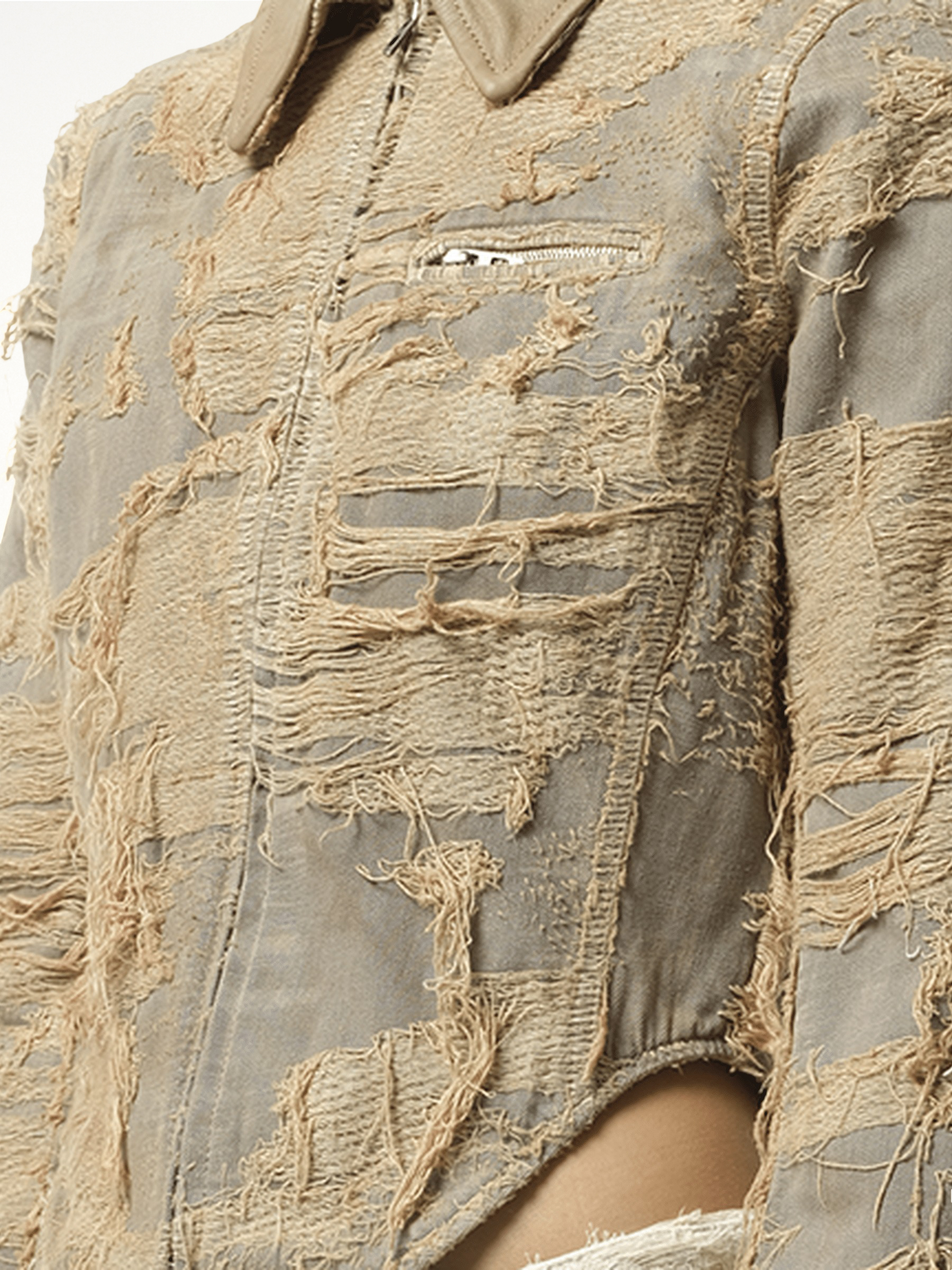 Diesel's Distressed Effect Denim Jacket in Beige offers a rugged, vintage-inspired look with modern detailing. The distressed effect adds character, while the beige colour provides a versatile, neutral base for various outfits.