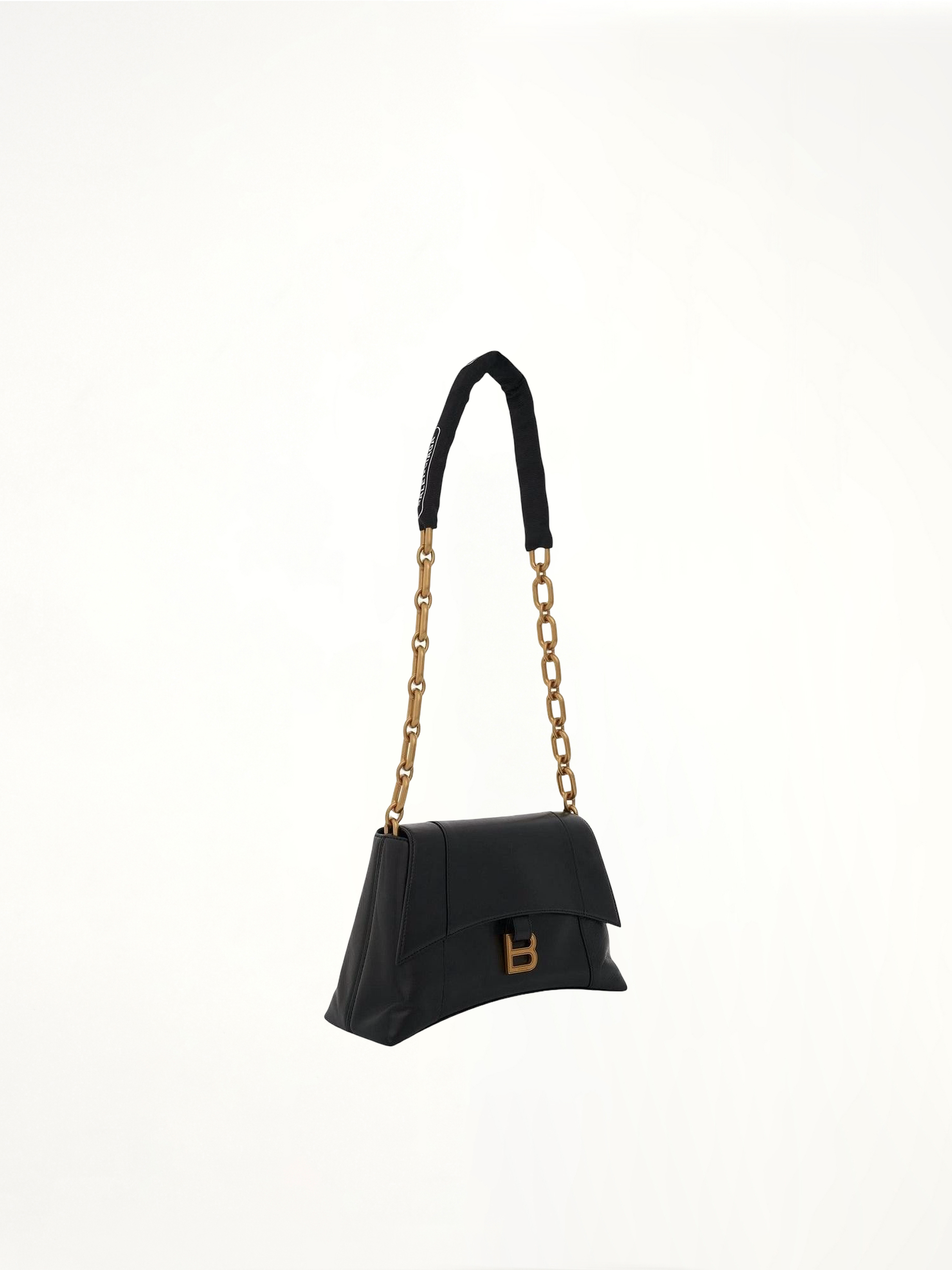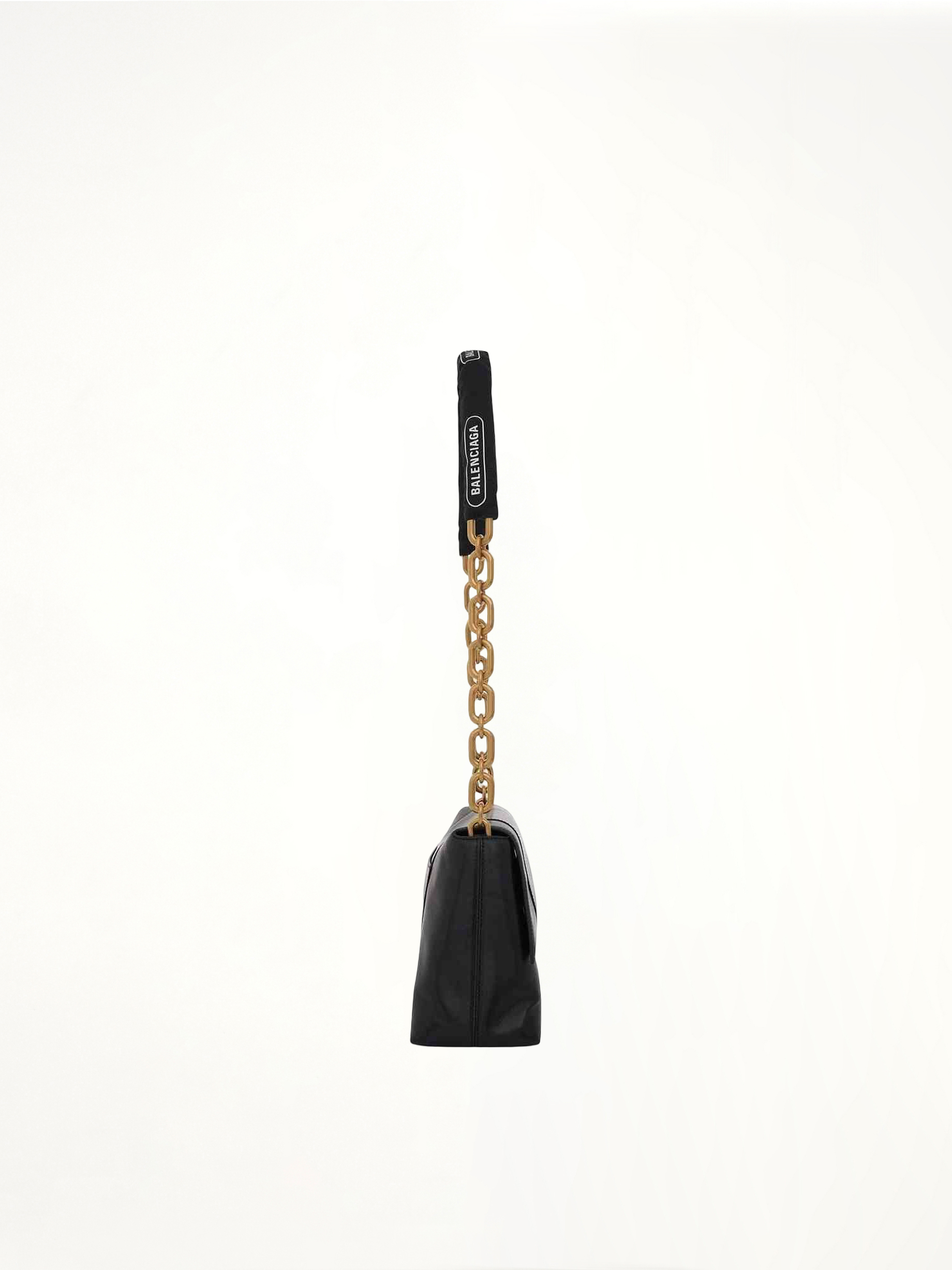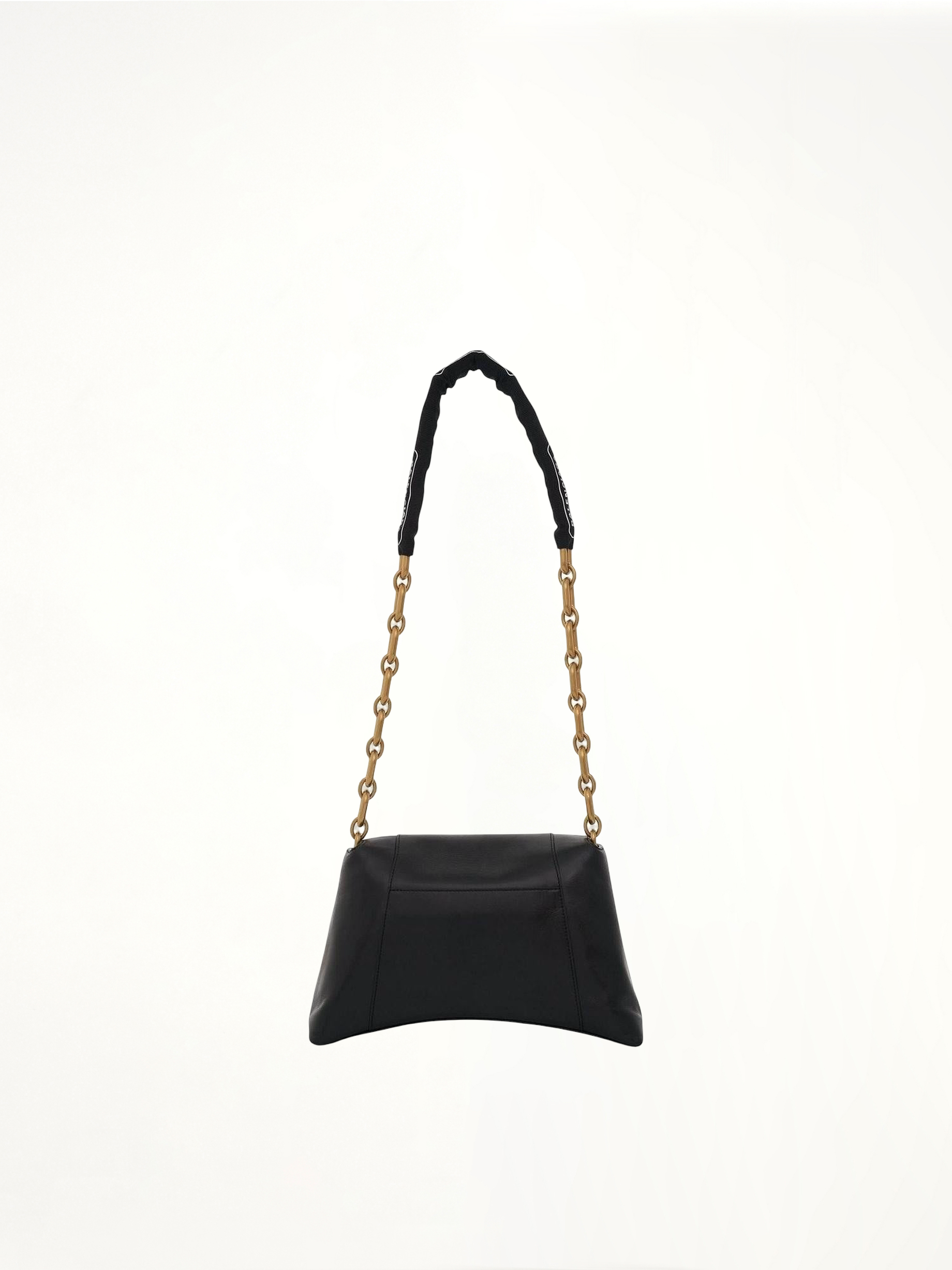 Downtown small shoulder bag with chain in black with chain-link shoulder strap, logo plaque and foldover top with magnetic fastening