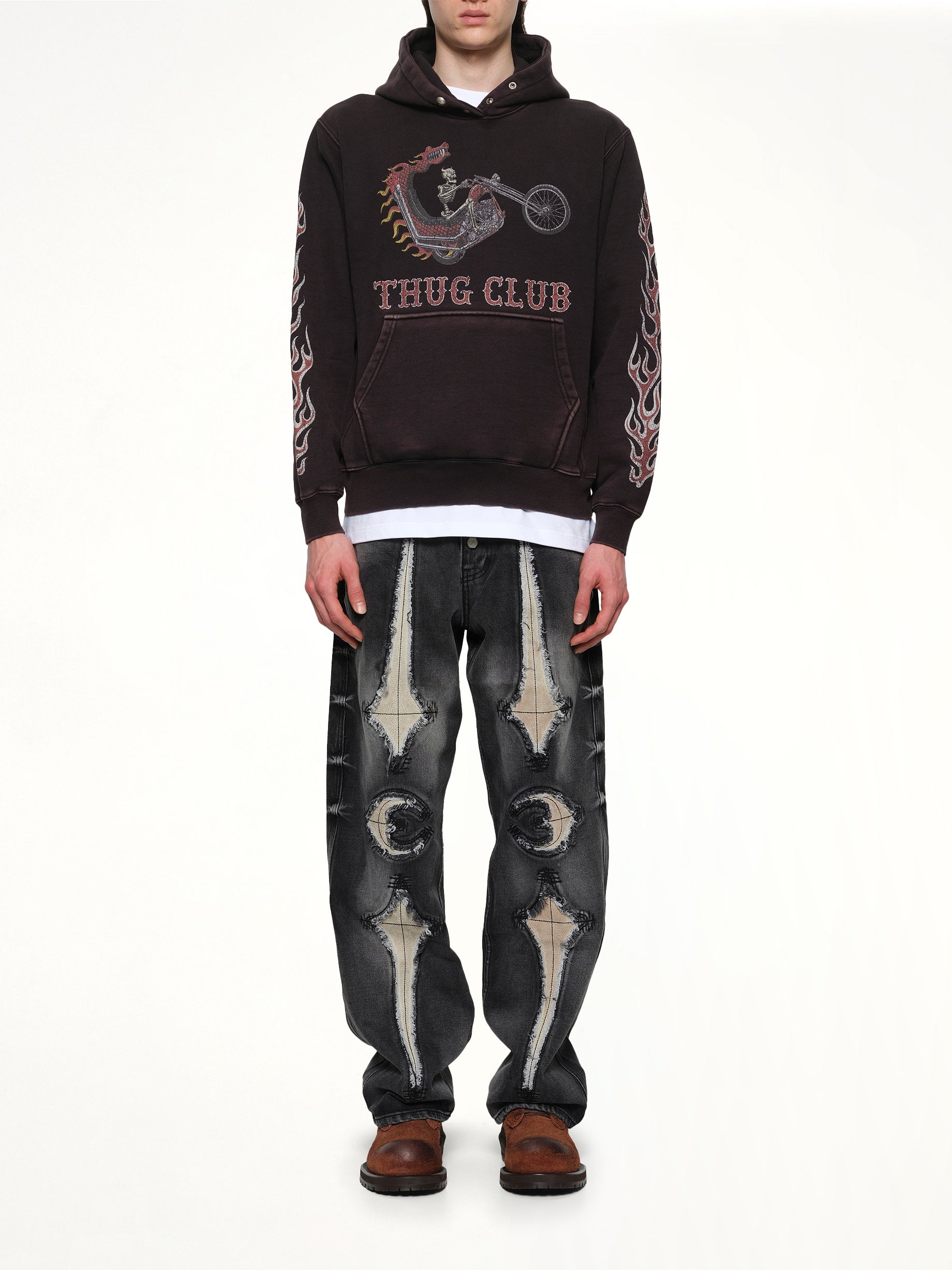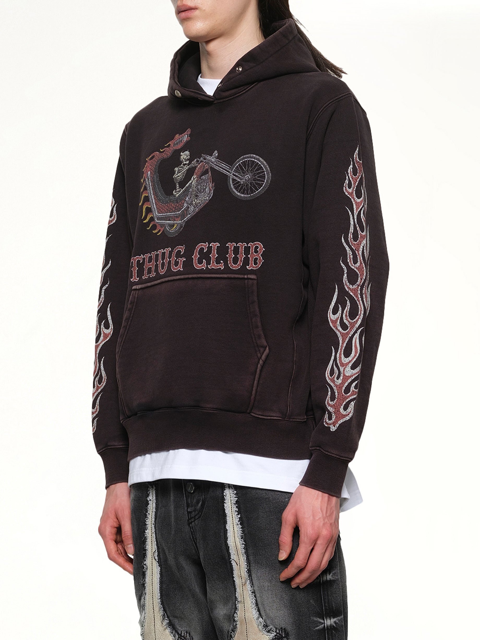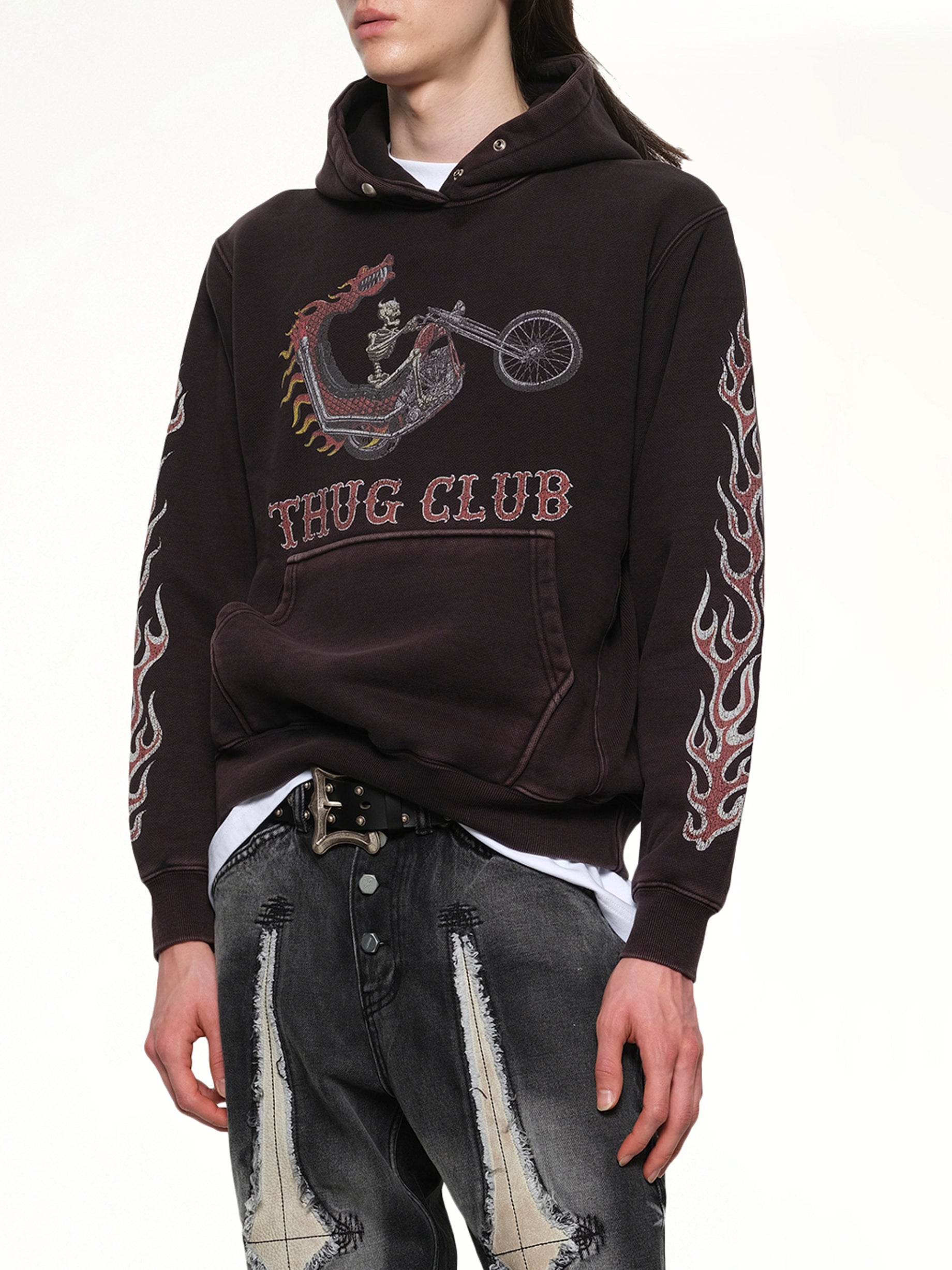 Thug Club's Dragon Chopper Hoodie in Black is a bold statement piece that combines streetwear aesthetics with intricate design. Perfect for those who want to stand out, this hoodie offers both comfort and style.