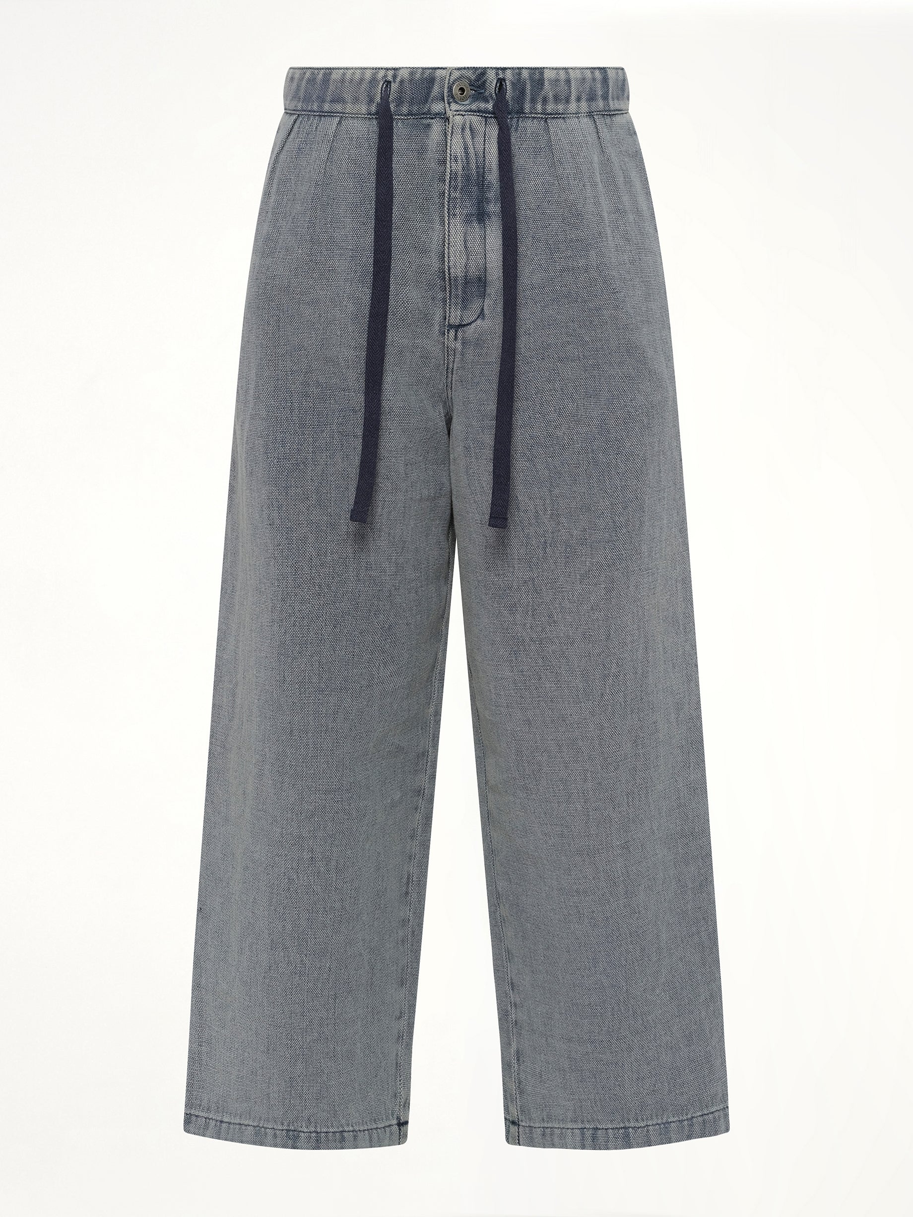 Loewe's Drawstring Trouser AF in Grey Blue is a stylish and versatile addition to any wardrobe. These trousers offer a perfect blend of comfort and modern design, making them ideal for both casual and semi-formal occasions.