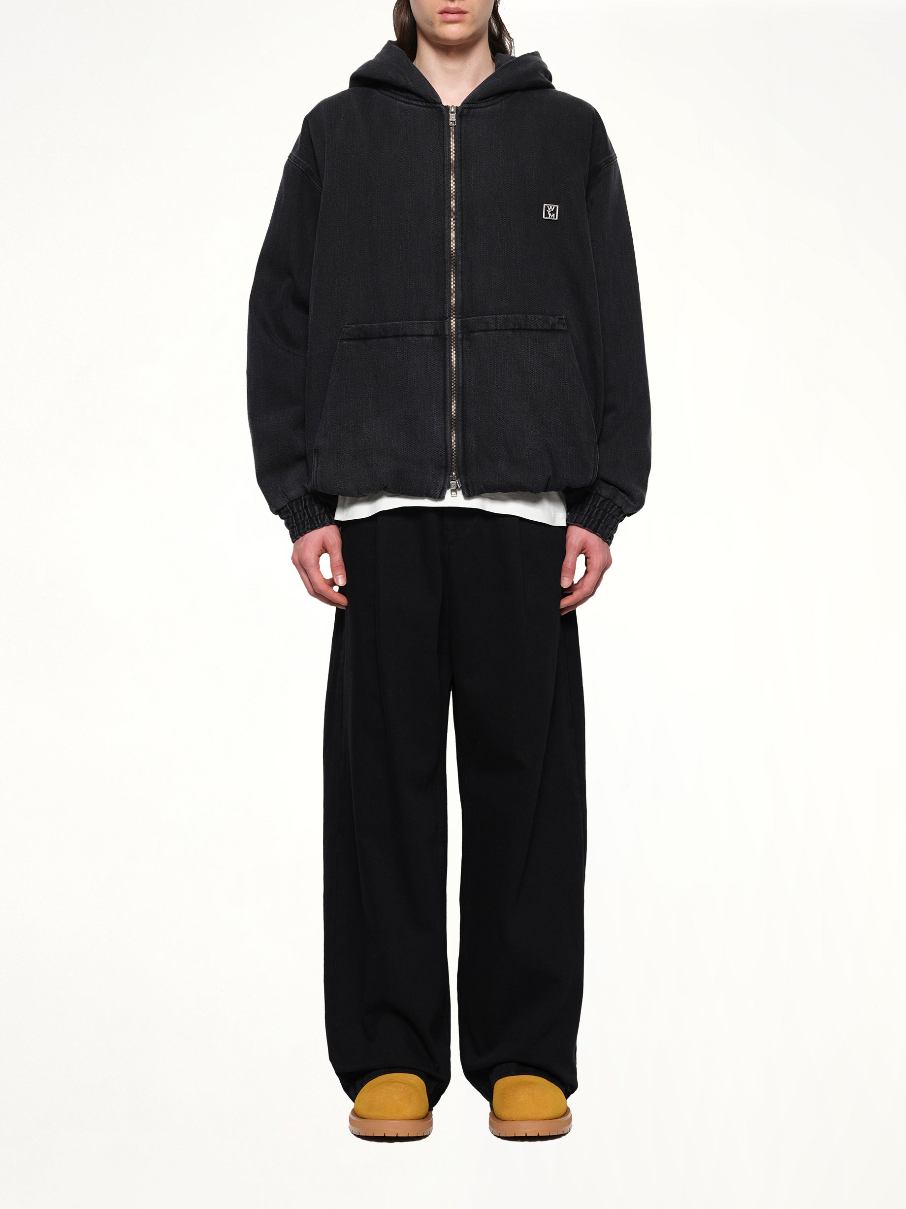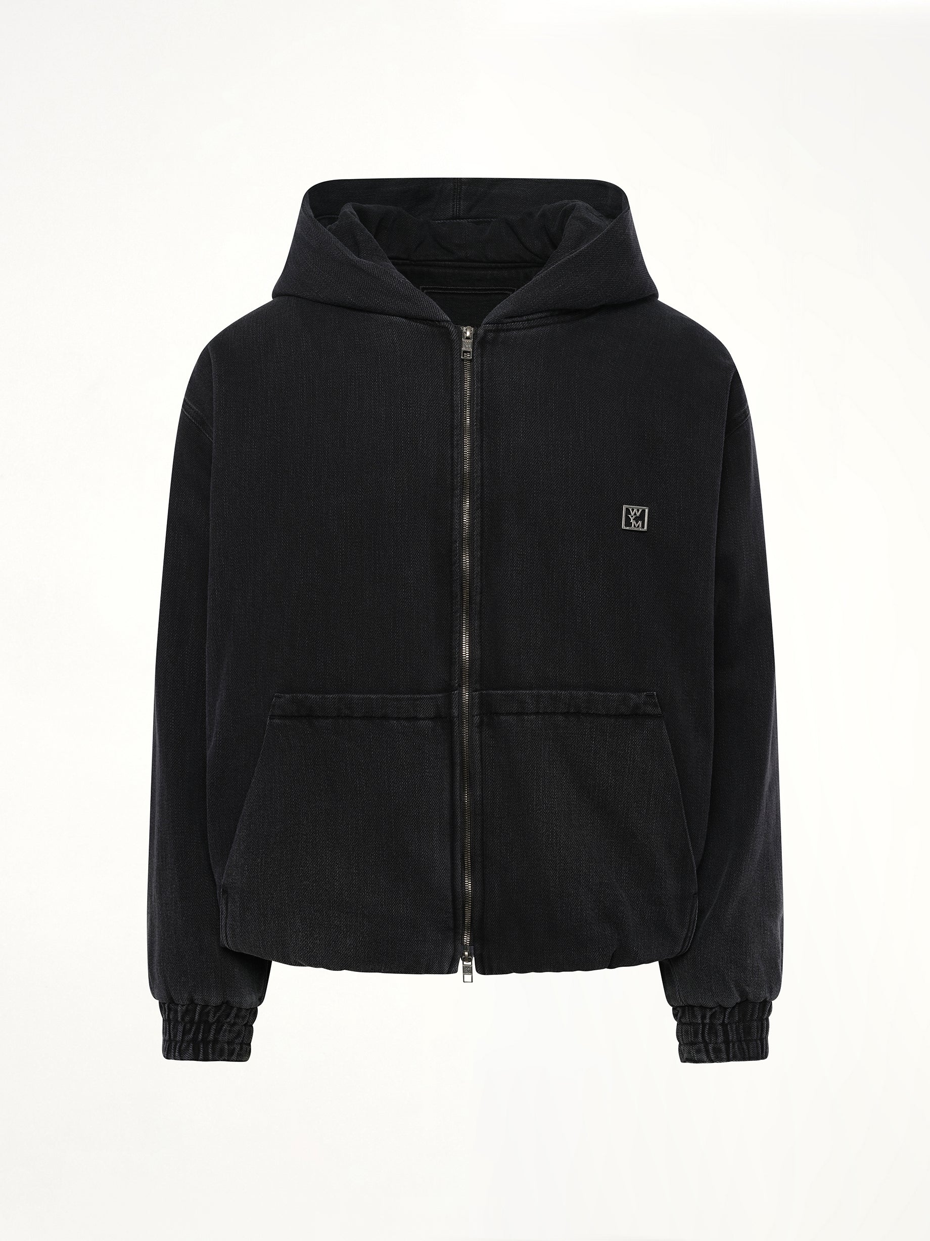 Wooyoungmi's Dyed Denim Hoodie in Black is a stylish blend of casual comfort and modern design. This hoodie features a unique dyed finish that adds a contemporary edge to any outfit.