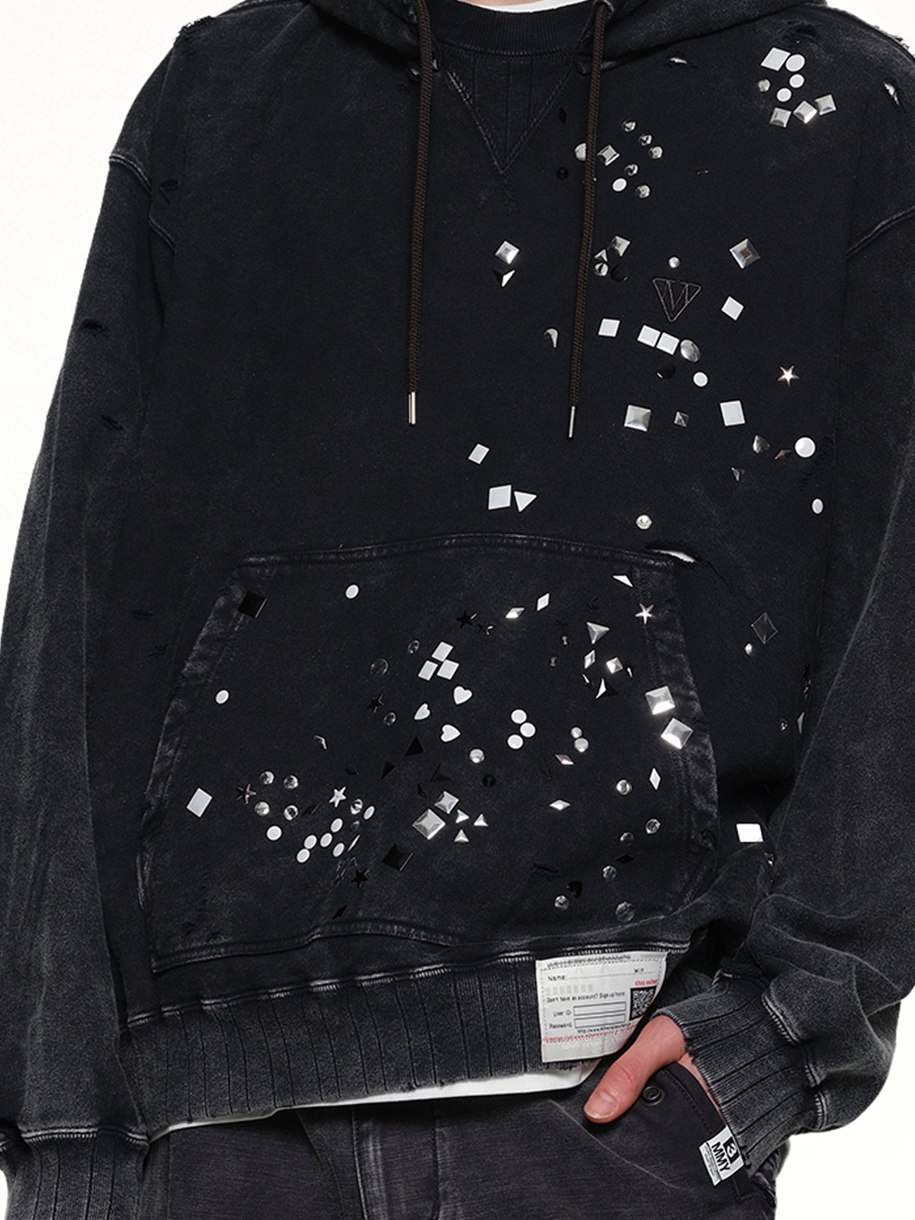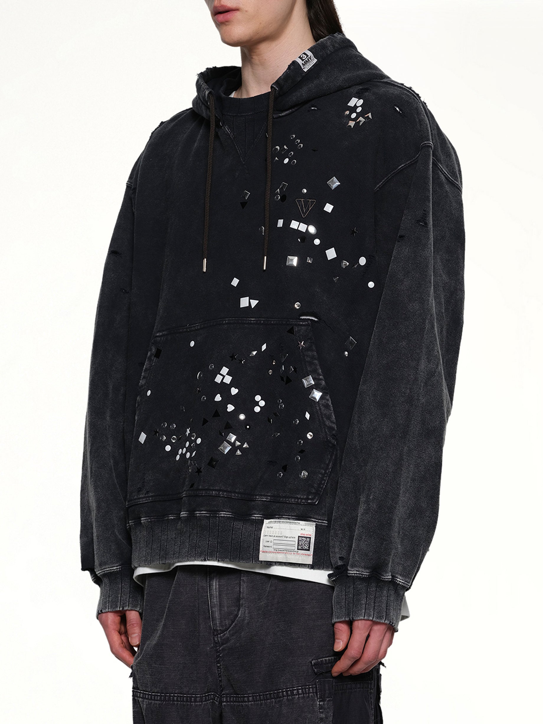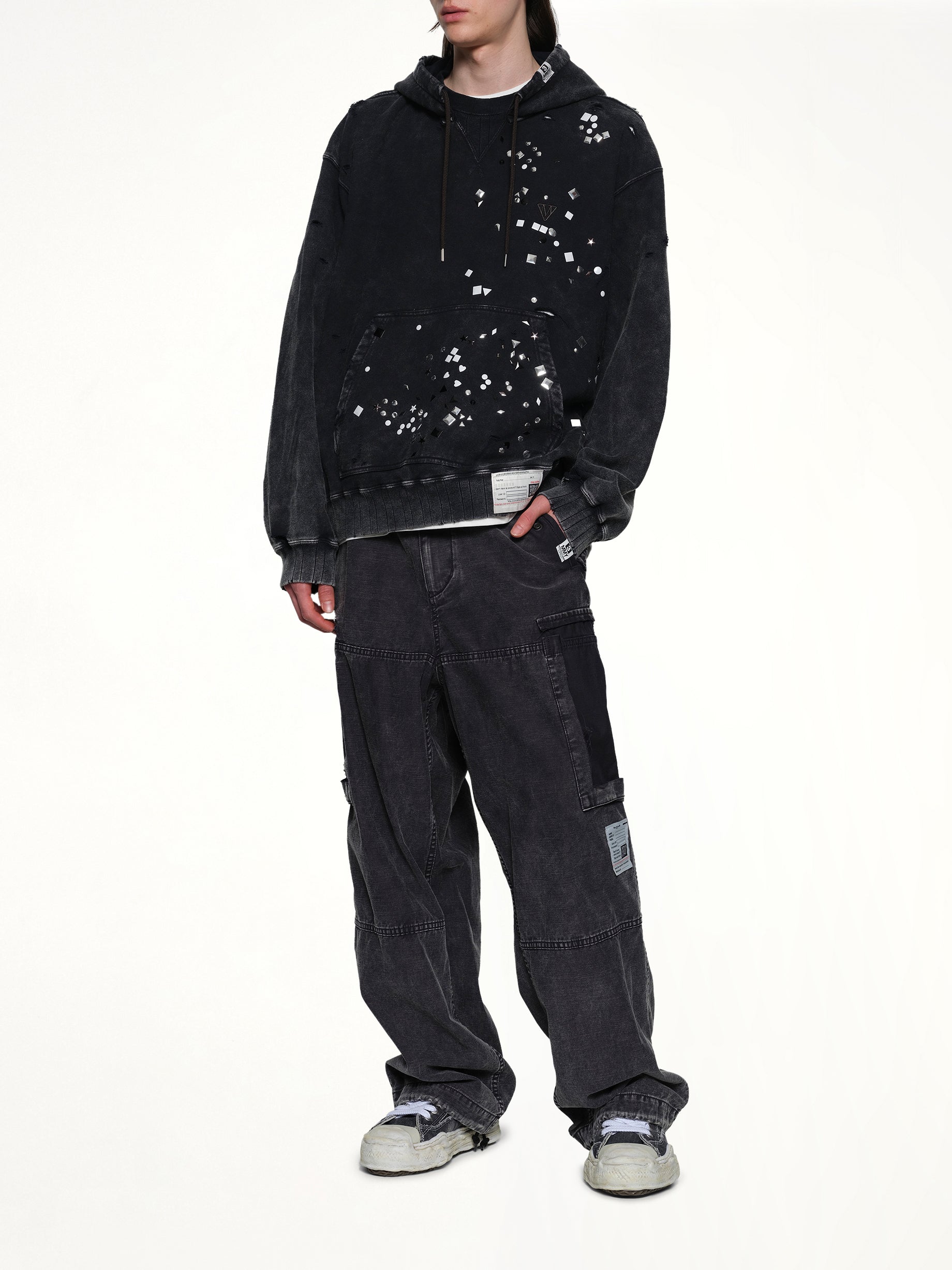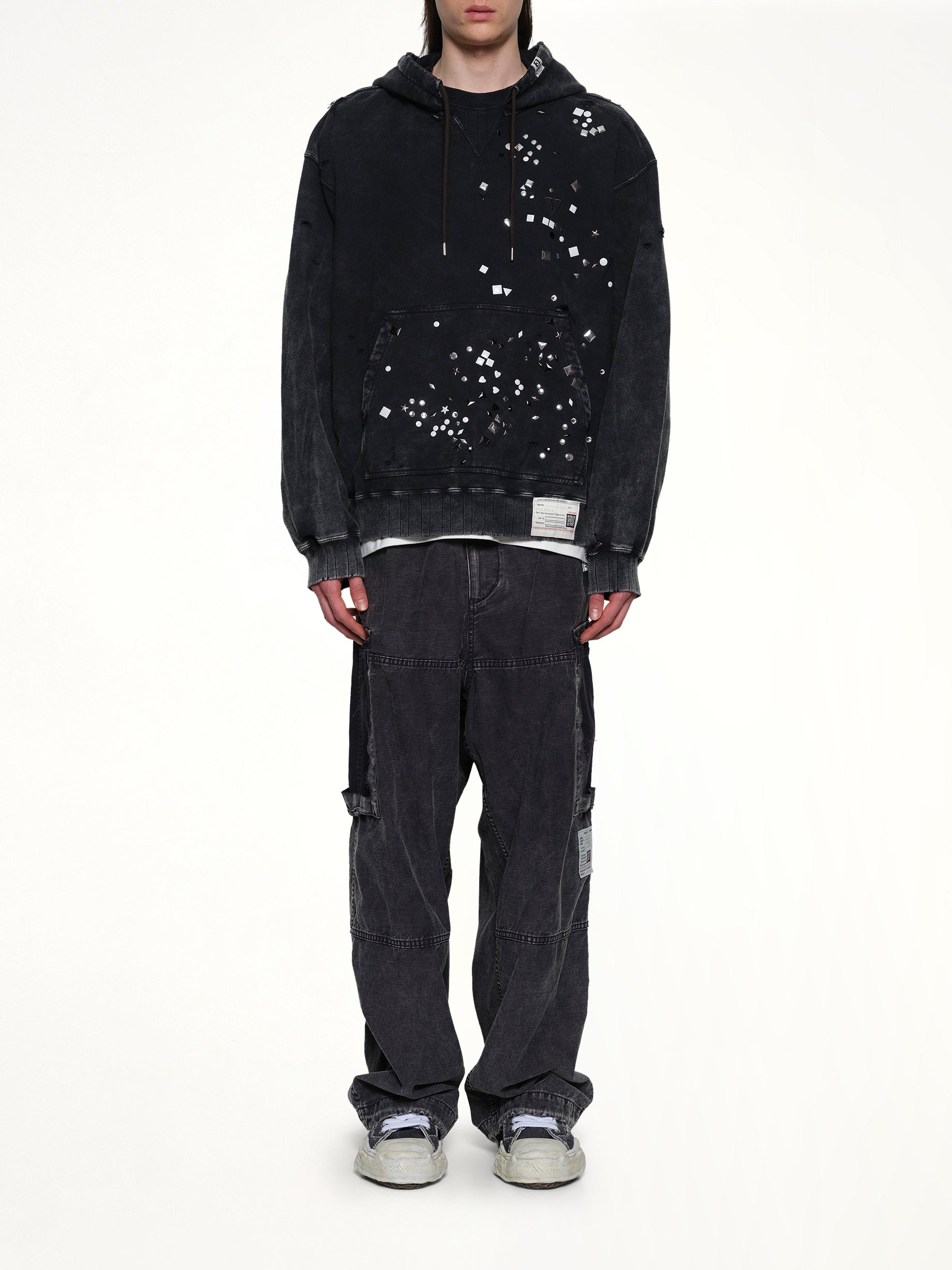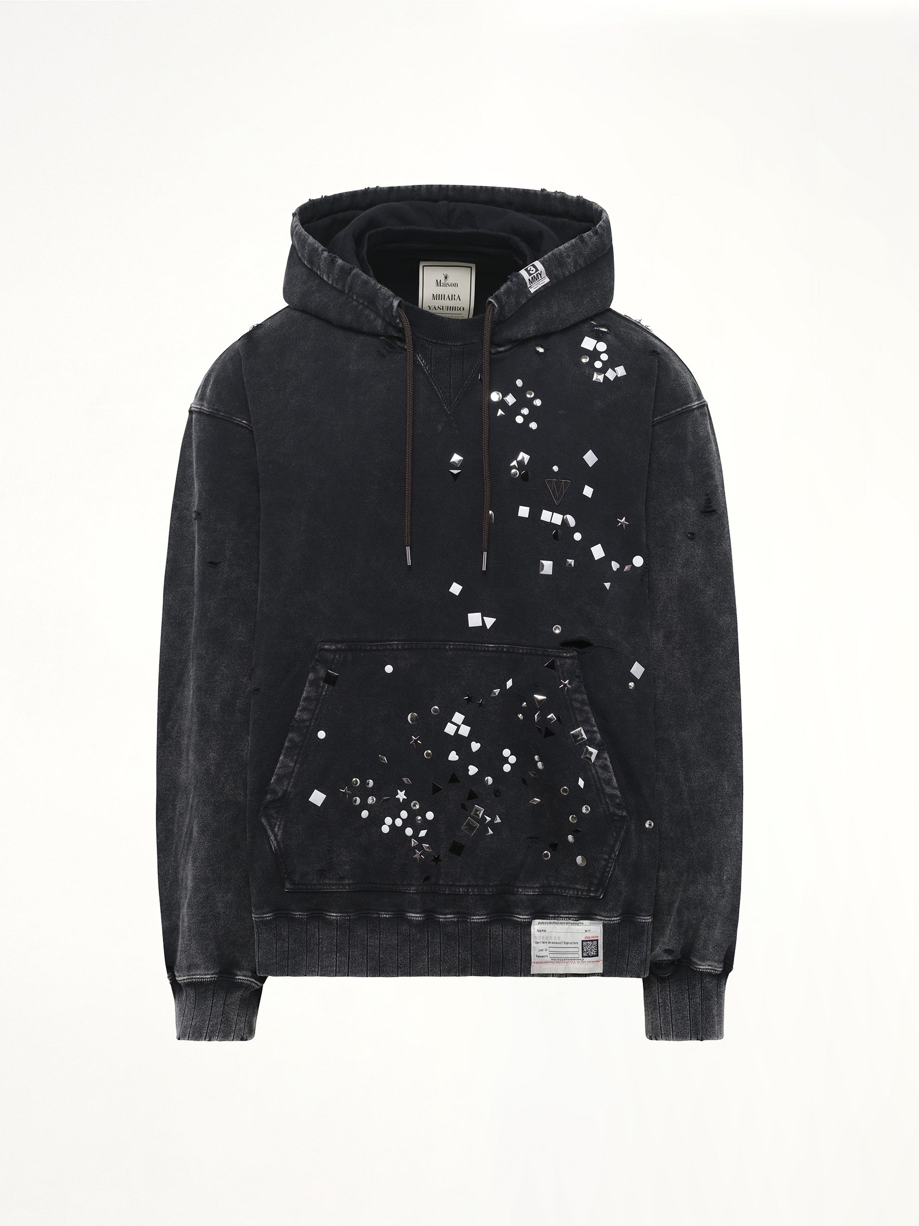 Maison Mihara's Embellished Bleached Hoodie in Black is a striking blend of urban style and artistic flair. This hoodie features a unique bleached design, making it a standout piece in any wardrobe.