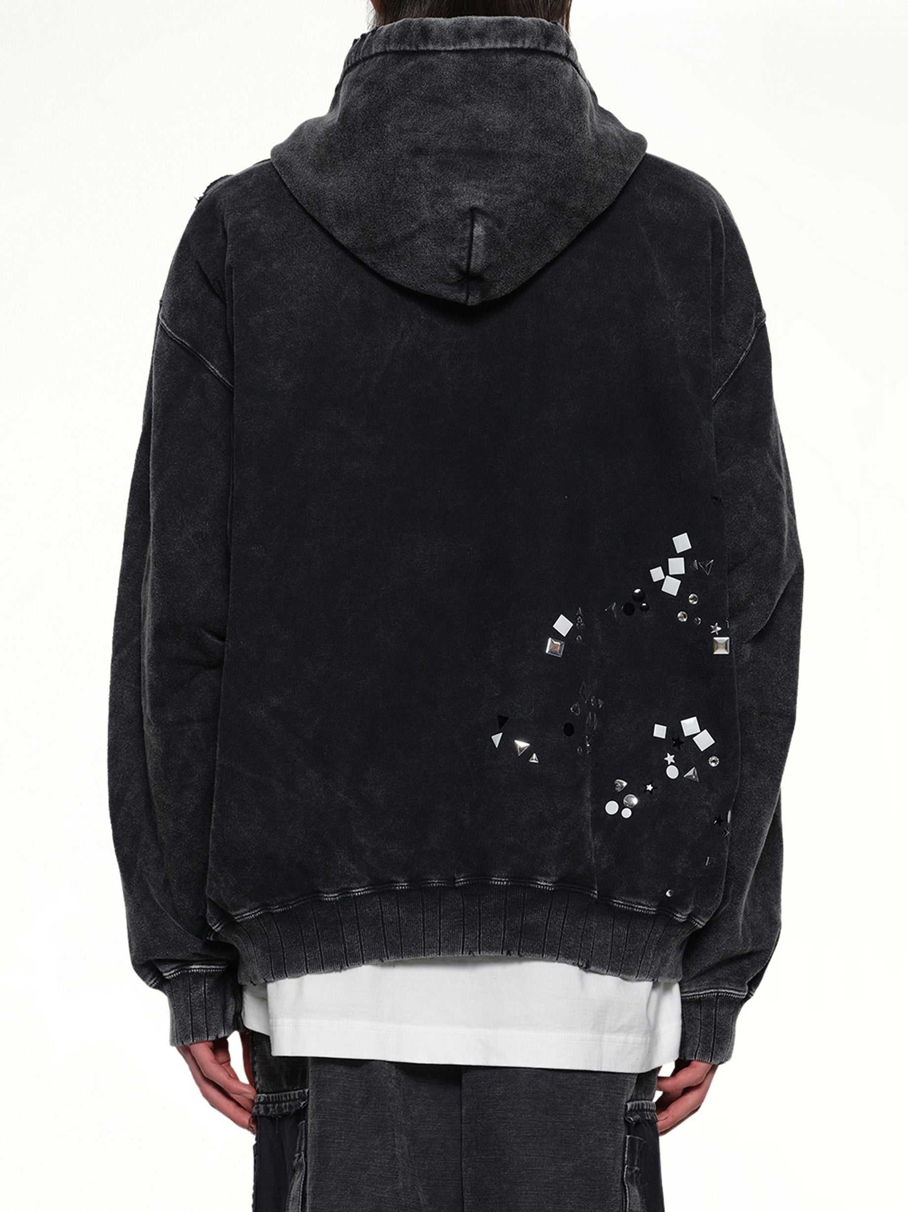 Embellished Bleached Hoodie in Black