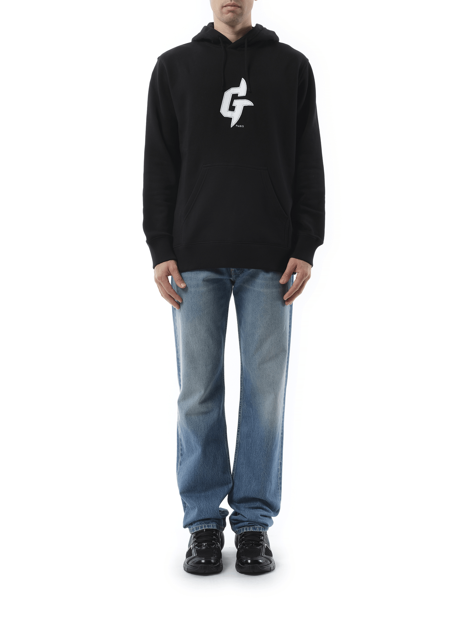Givenchy's Embroidered Eiffel Tower Motif Slim Fit Hoodie in Black combines Parisian elegance with contemporary streetwear. This slim-fit hoodie features a logo patch embroidery on the chest, adding a touch of sophistication to your casual attire.