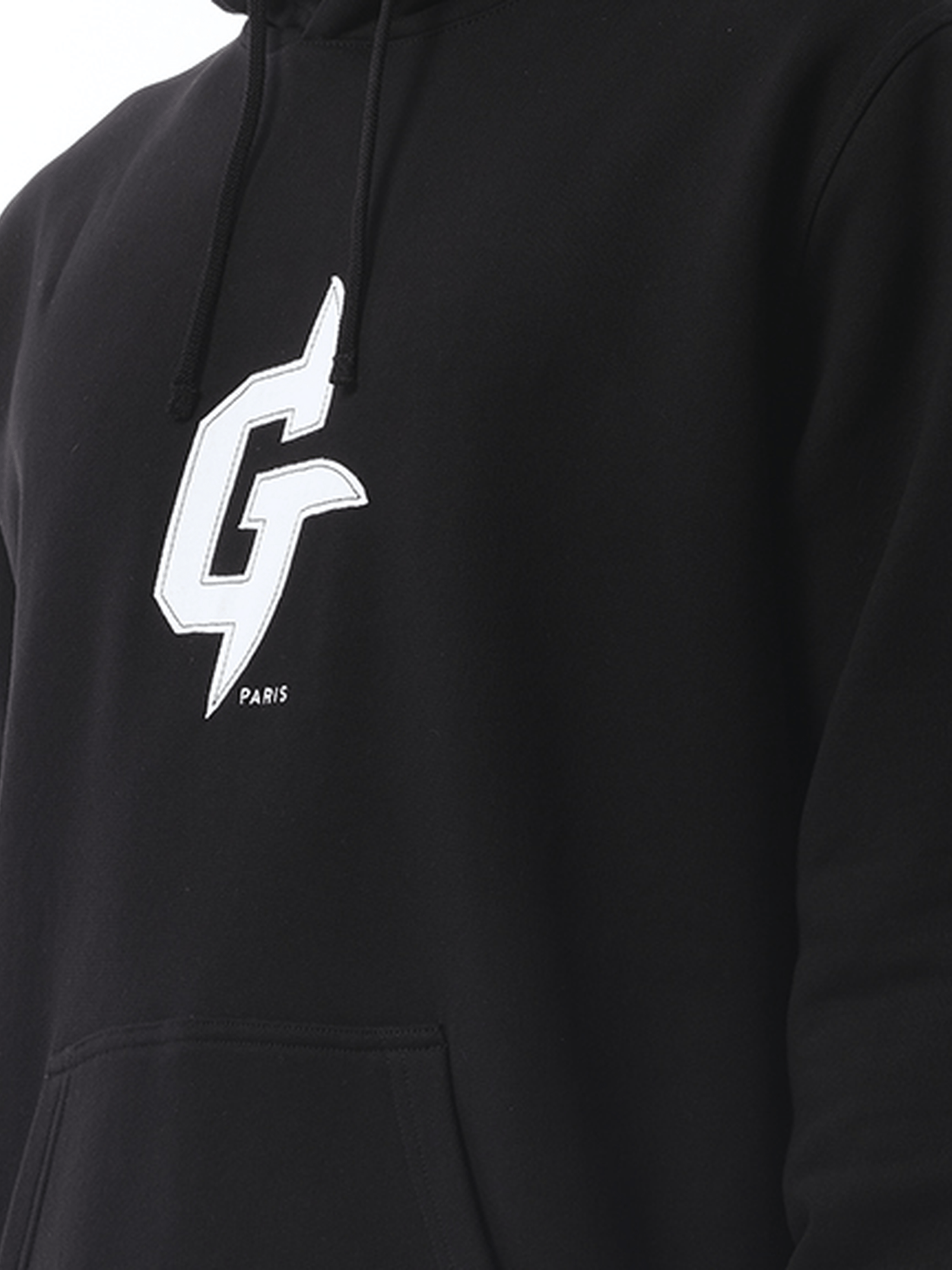 Embroidered Eiffel Tower Motif Slim Fit Hoodie in Black