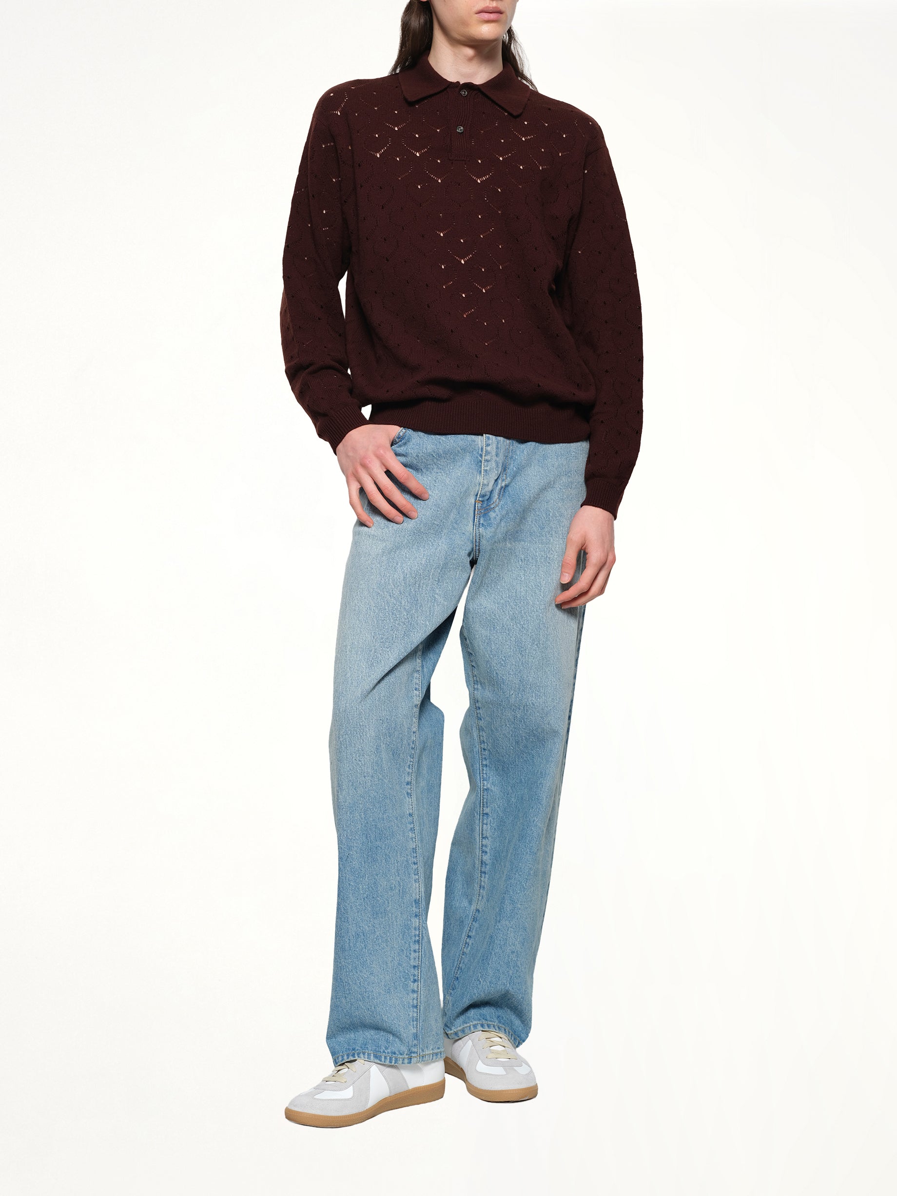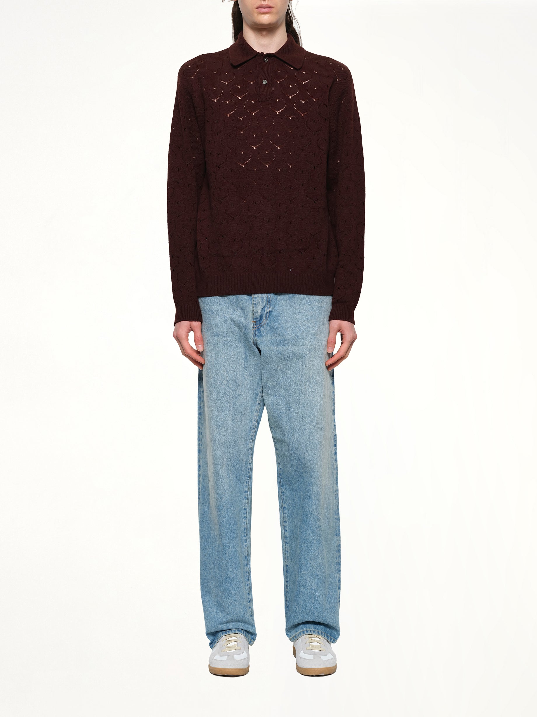 Vowels's Eyelet Polo in Dark Tobacco is a sophisticated addition to any wardrobe. This polo combines classic style with modern detailing for a versatile look.