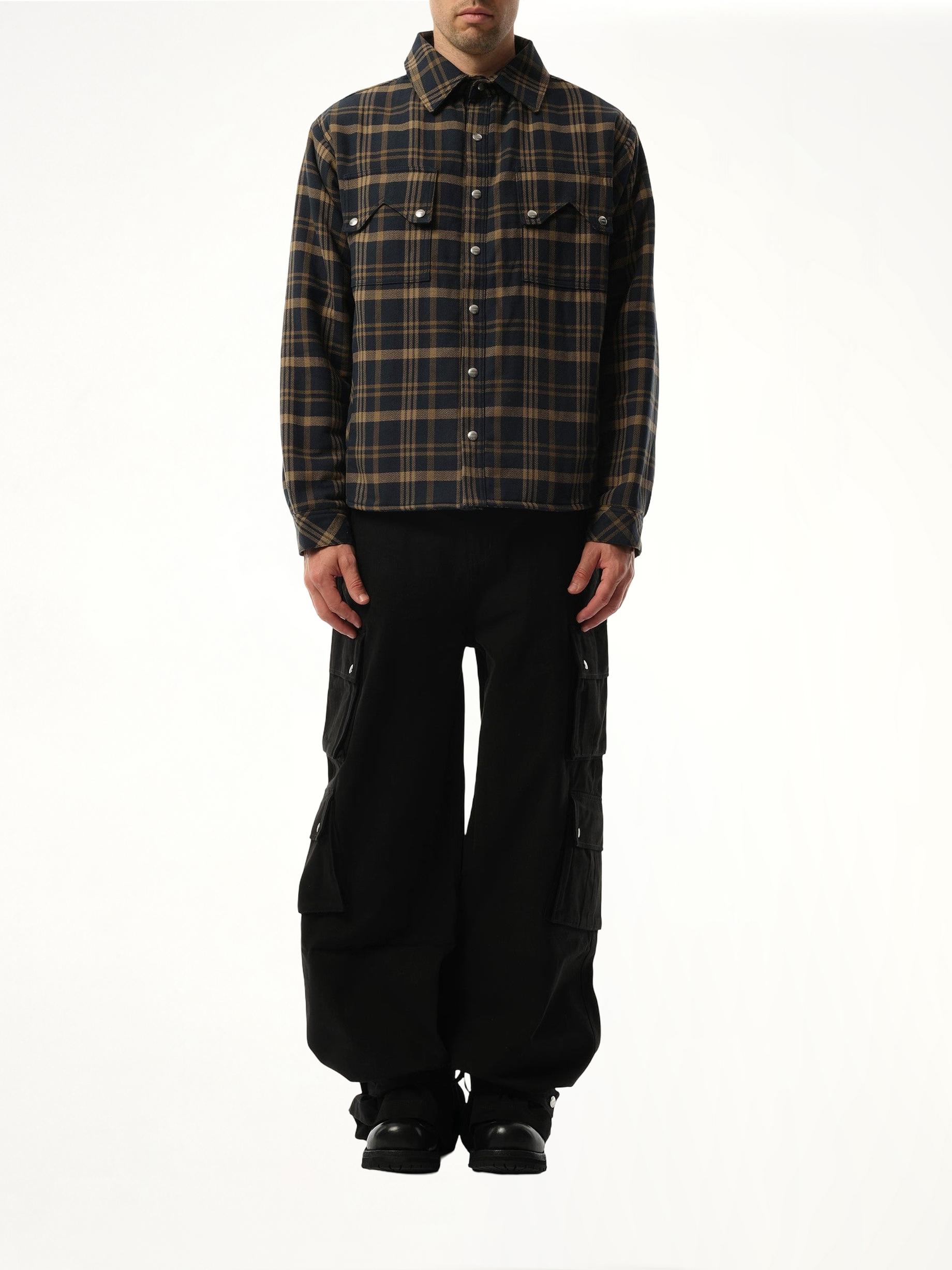 This warm and cozy Flannel Sherpa Overshirt in Brown/Black is designed with both style and comfort in mind. Made with high-quality flannel and featuring a soft sherpa lining, it's perfect for keeping you warm on chilly days.