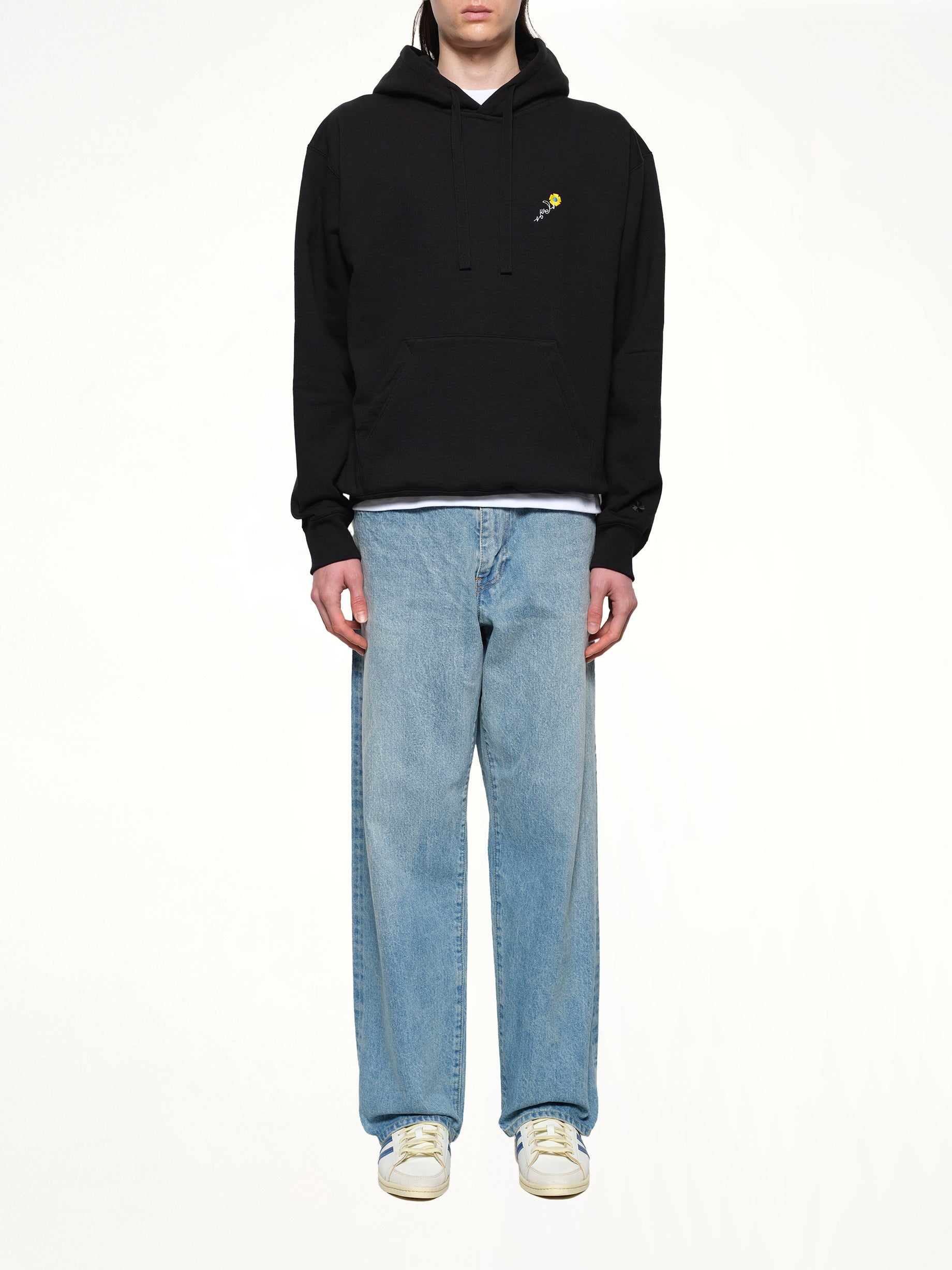 Vowels's Floral Embroidered Hoodie in Black is a stylish and comfortable addition to any wardrobe. This hoodie features intricate floral embroidery that adds a touch of elegance to its casual design.