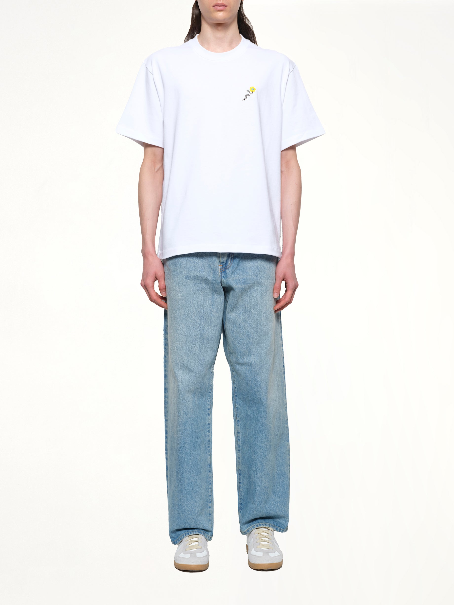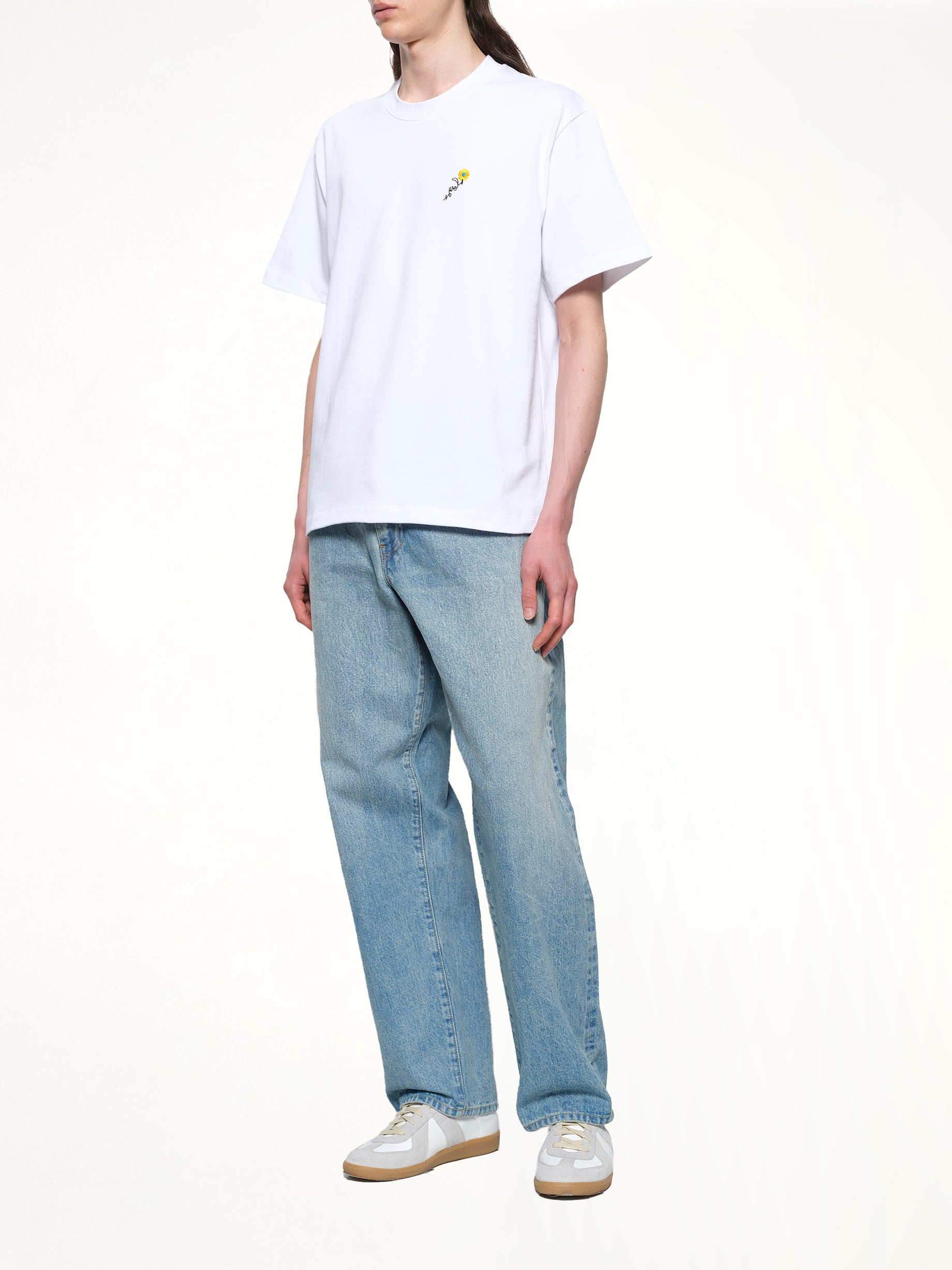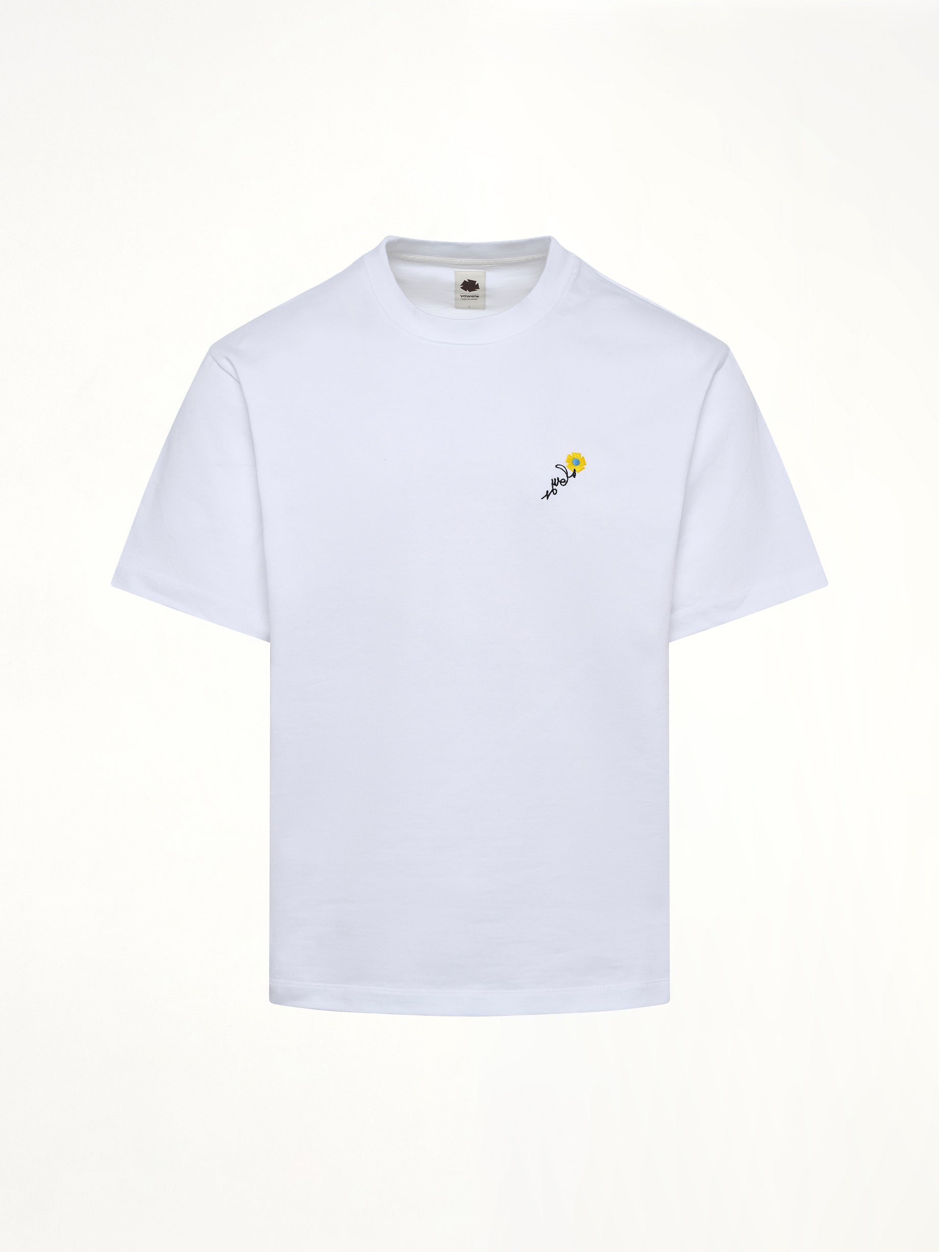 Vowels's Floral Embroidered T-Shirt in White is a stylish and versatile addition to any wardrobe. This t-shirt features intricate floral embroidery that adds a touch of elegance to a classic design.