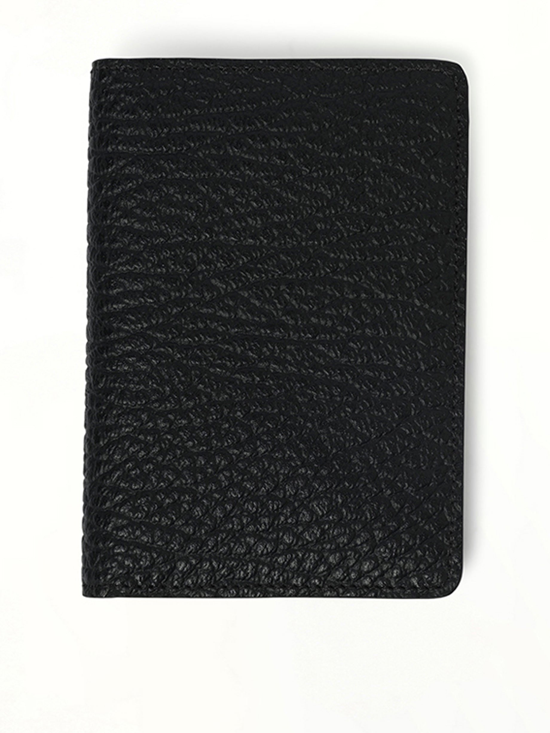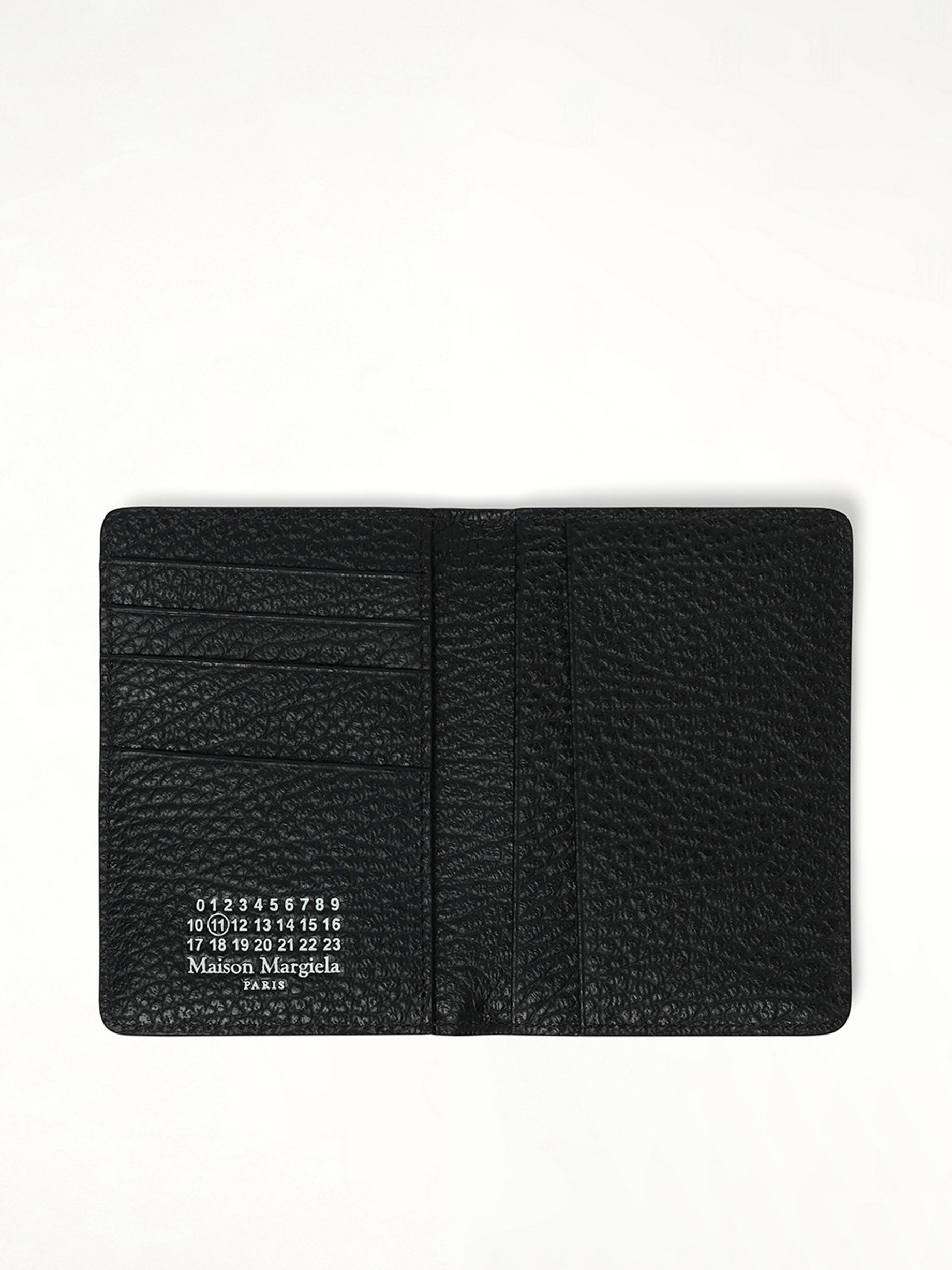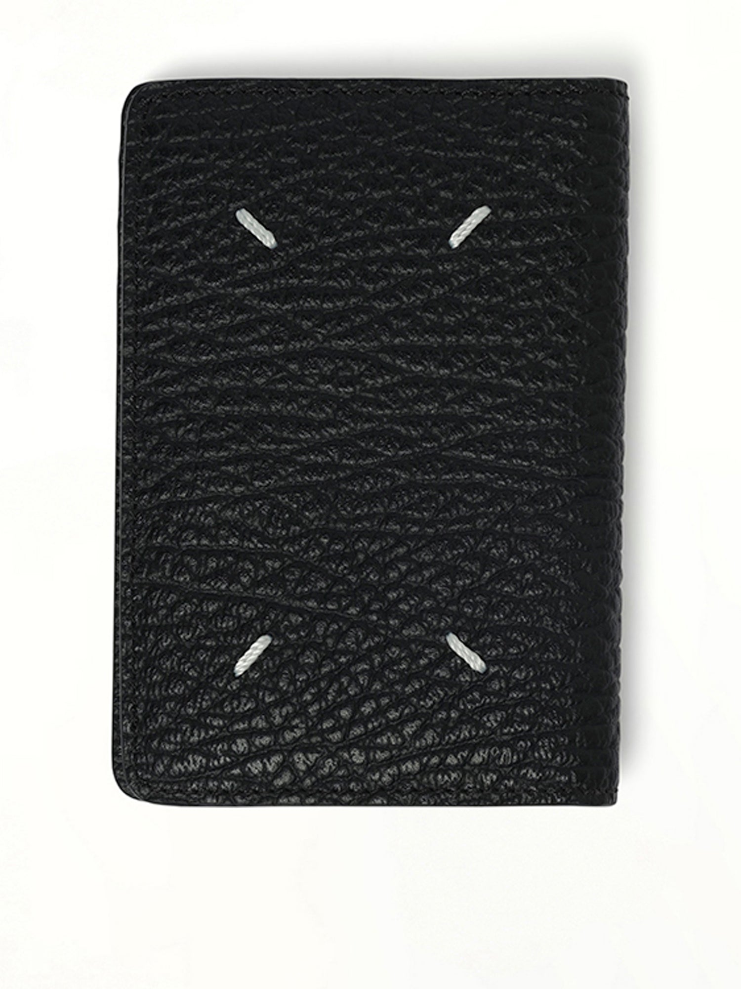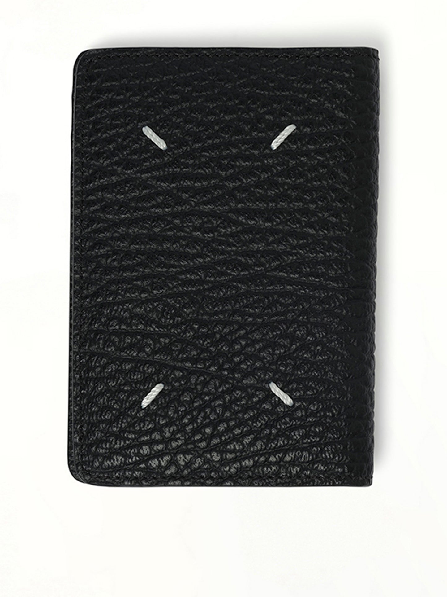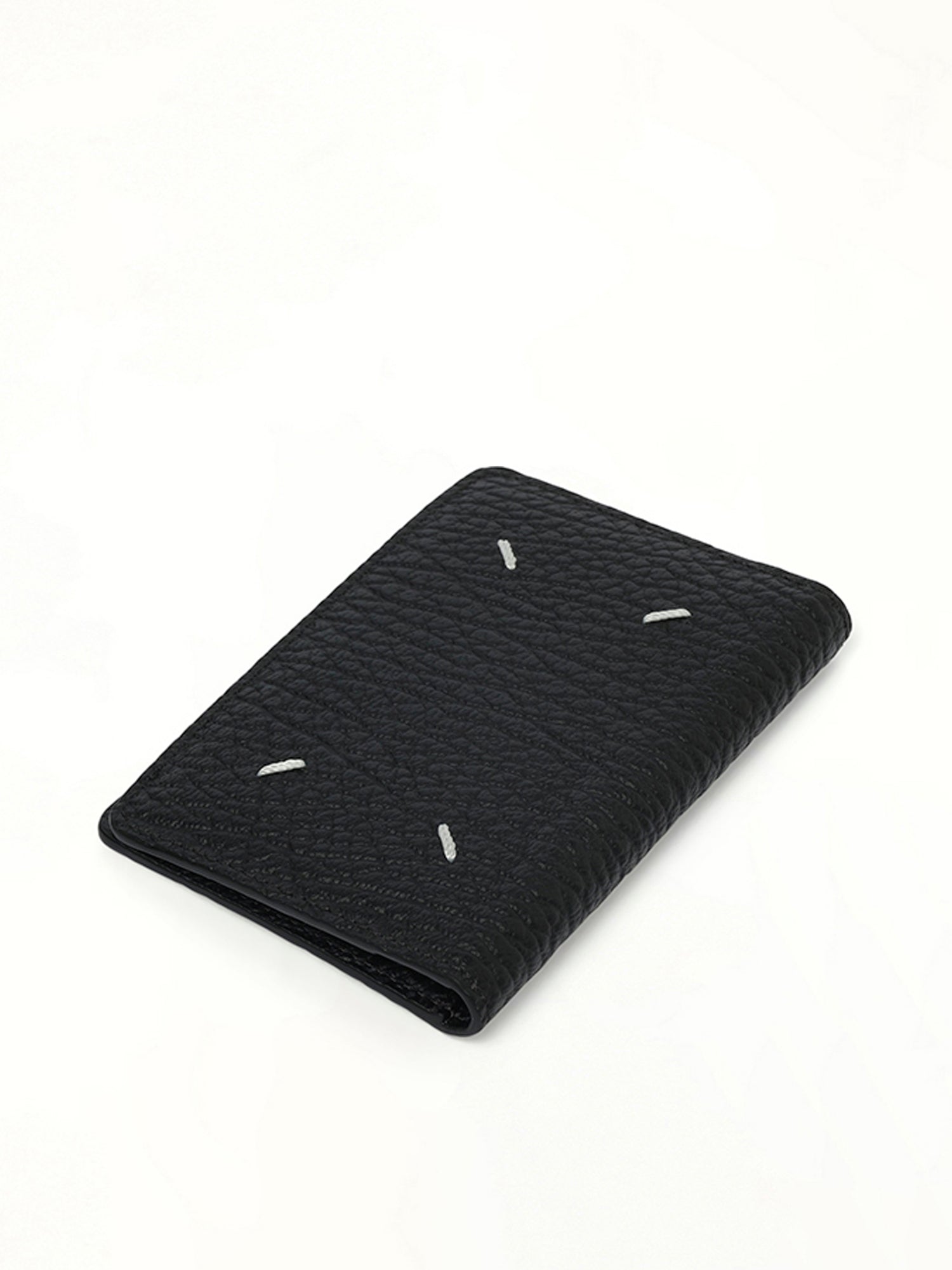 Four stitch logo card holder in black with signature four-stitch logo, internal logo stamp and internal card slots