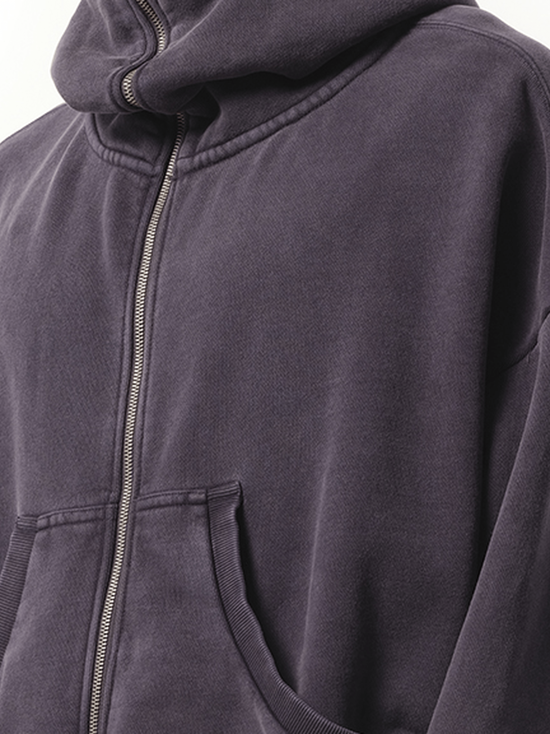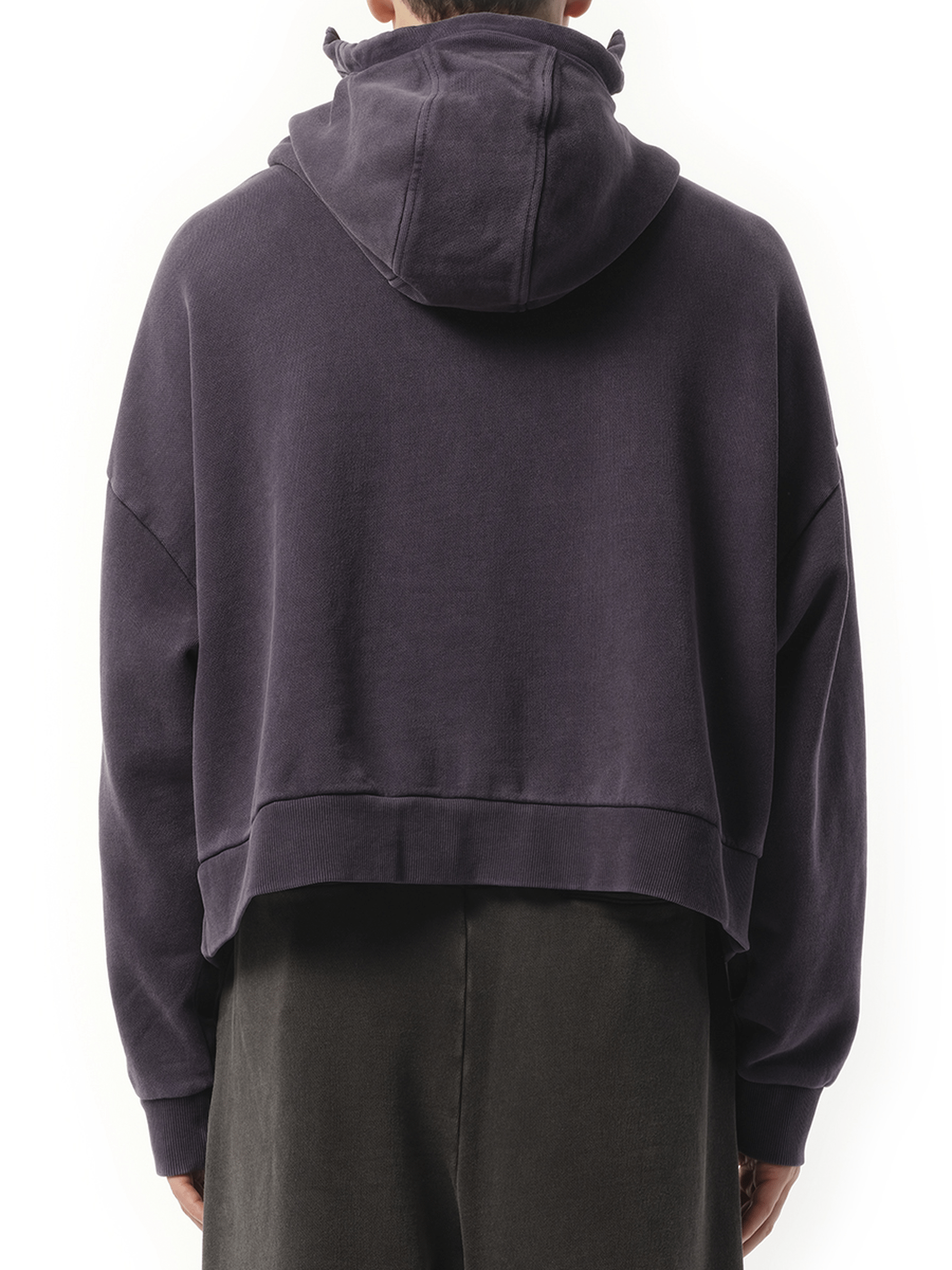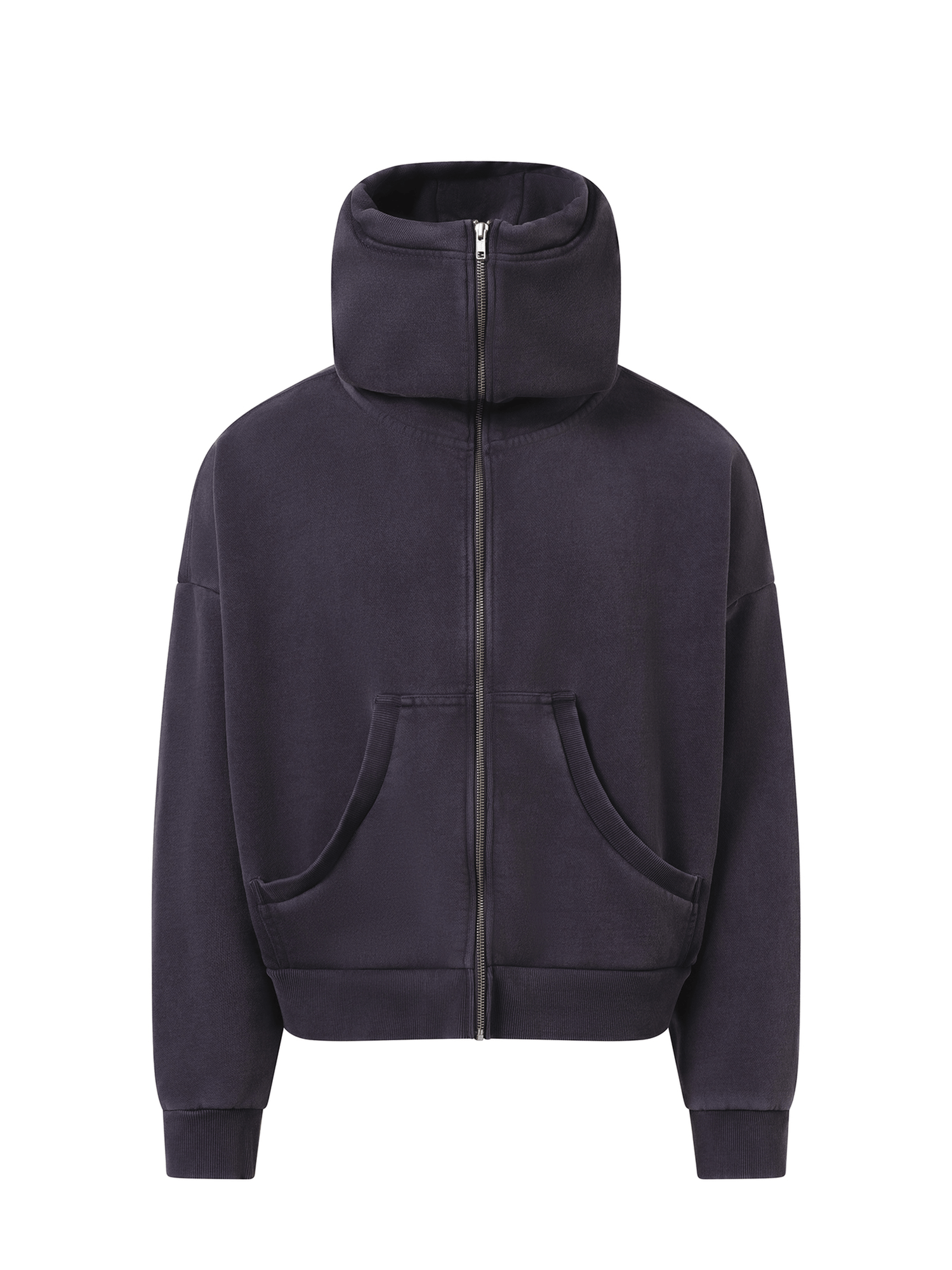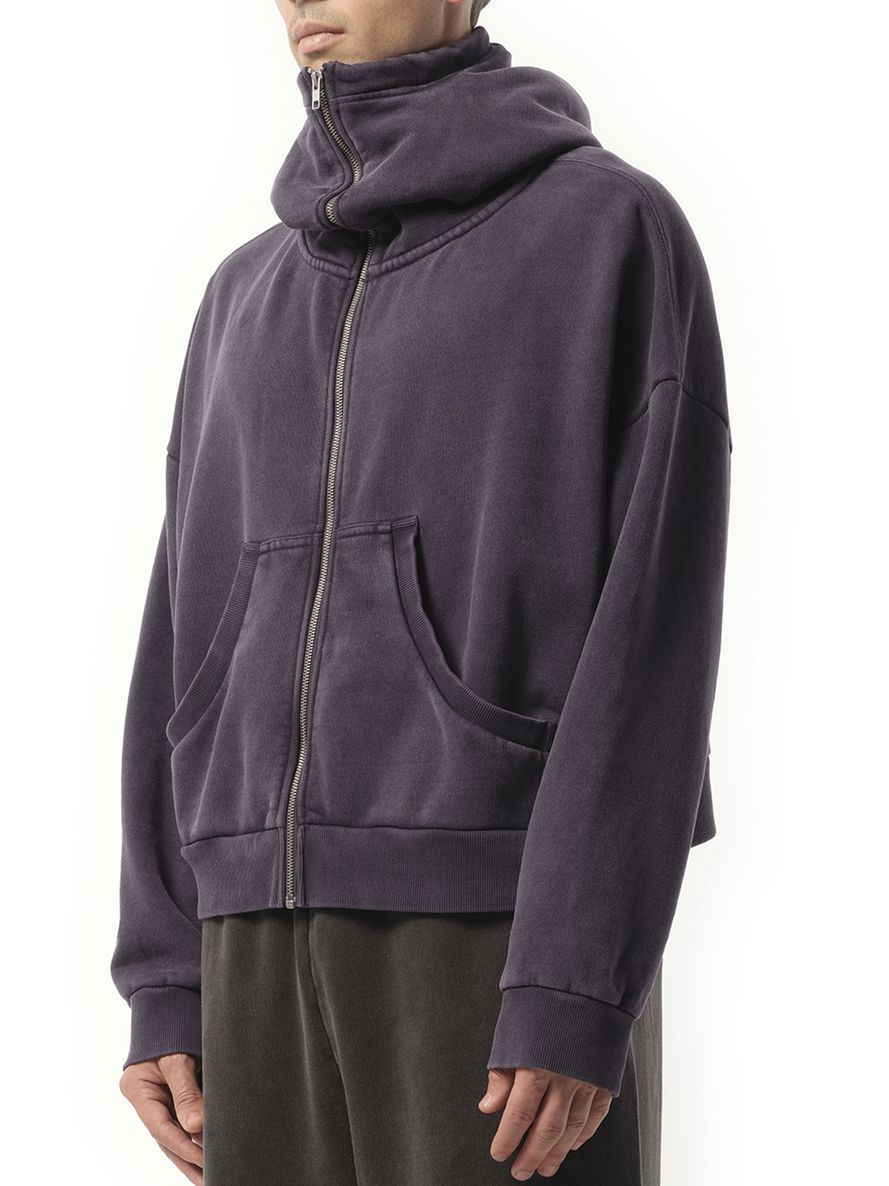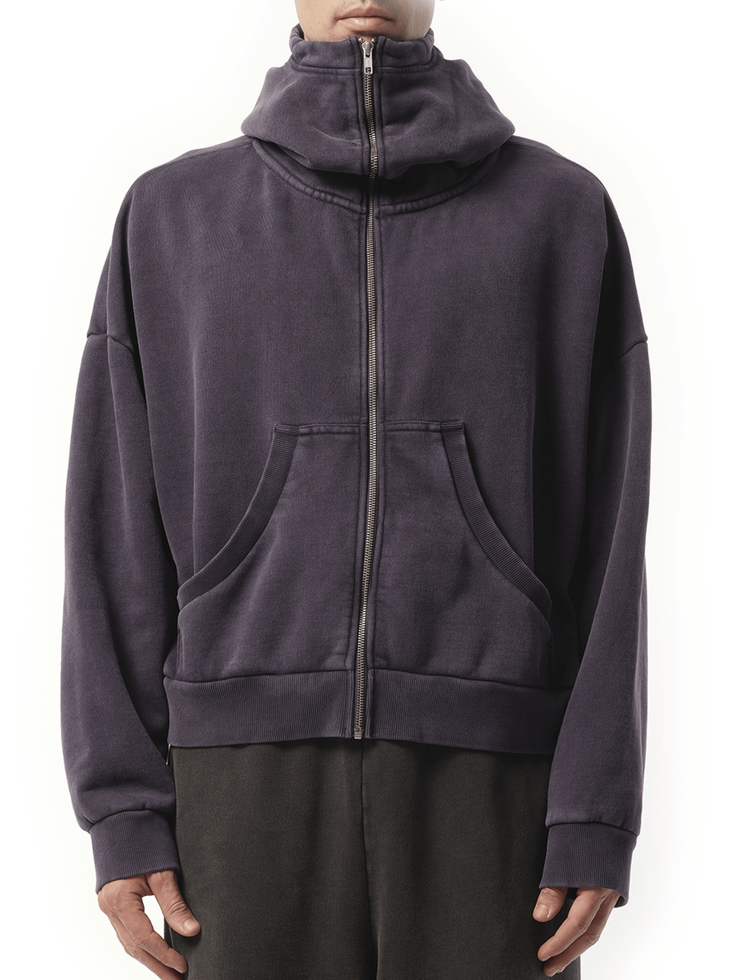 Entire Studios' Full Zip Hoodie in Ink combines innovative design with everyday comfort. This hoodie features a front zip extending to the top of the hood, providing both style and practicality. Crafted from 100% organic cotton brushed back fleece, it ensures a soft and comfortable wearing experience.