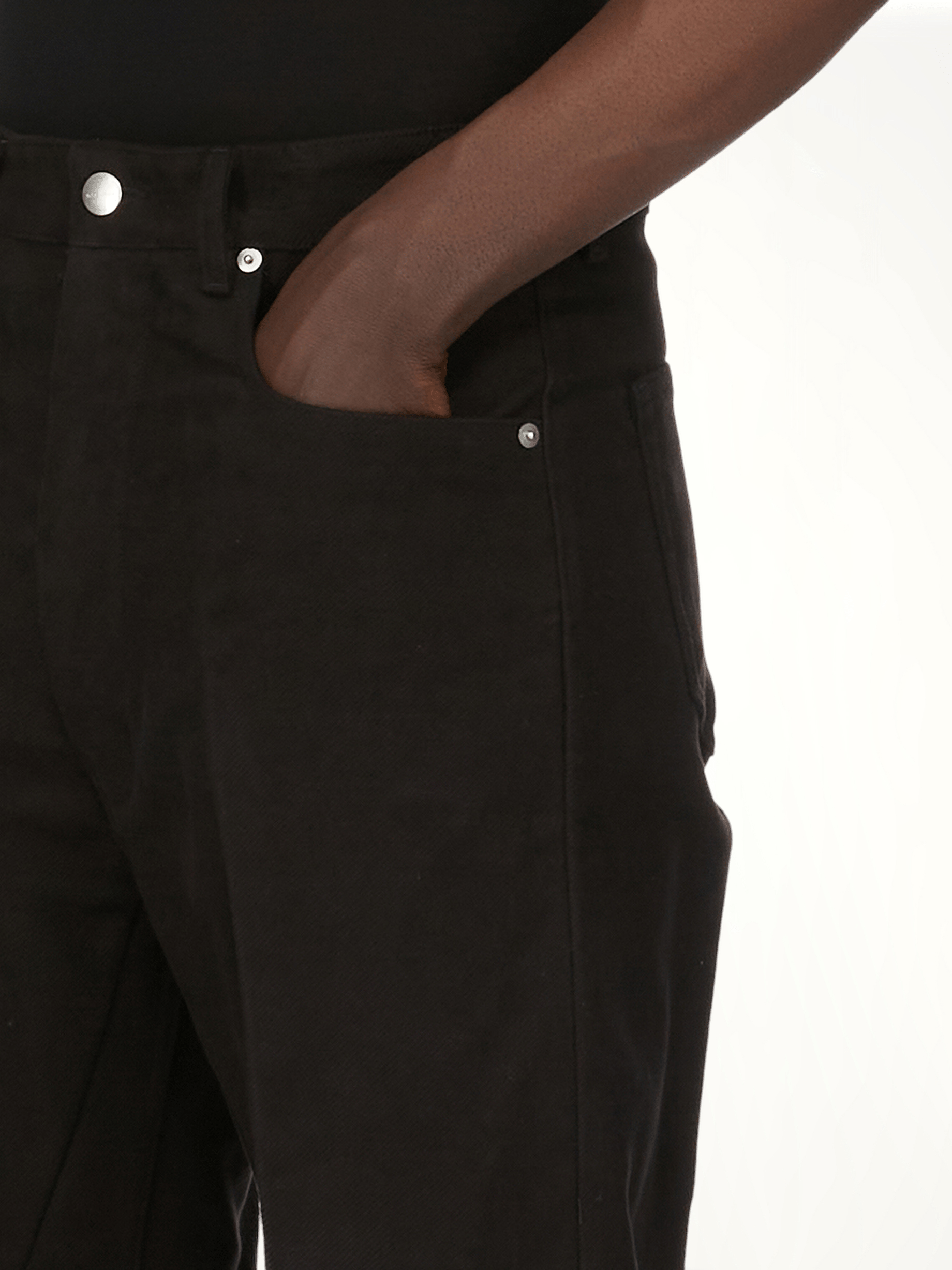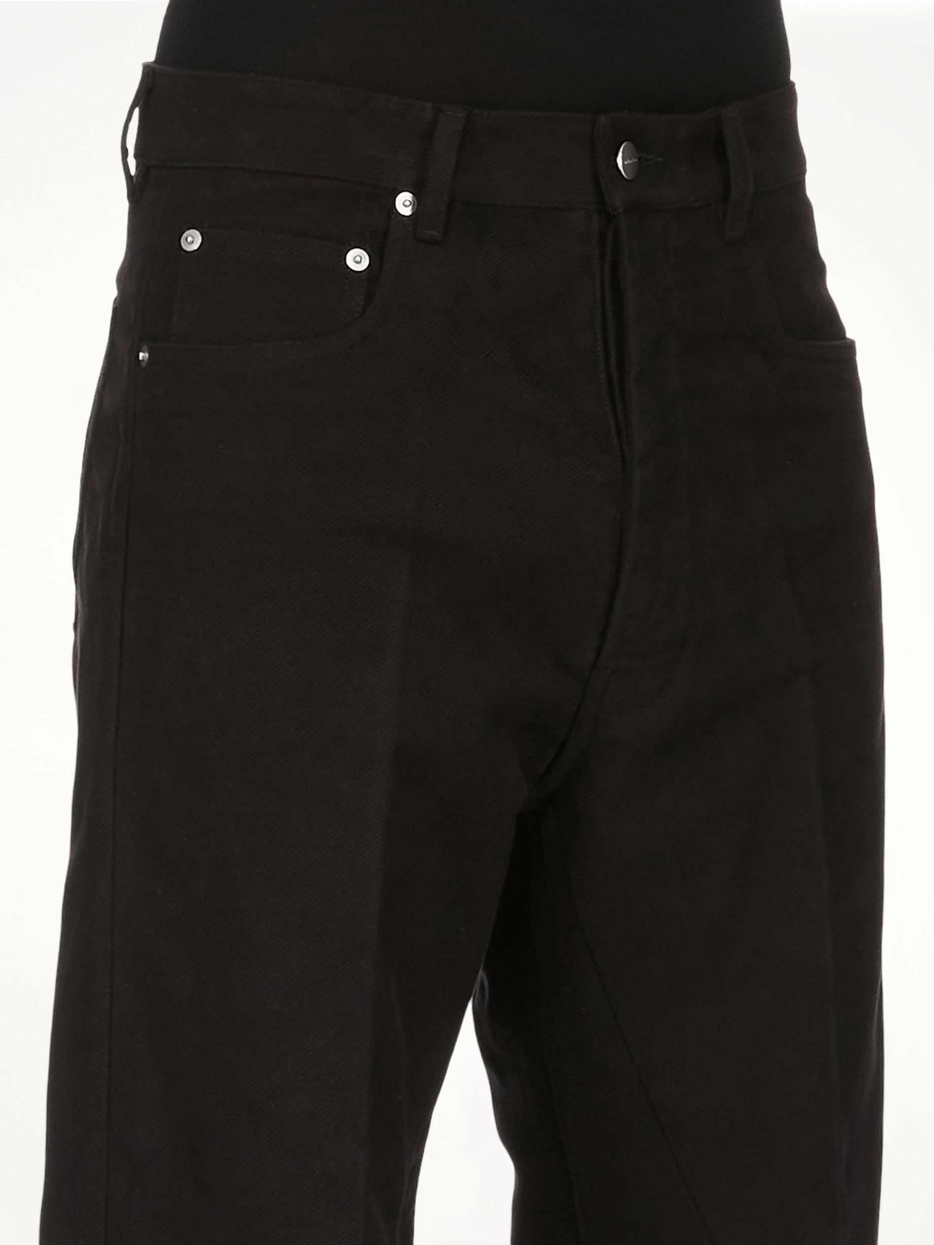 Rick Owens's Geth Jeans in Black offer a sleek and modern silhouette, perfect for elevating any wardrobe. These jeans combine the designer's signature avant-garde style with everyday wearability, making them a versatile addition to your collection. Experience the perfect blend of comfort and cutting-edge fashion with these standout jeans.