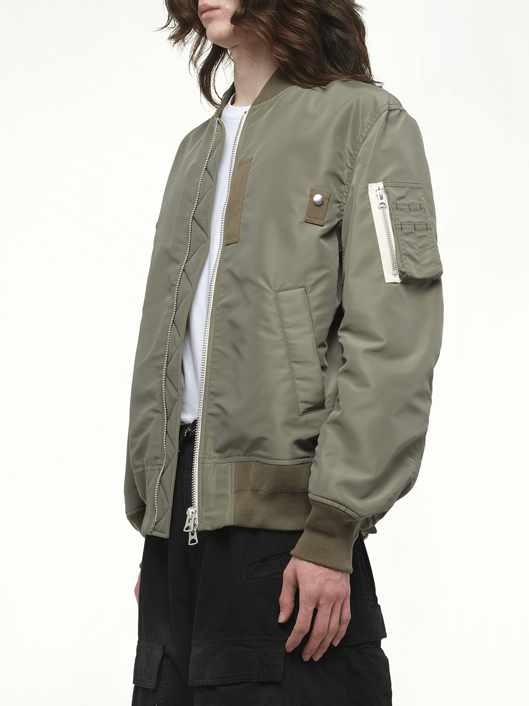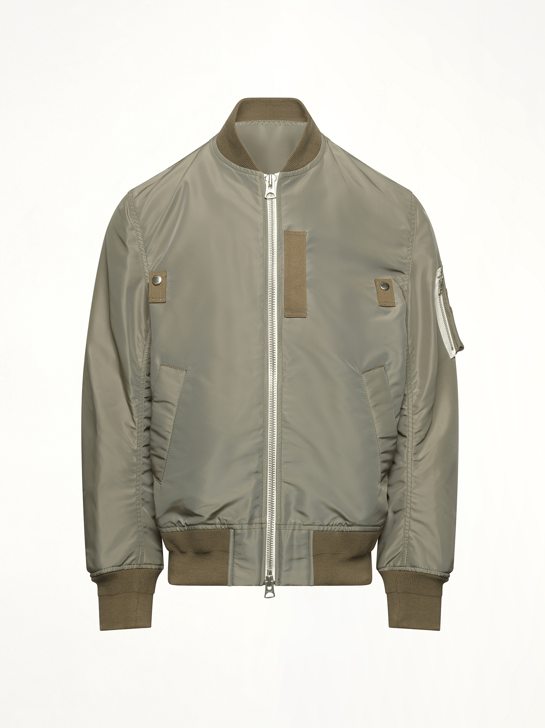 SACAI's Nylon Twill Blouson in Khaki is a versatile outerwear piece that combines functionality with contemporary style. Perfect for layering, this blouson adds a sophisticated touch to any casual ensemble.