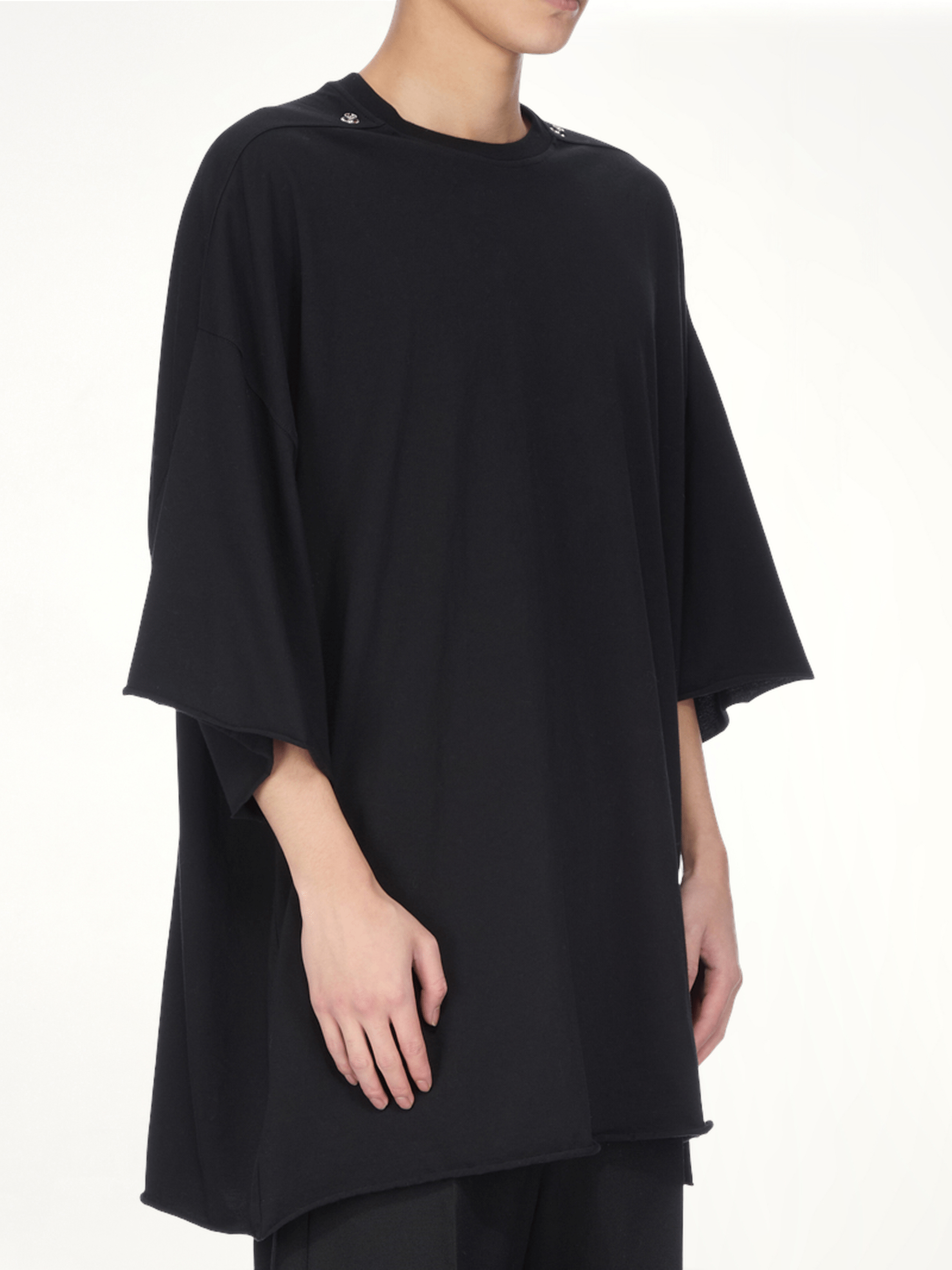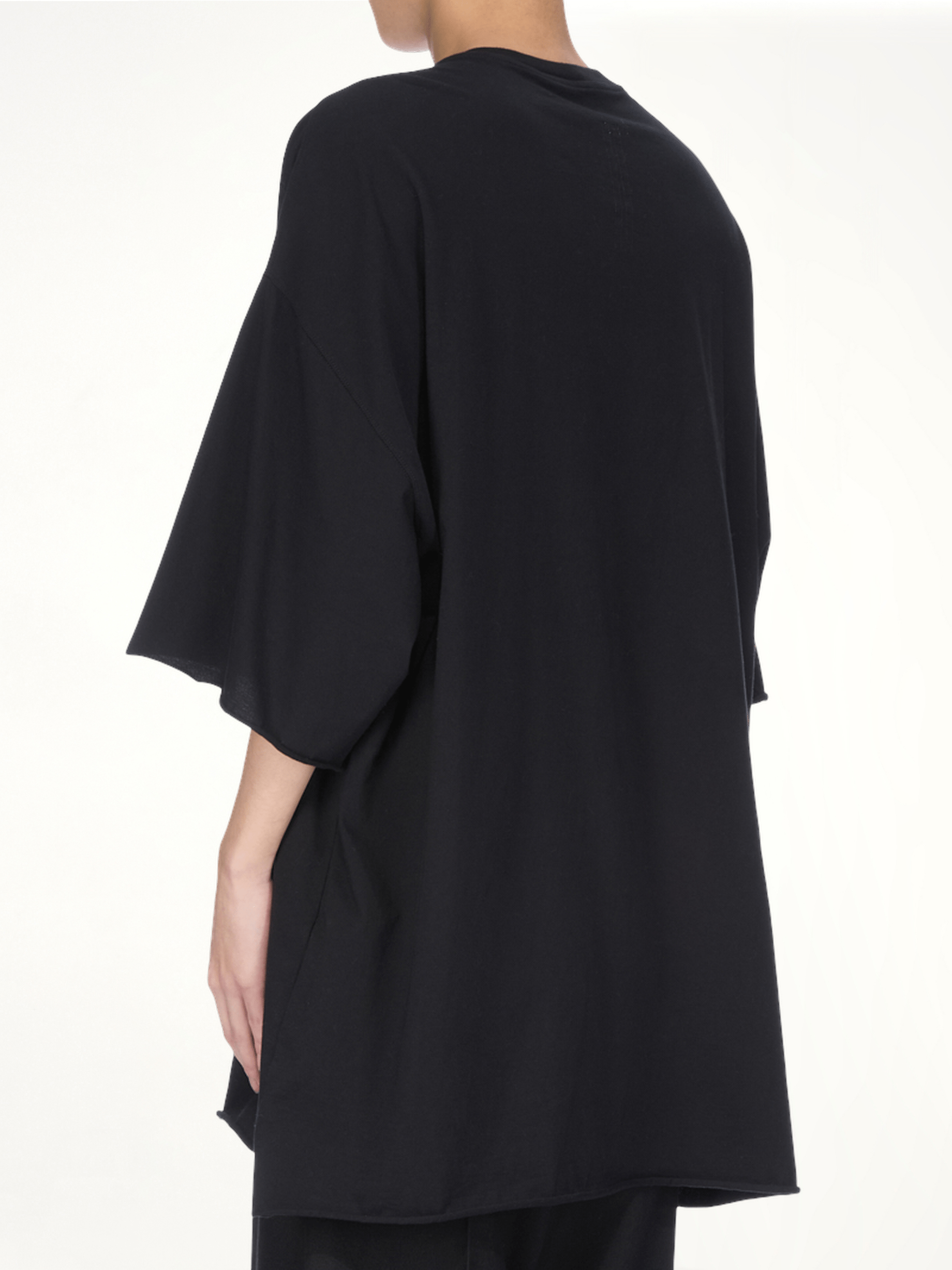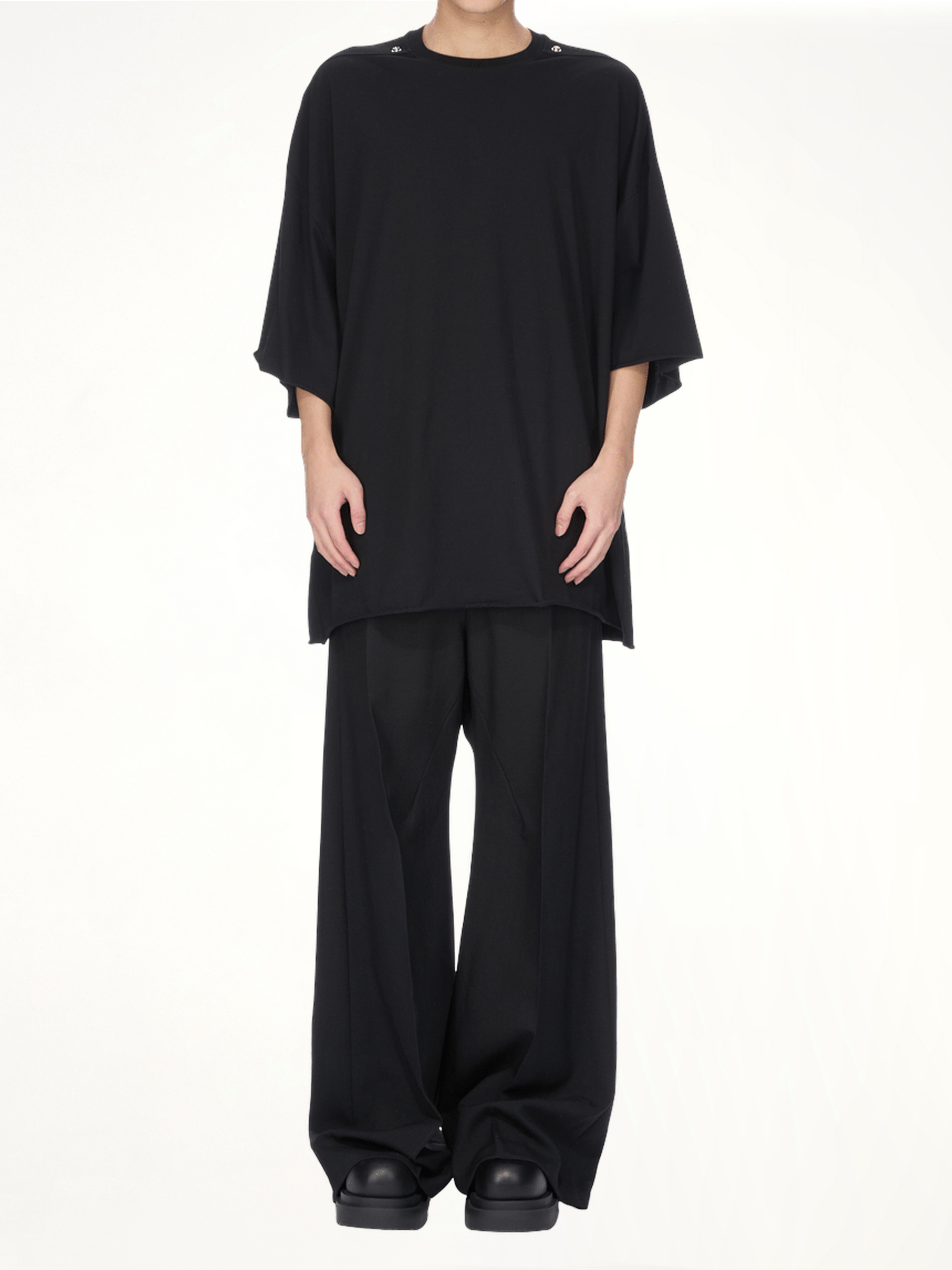 Rick Owens's Tommy T in Black is a sleek and versatile piece that embodies the designer's signature avant-garde aesthetic. Perfect for layering or as a standalone statement, this T-shirt offers both comfort and style.