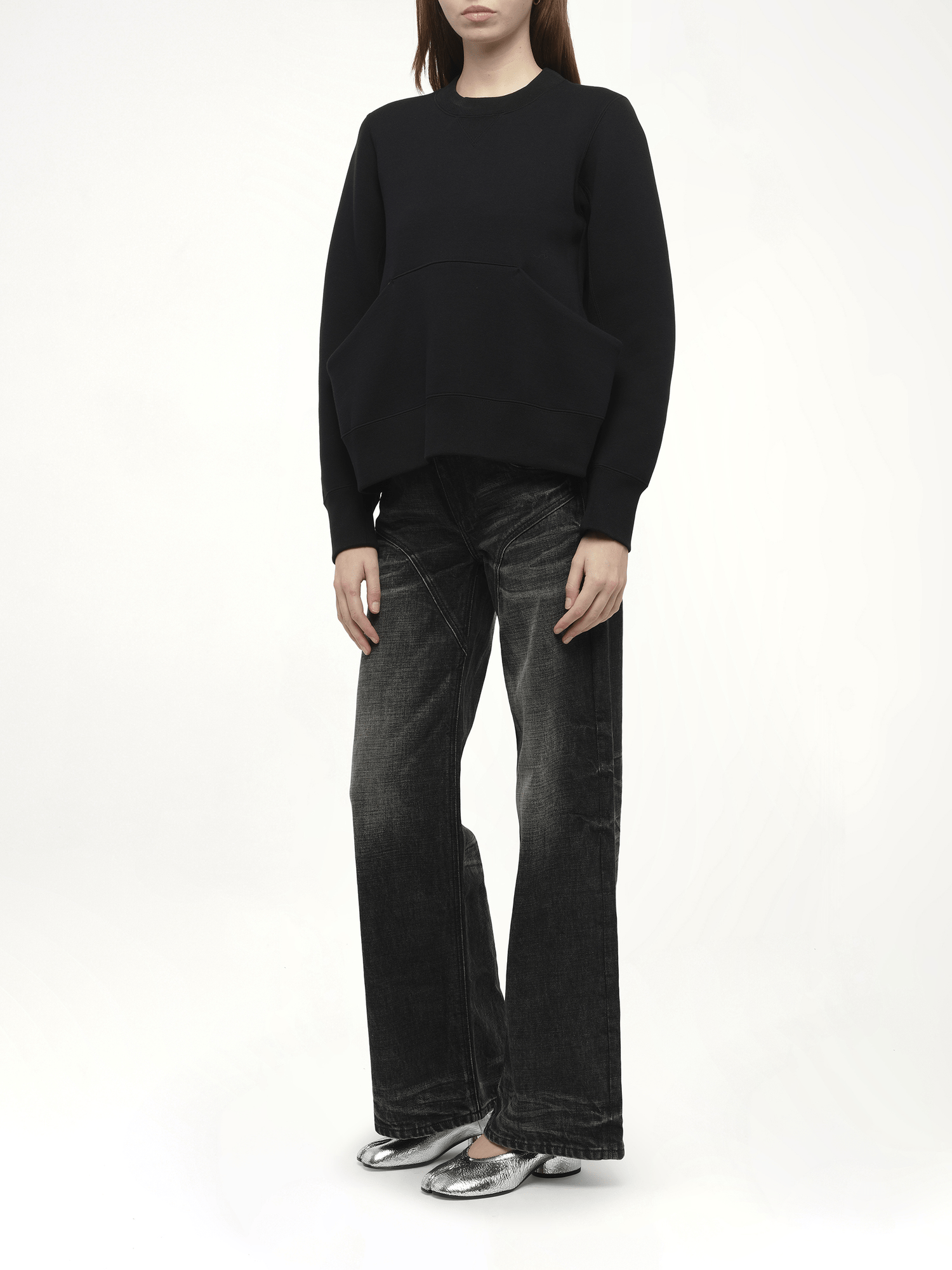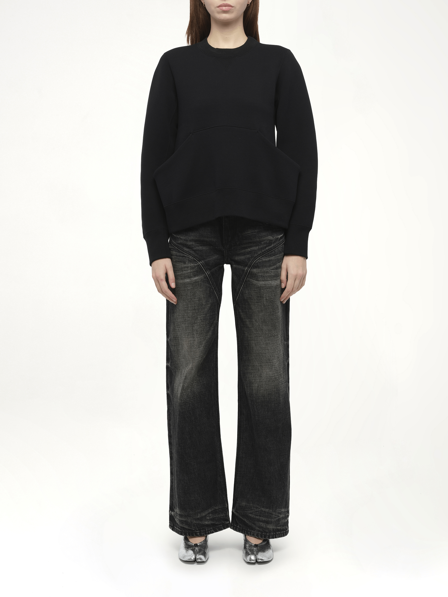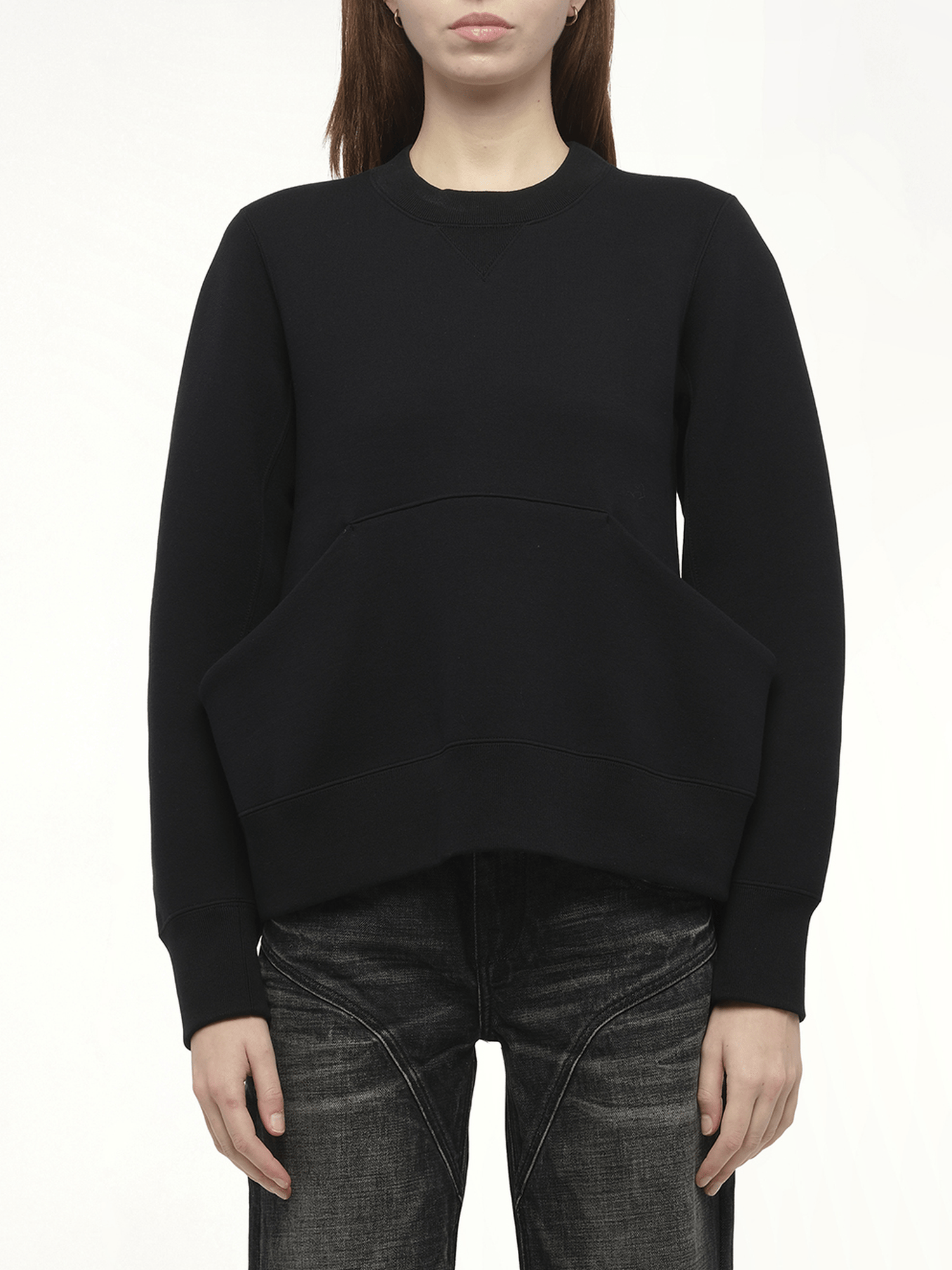 SACAI's Sponge Sweat Pullover in Black is a versatile and stylish addition to any wardrobe. This pullover combines comfort with a modern aesthetic, making it perfect for both casual and semi-formal occasions.