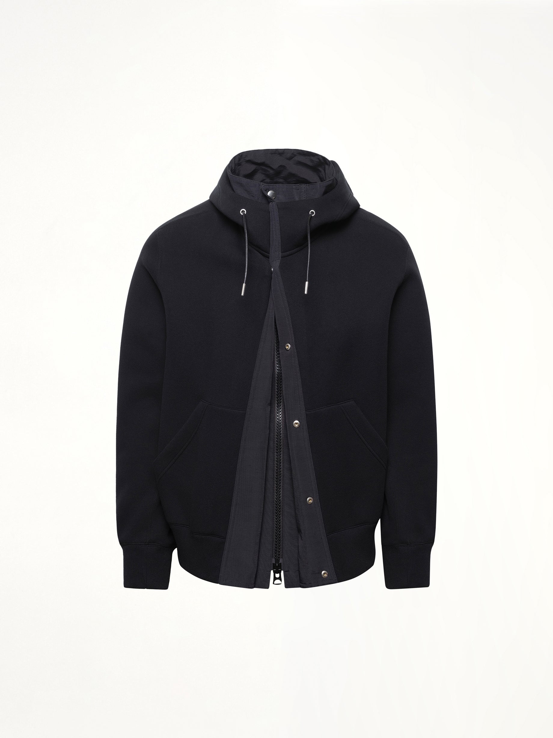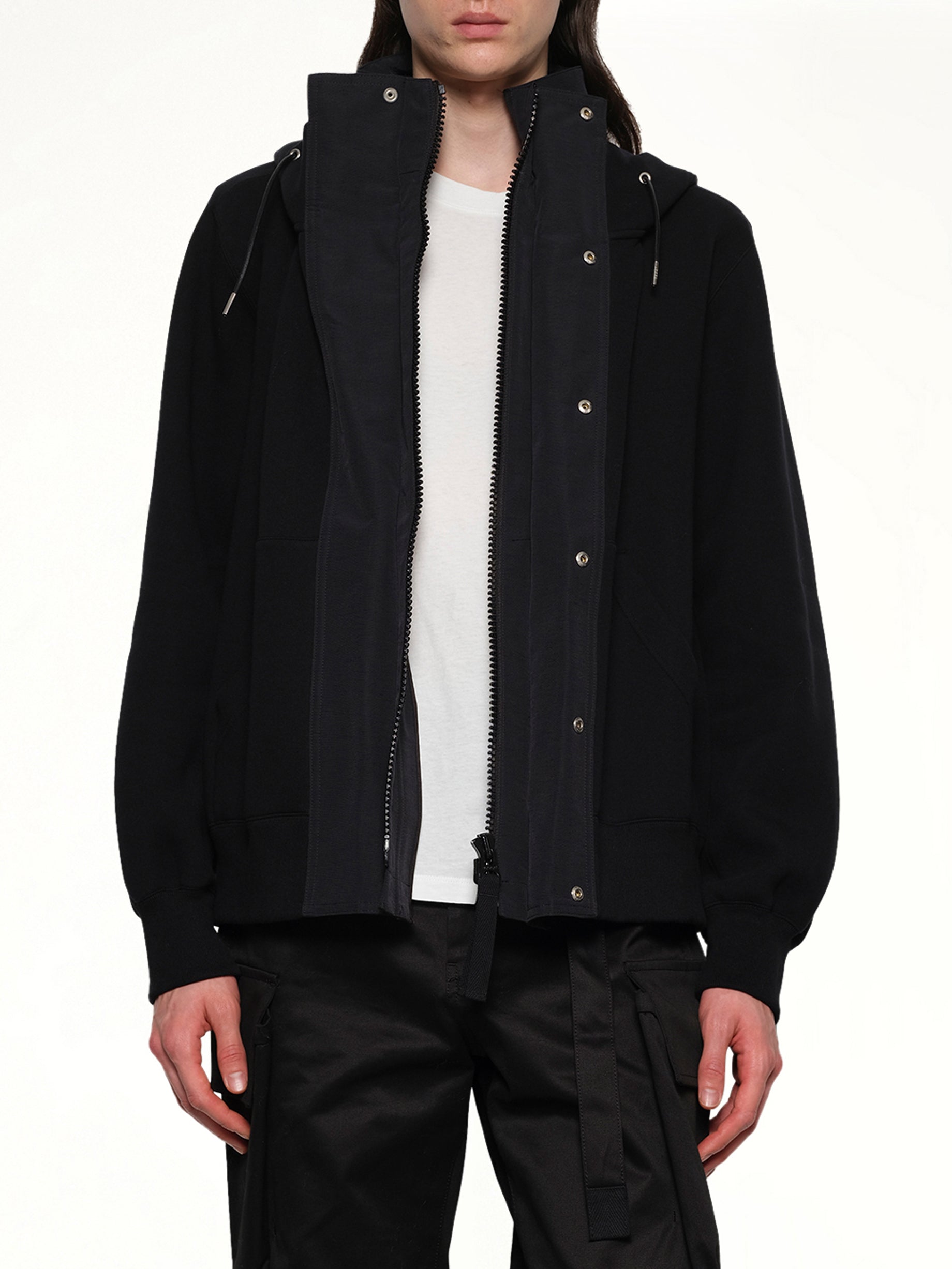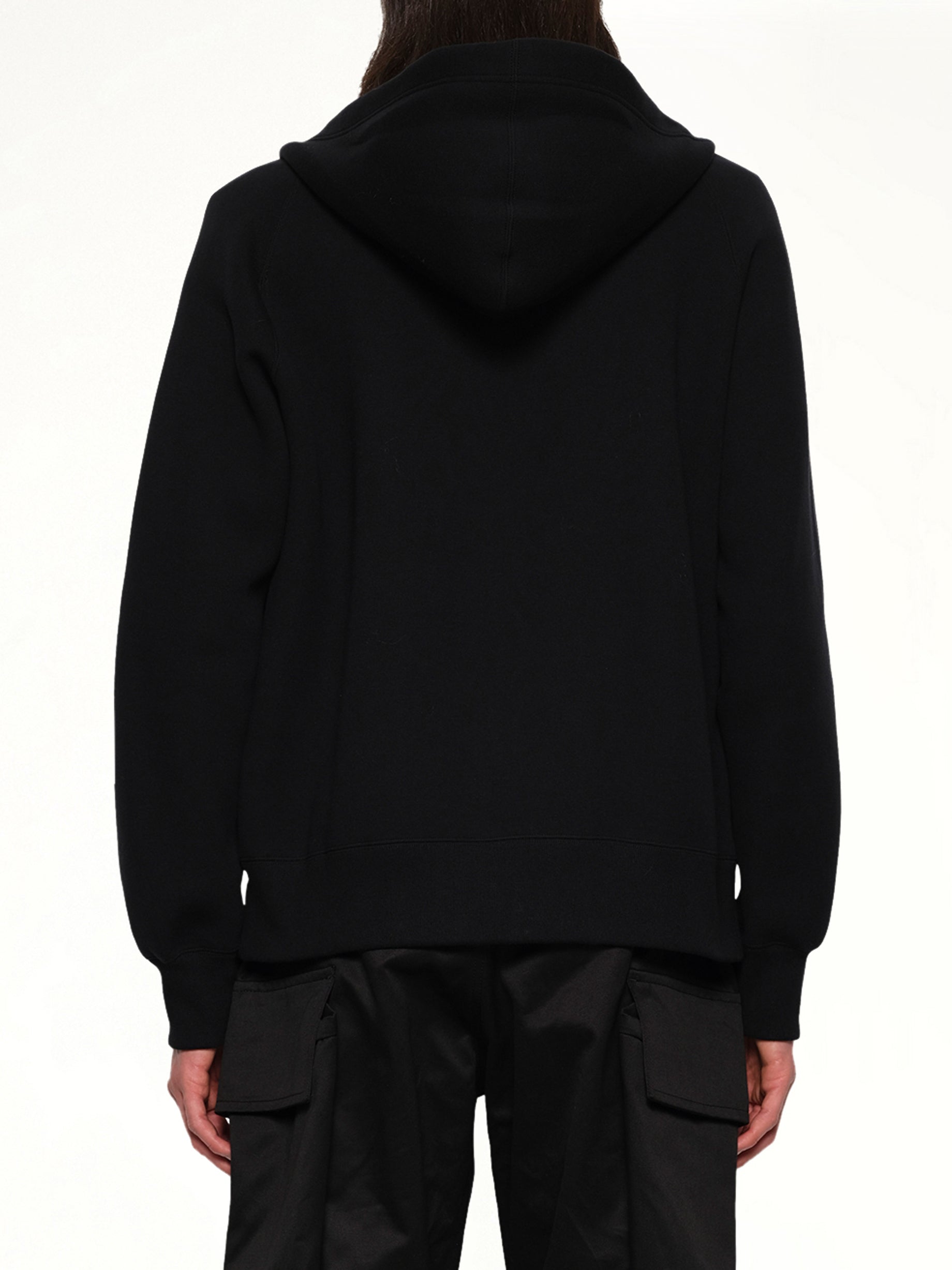 Sacai's Sponge Sweat x Grosgrain Hoodie in Black is a unique blend of comfort and style, offering a modern twist on a classic silhouette. This hoodie combines luxurious textures with a contemporary design, making it a standout piece in any wardrobe.