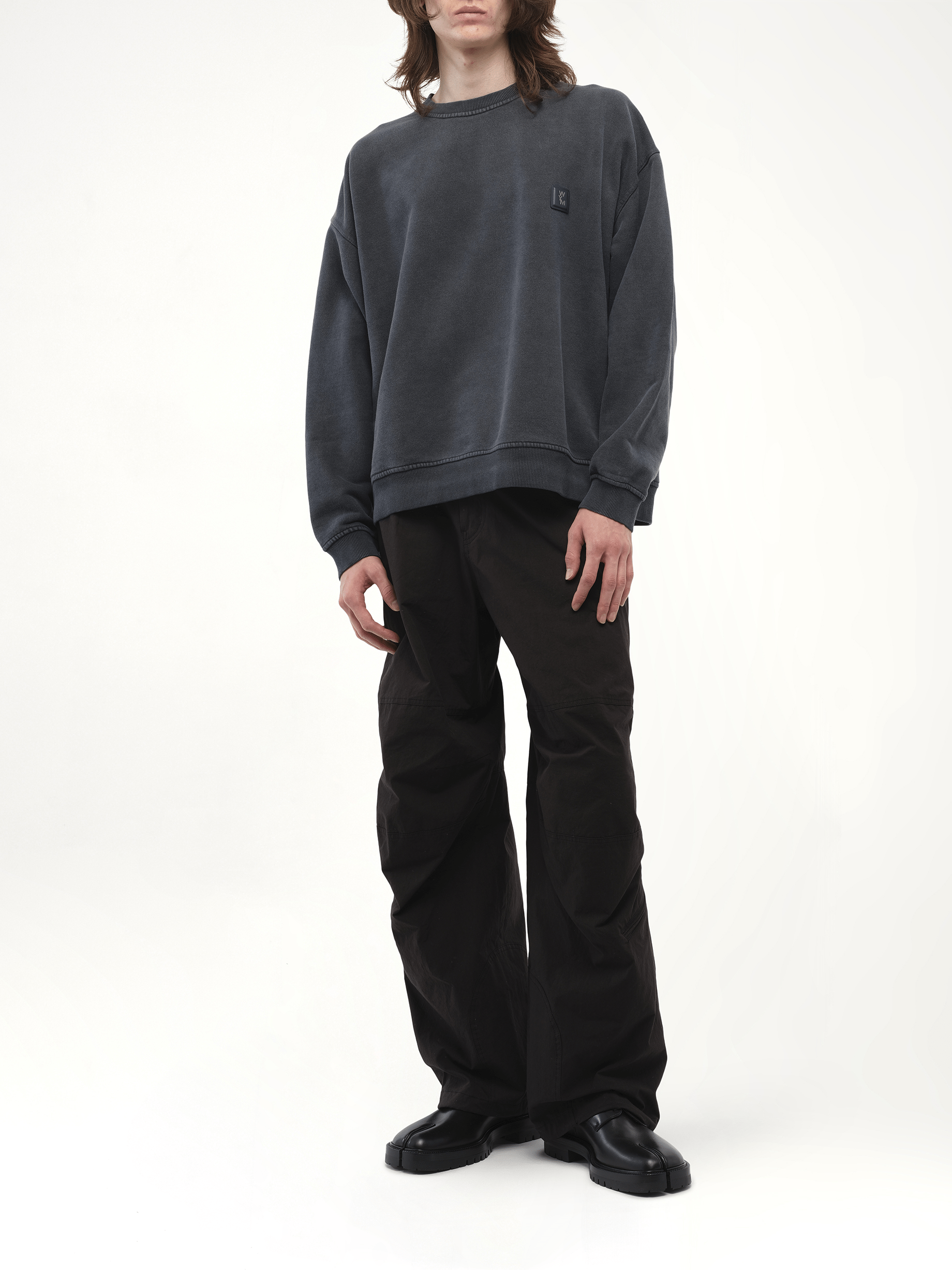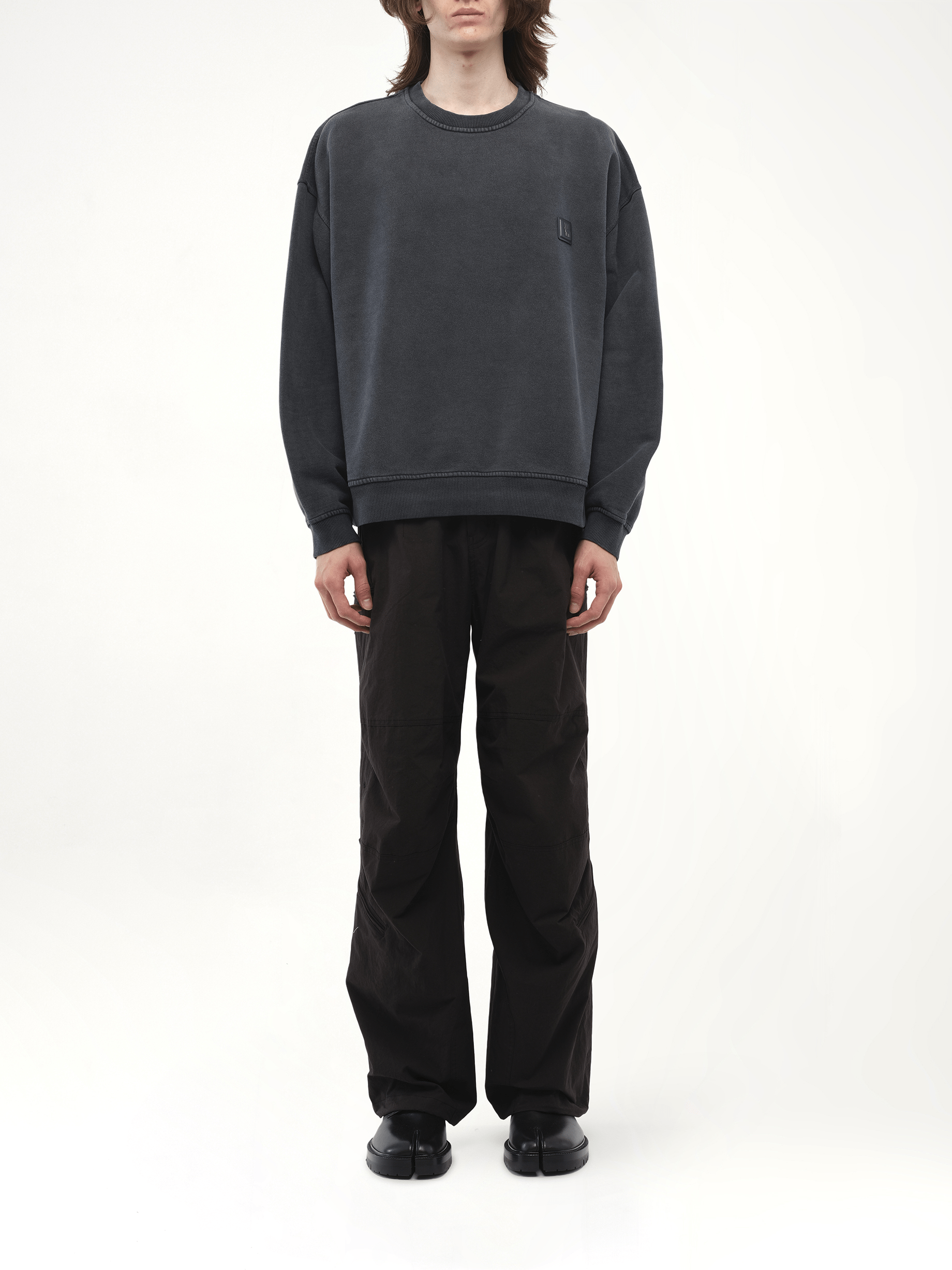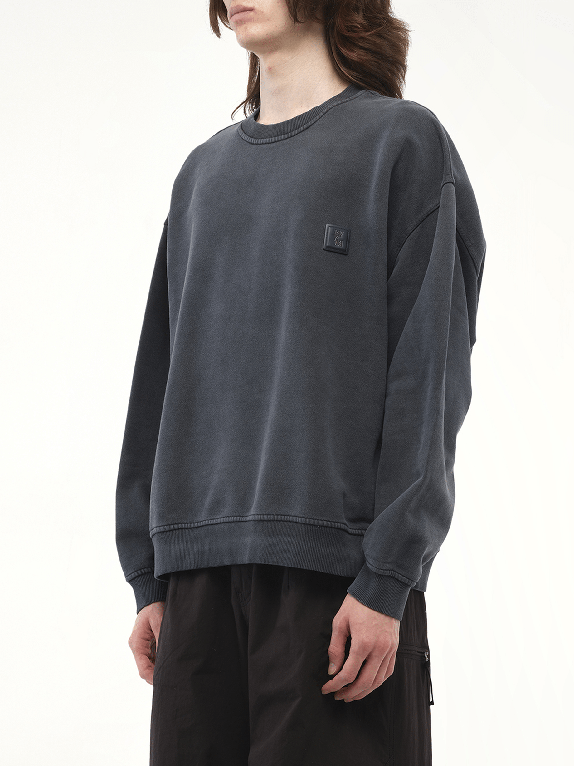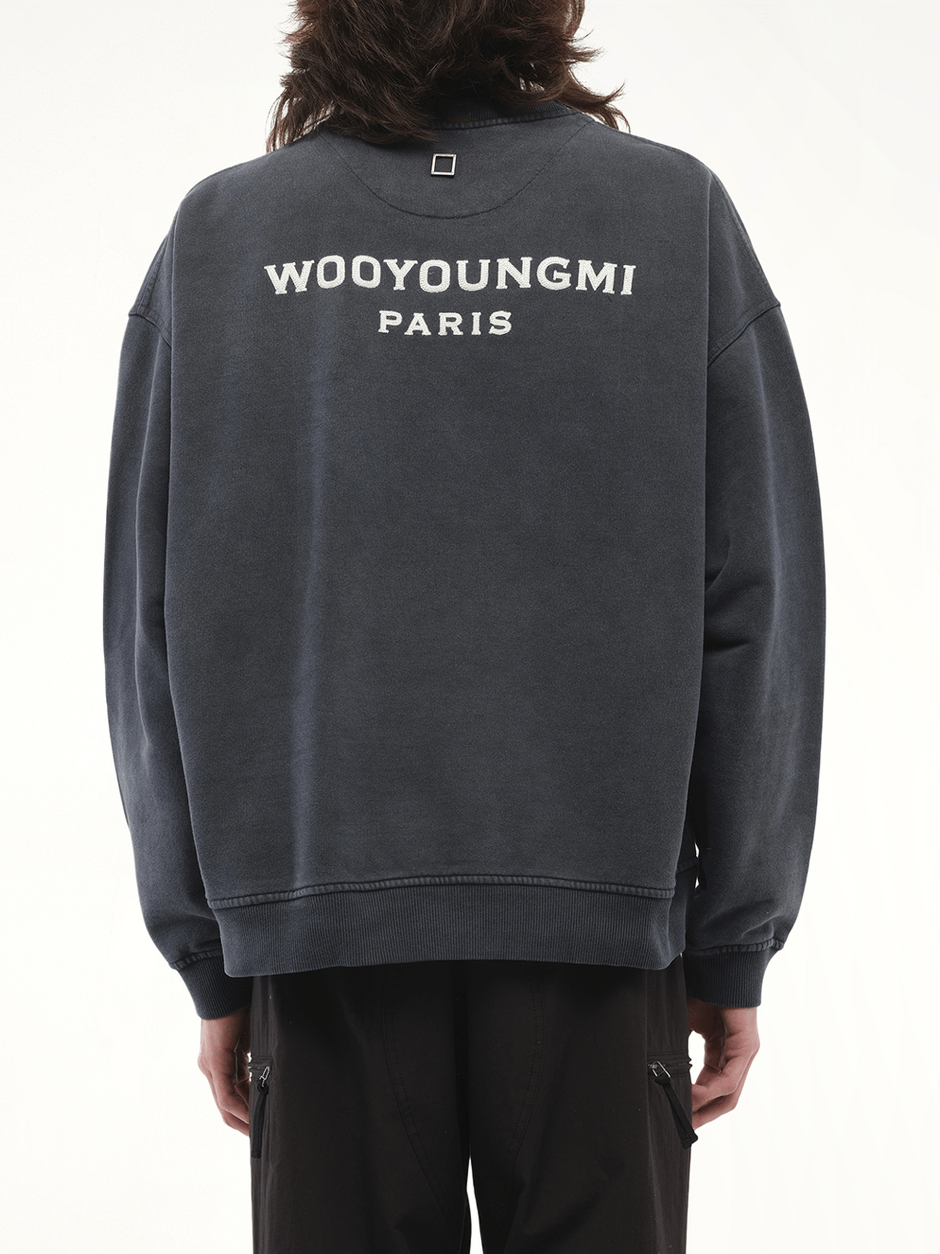 WOOYOUNGMI's Garment Dyed Sweatshirt in Grey offers a perfect blend of style and comfort, making it a versatile addition to any wardrobe. Elevate your casual look with this uniquely dyed piece that promises both quality and sophistication.