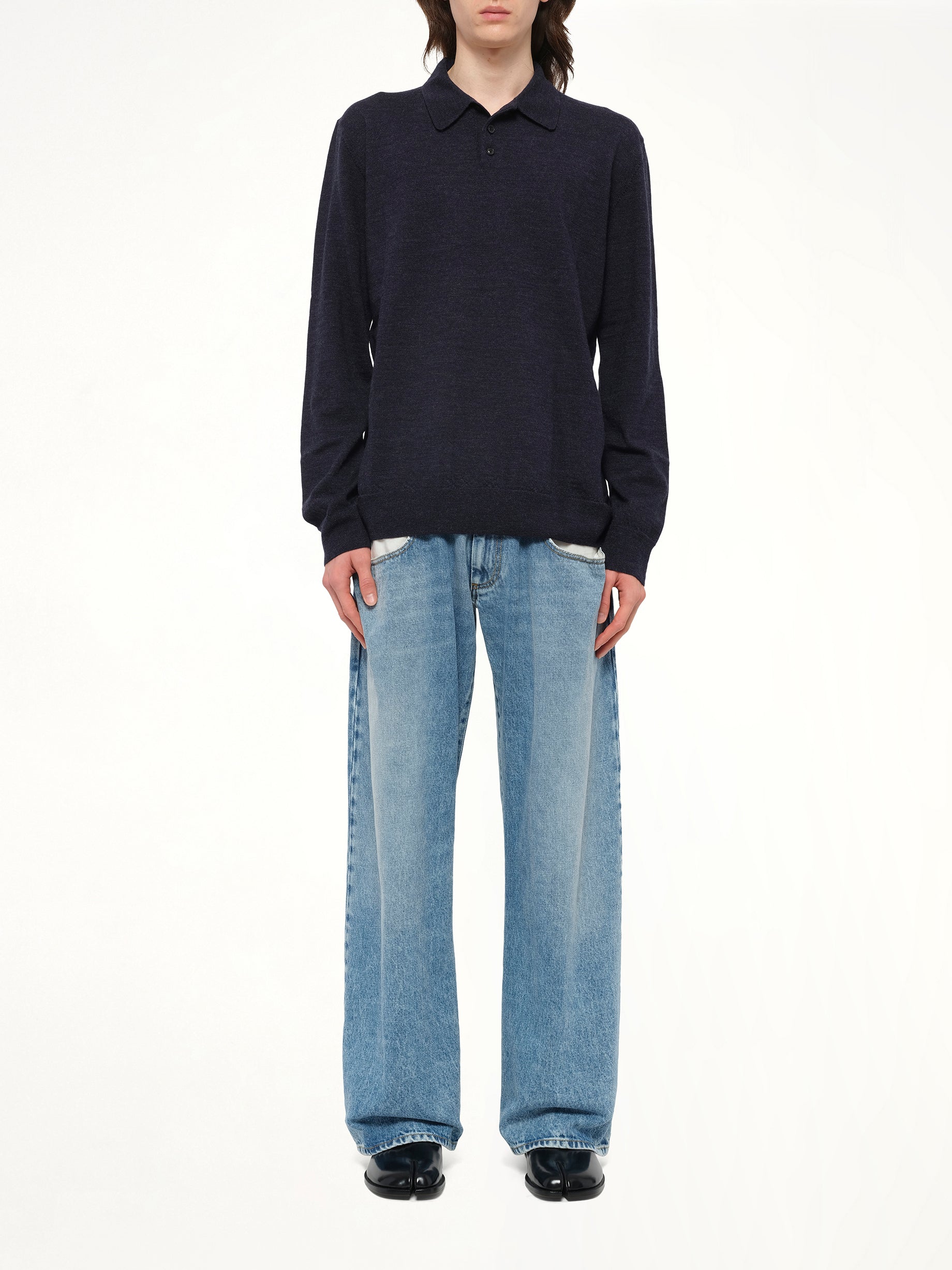 Maison Margiela's Gauge 14 Polo Shirt in Navy is a sophisticated blend of classic design and modern elegance. This versatile piece is perfect for both casual and semi-formal occasions, offering a timeless addition to any wardrobe.