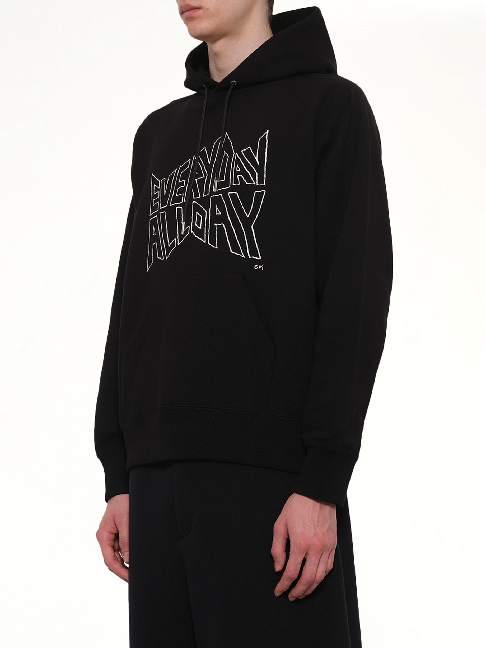 Sacai's Geoff Sacai Print Hoodie in Black is a stylish and versatile piece that combines comfort with a modern aesthetic. Perfect for casual outings or layering, this hoodie offers a unique design that stands out.