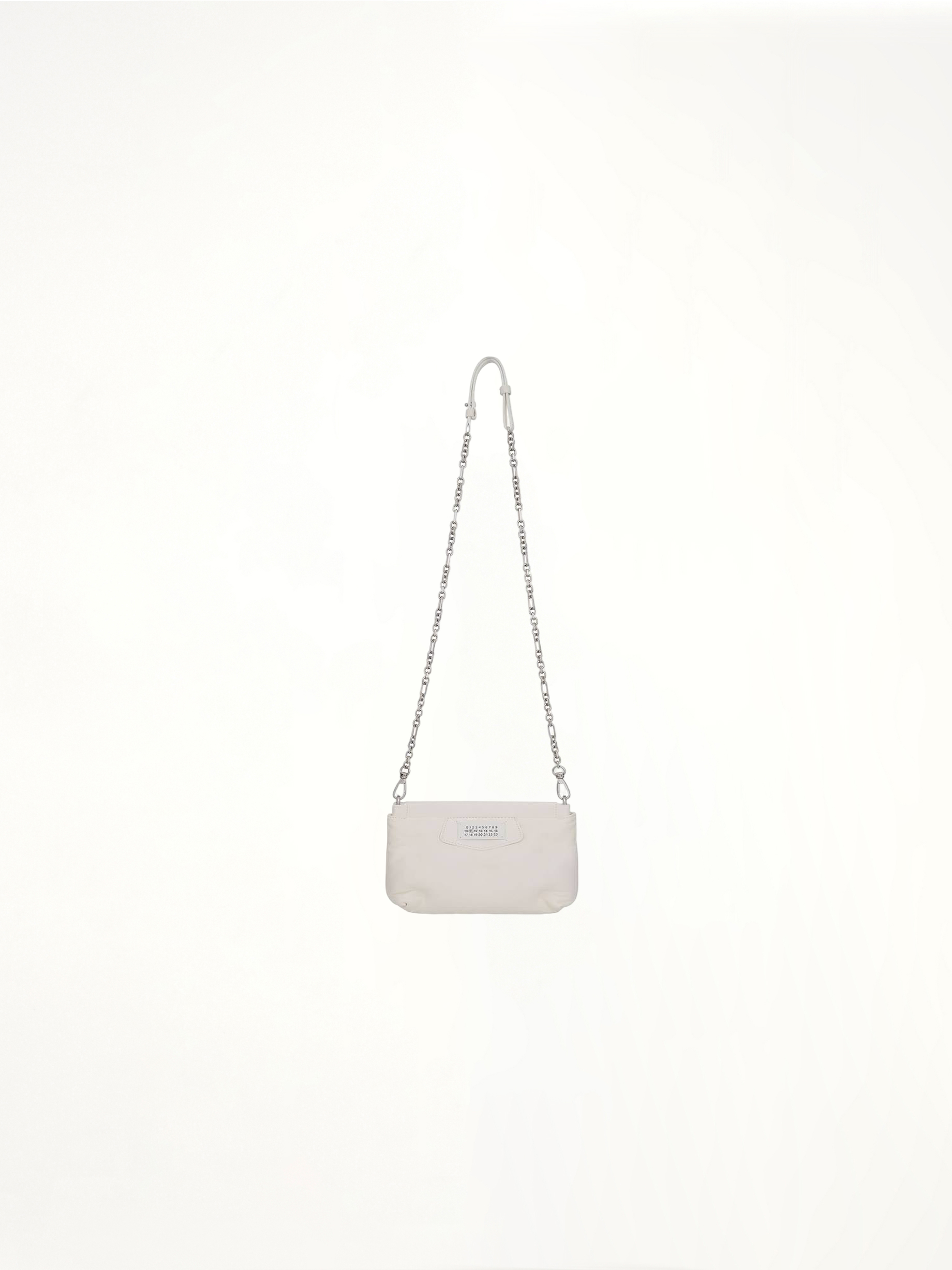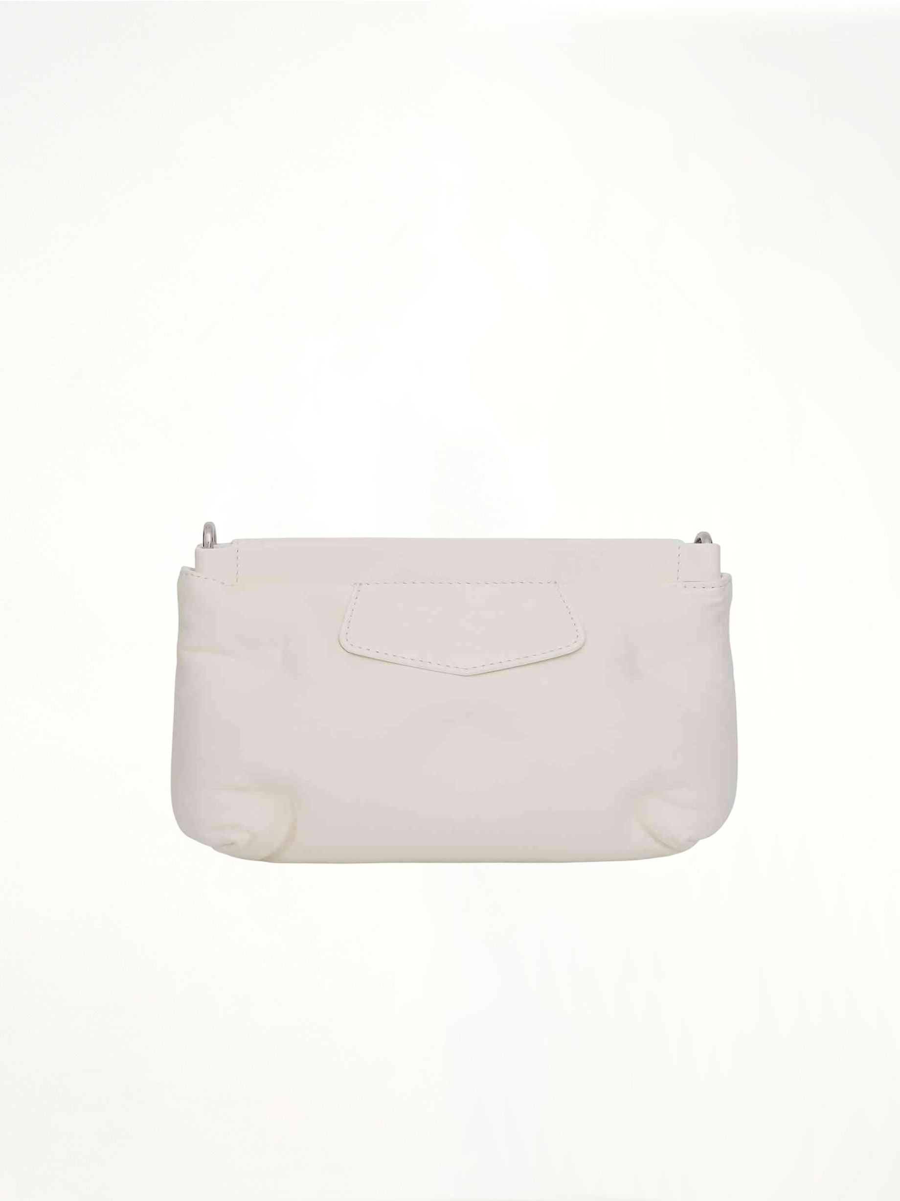 Glam slam pouch in white with padded design, silver-tone hardware, logo patch to the front and signature numbers motif