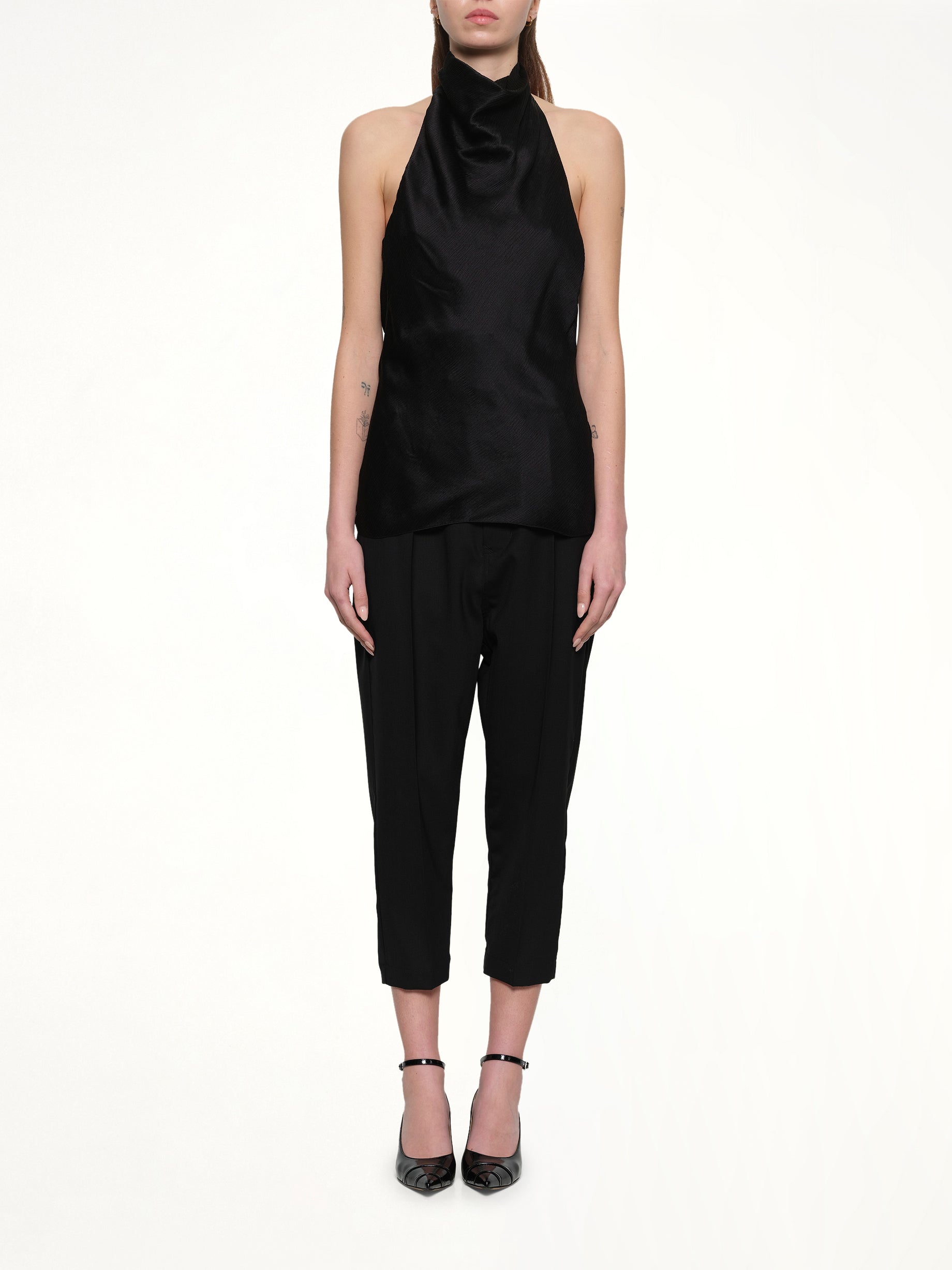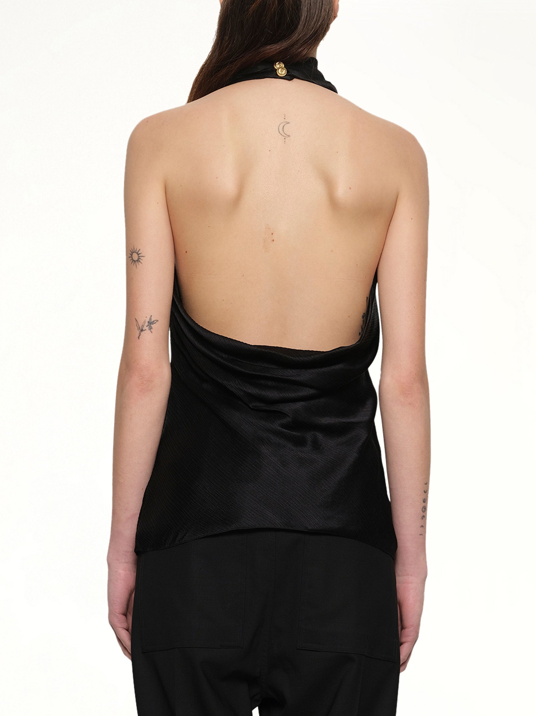 Halterneck Crepe Satin Top in Black