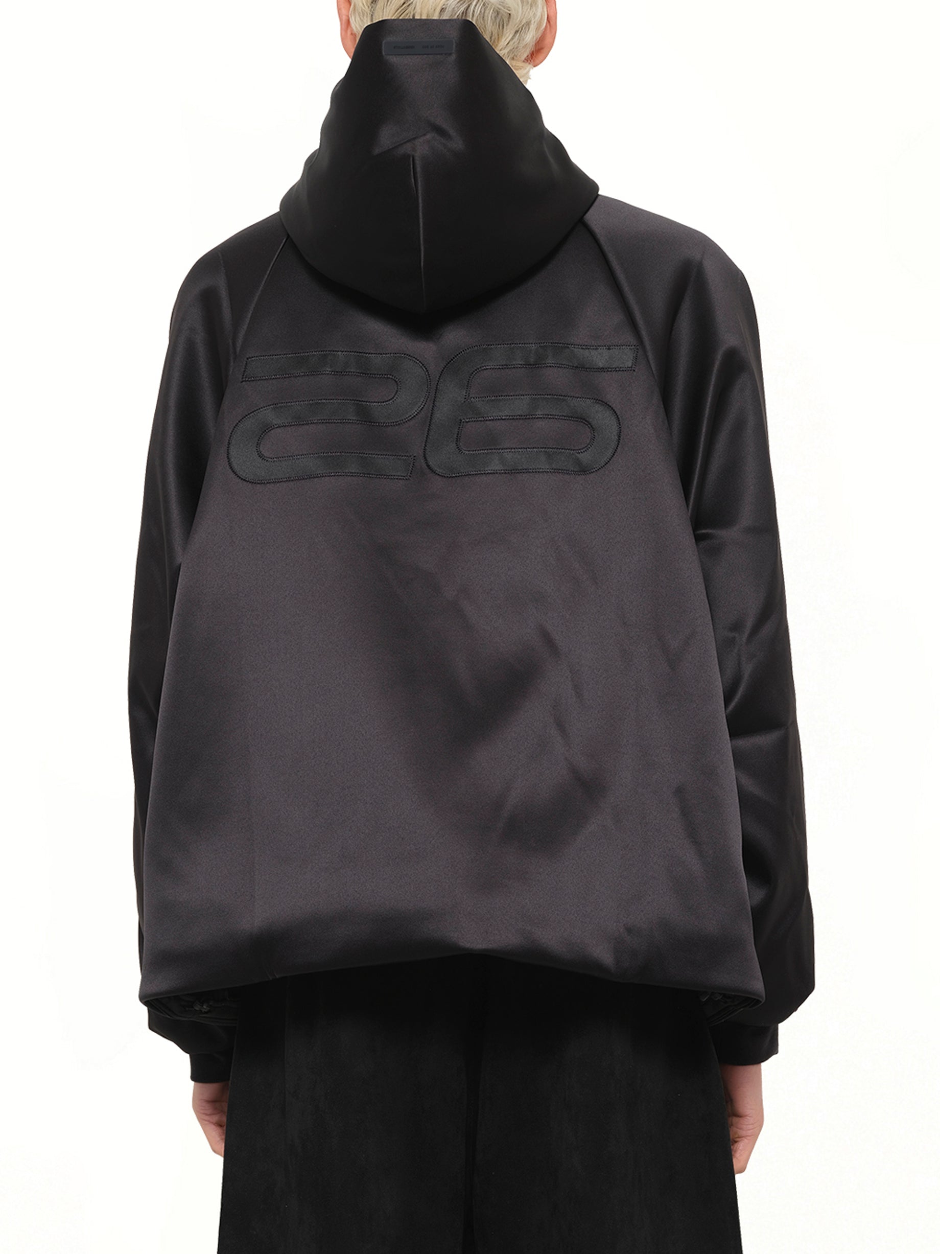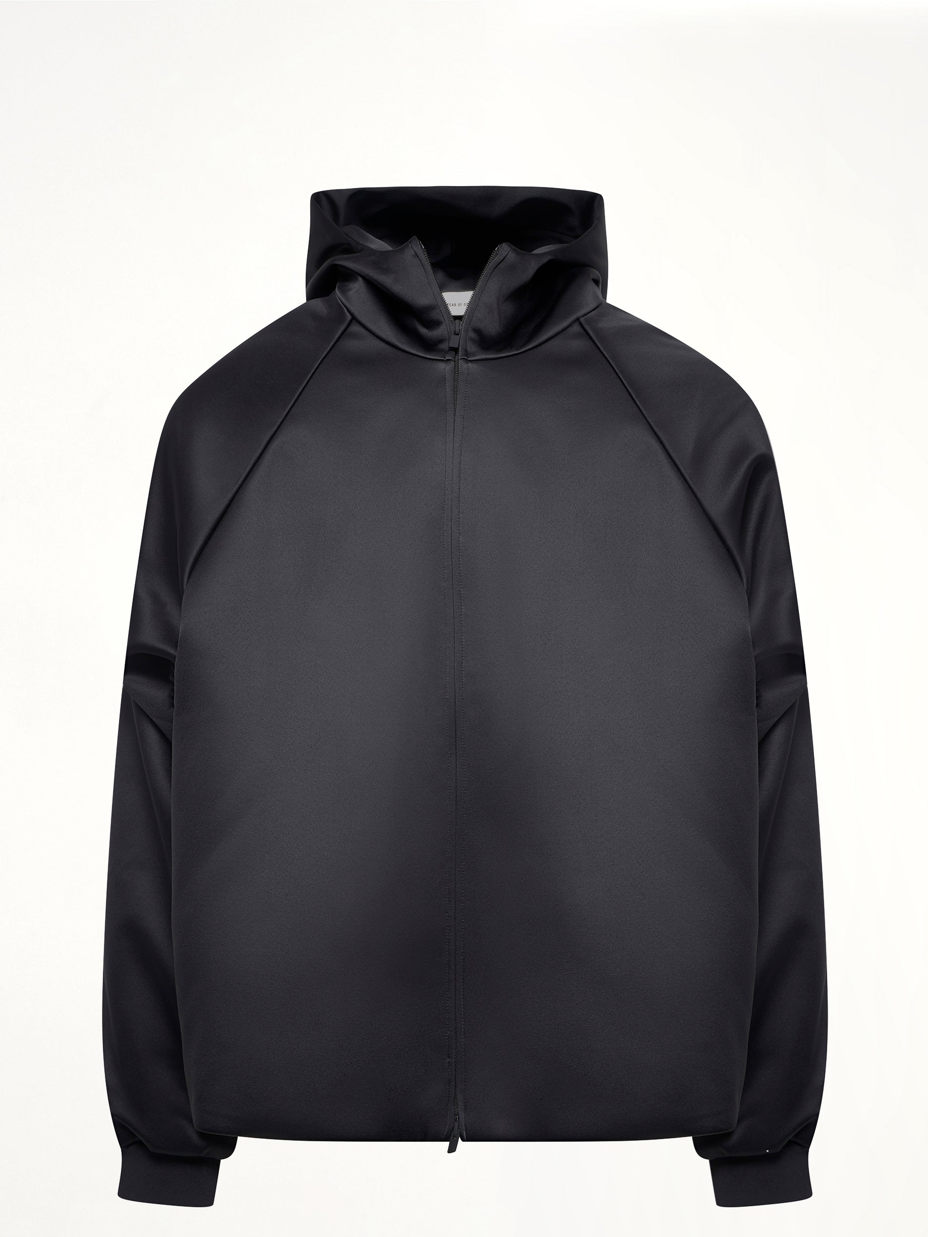 Fear of God Essentials's Hooded Bomber Jacket in Vintage Black is a stylish and versatile outerwear piece. It combines a classic bomber silhouette with modern design elements for a timeless look.