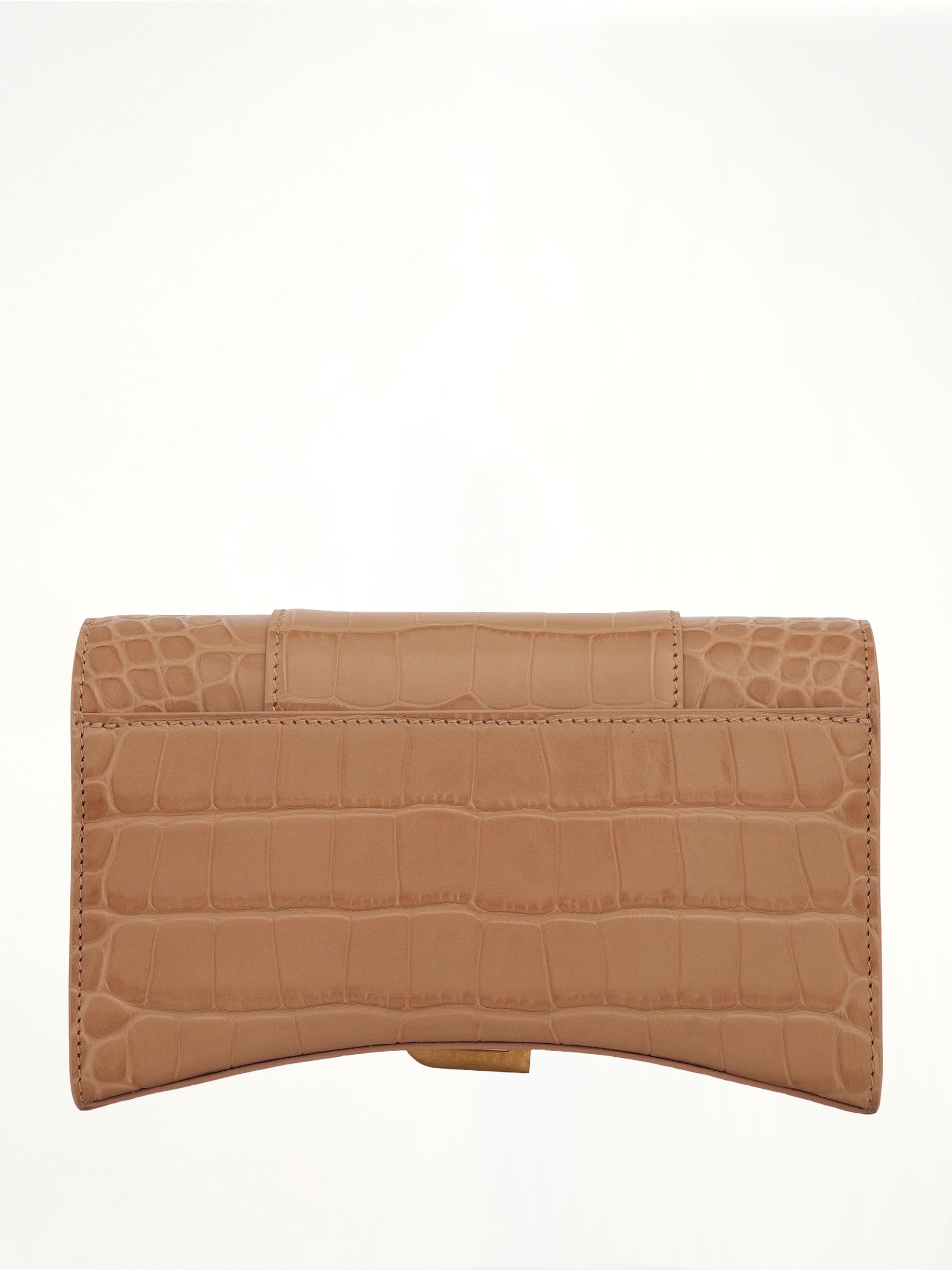 Hourglass Embossed Croc Wallet On Chain in Nude Beige