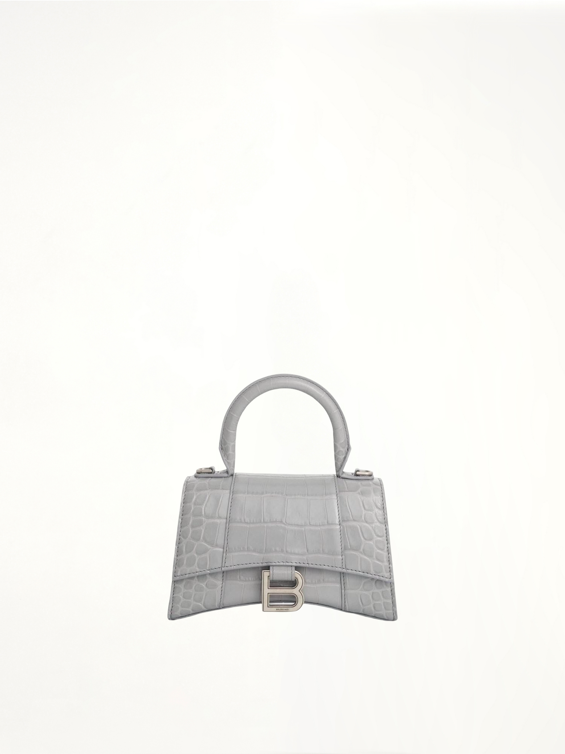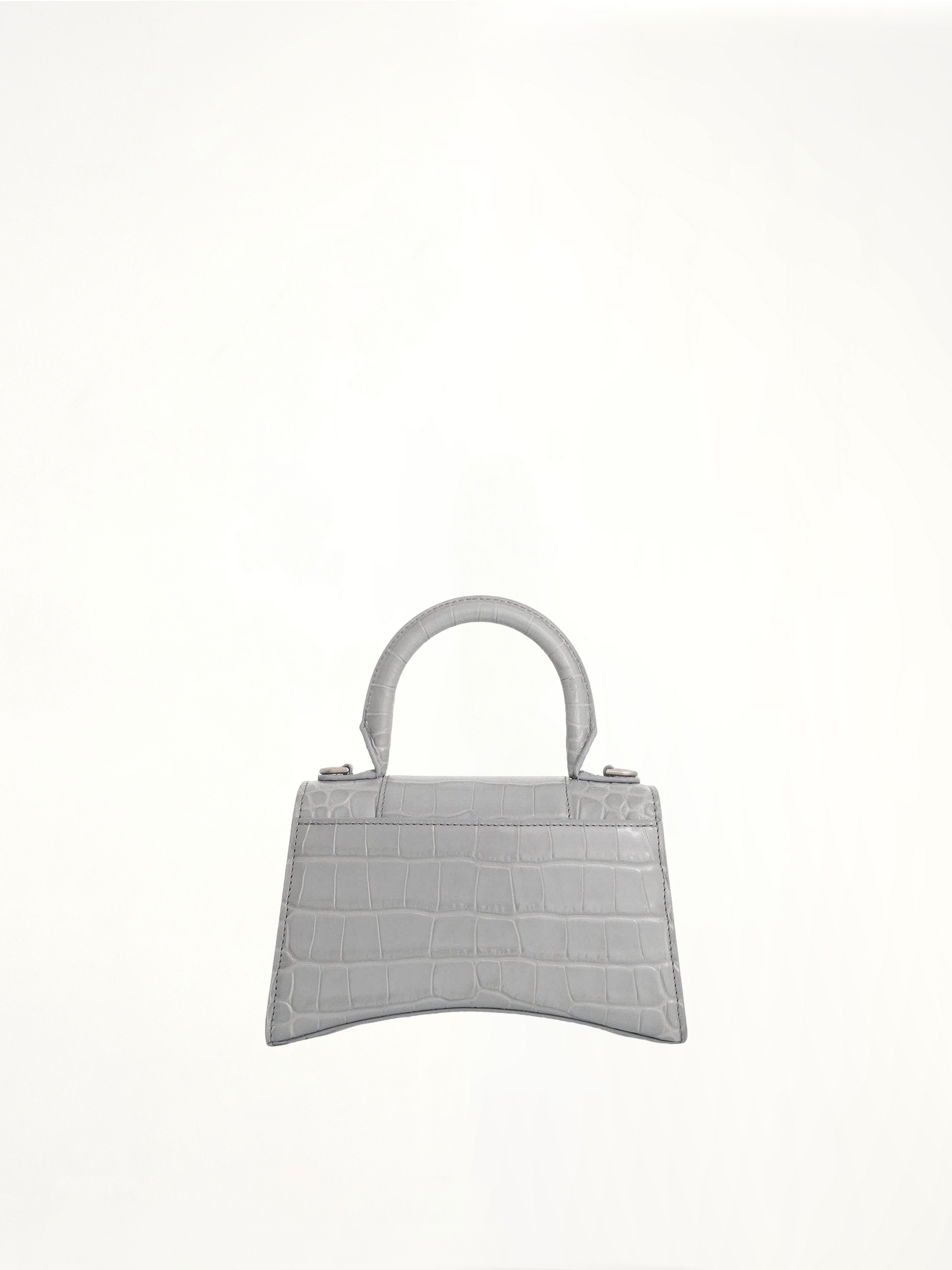 This timeless Hourglass XS Croco Embossed Bag in Grey is sure to become your go-to accessory! Crafted from luxurious leather and croco embossed, it's the perfect expression of chic, sophisticated style.
