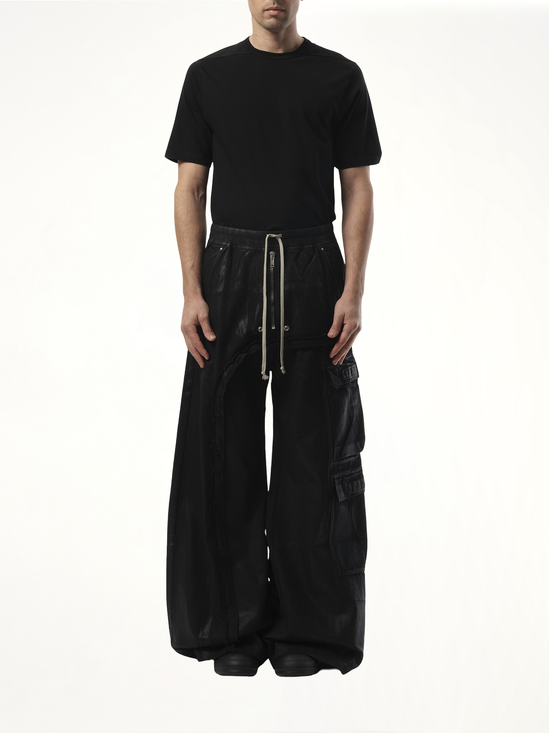 Expertly crafted for practicality and style, these Imbalanced Double Cargo Jumbo Pants in Black offer a unique twist on traditional cargo pants. With a double cargo design and an imbalanced hem, these pants provide extra storage and an edgy look.