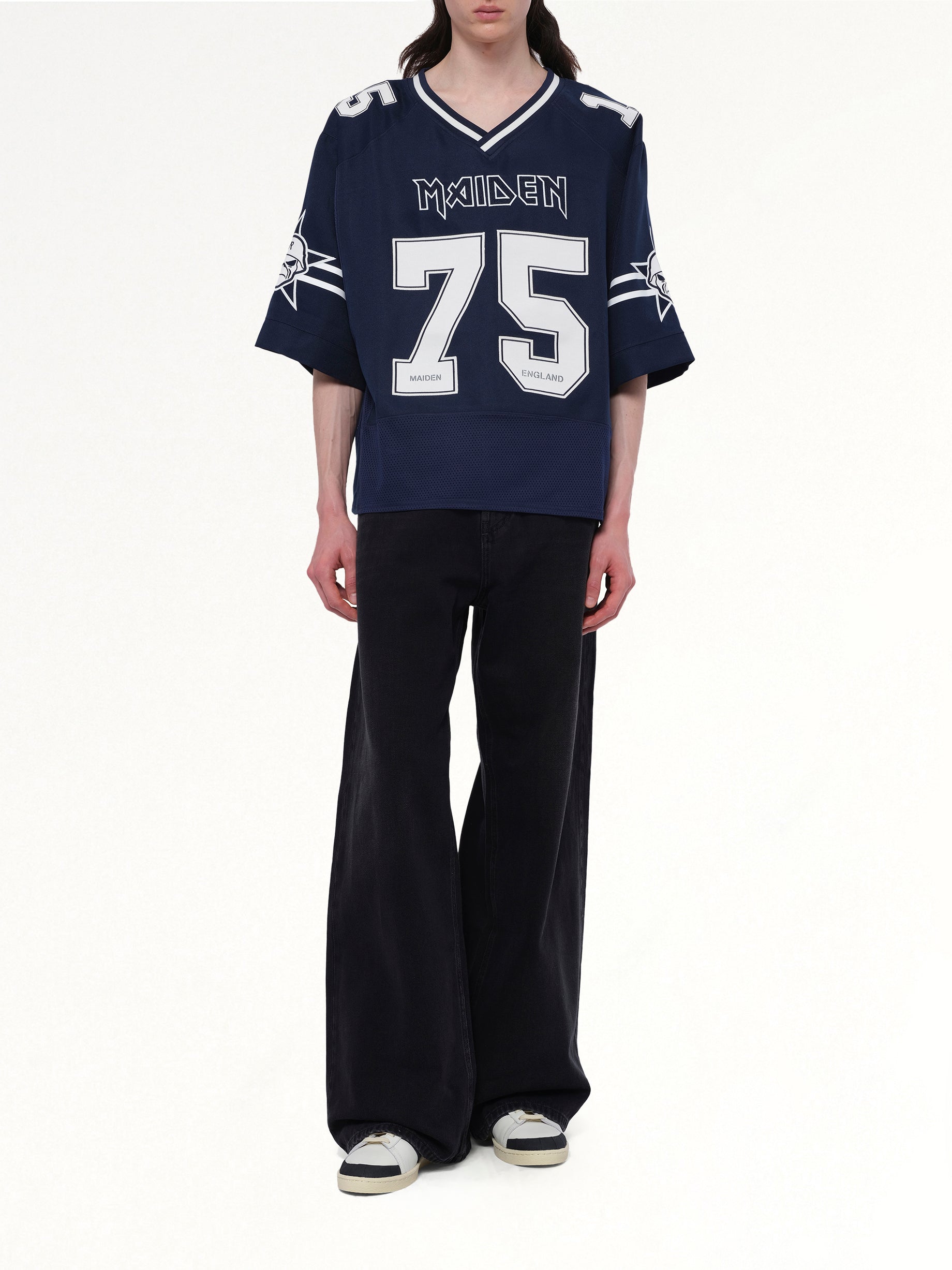 REPRESENT's Iron Maiden Anniversary Jersey in Mid Blue is a tribute to the legendary band's enduring legacy, combining style and comfort for fans and fashion enthusiasts alike. This jersey captures the spirit of Iron Maiden with its bold design and attention to detail.