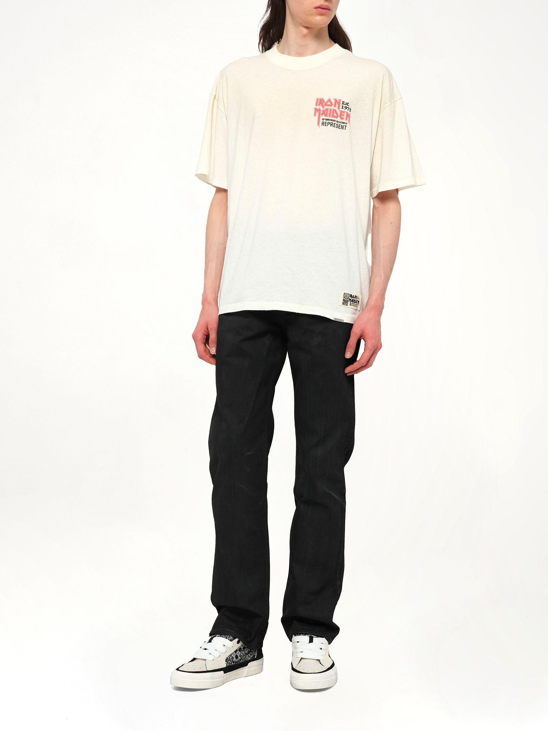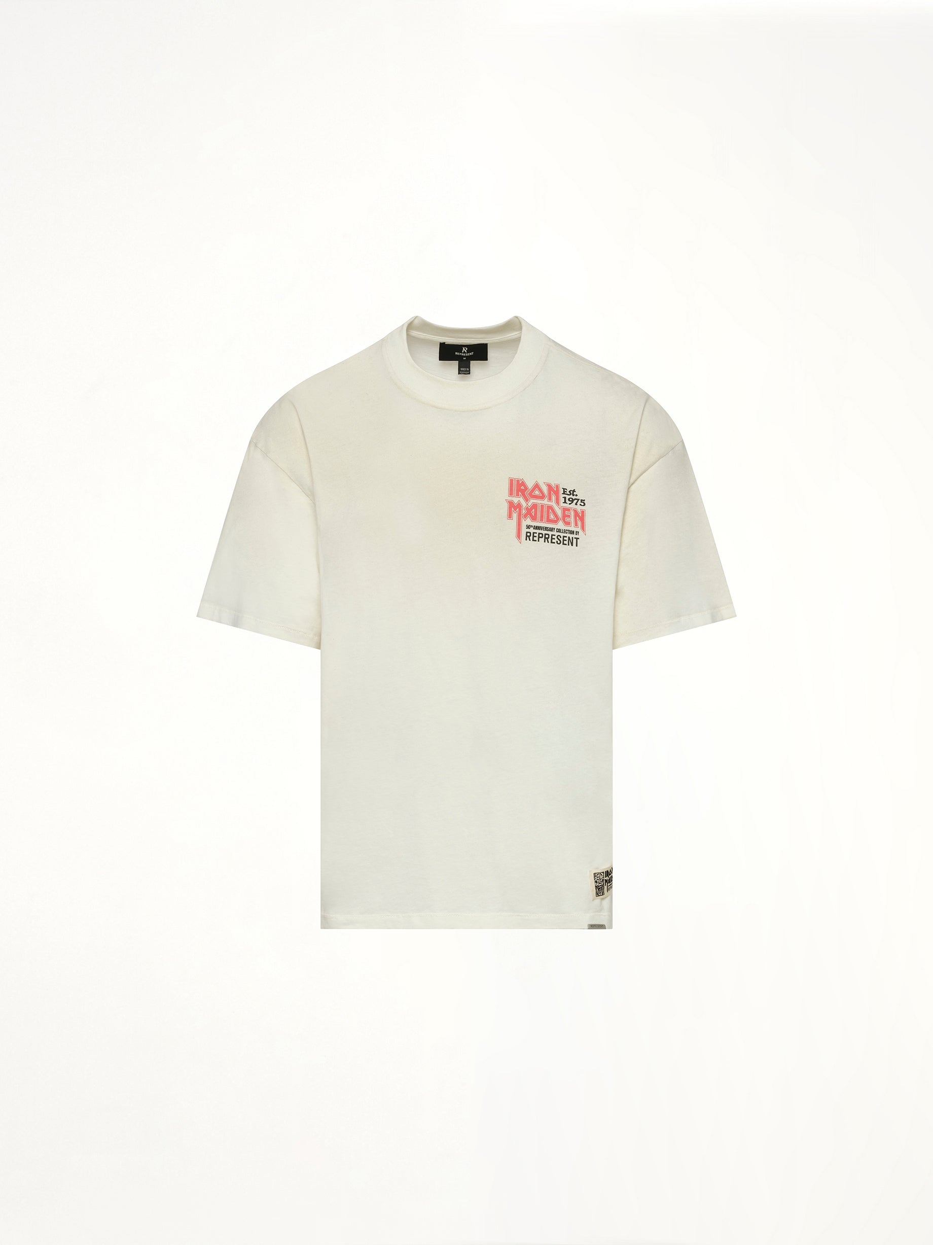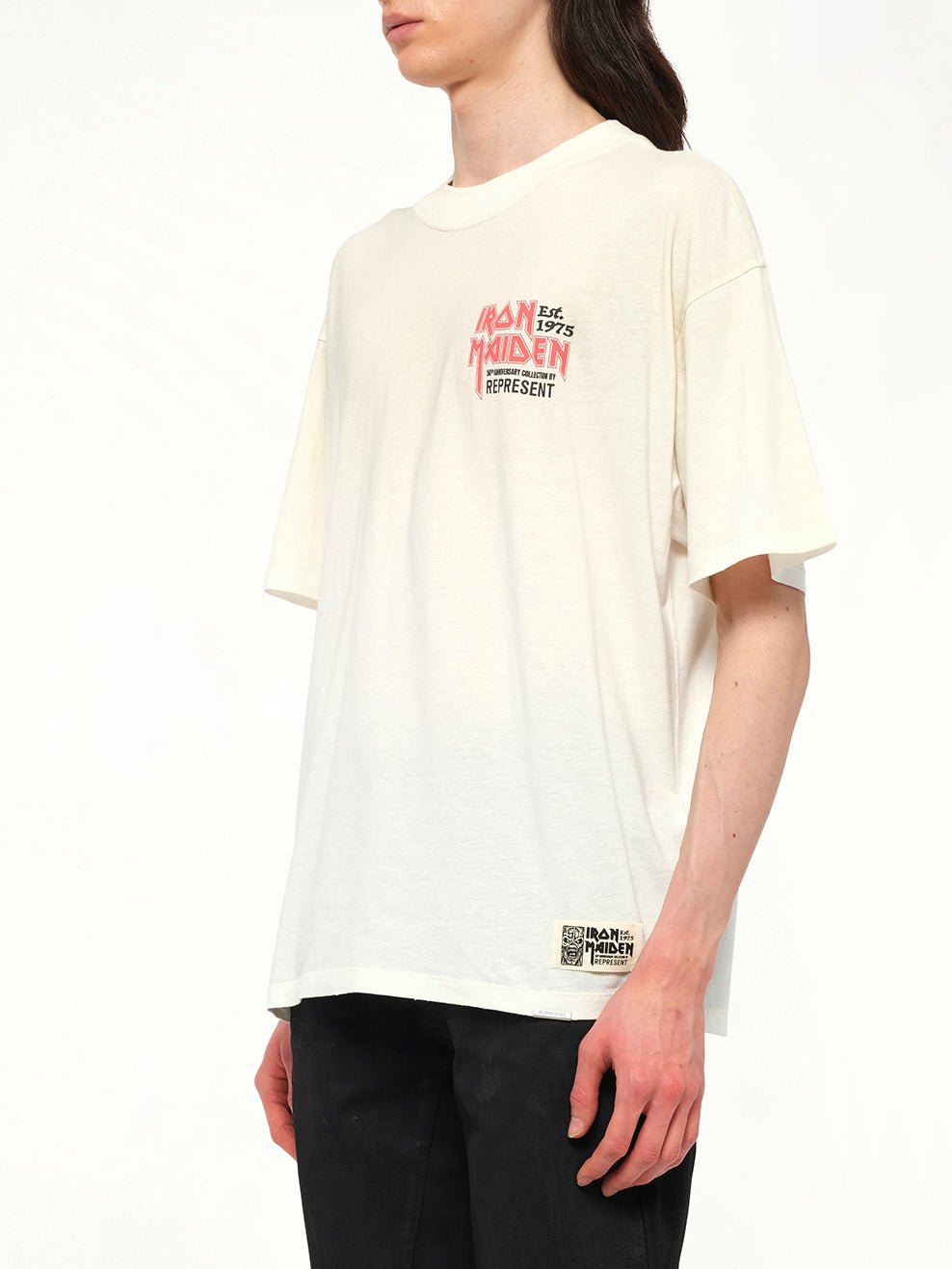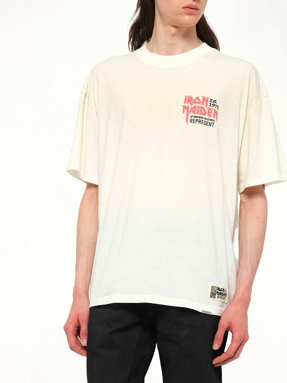 Represent's Iron Maiden Anniversary T-Shirt in Washed Ecru is a tribute to the legendary band's enduring legacy. This exclusive piece combines vintage aesthetics with modern style.