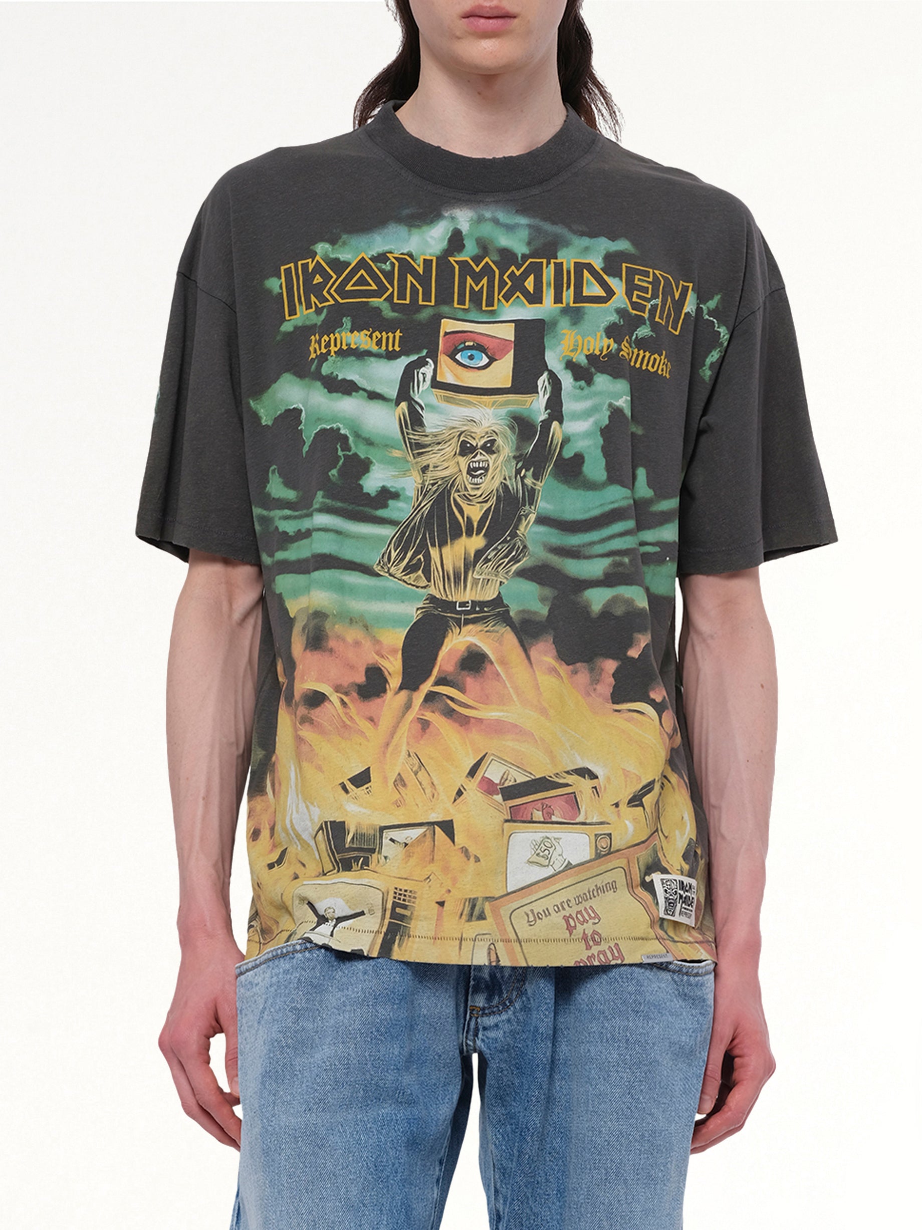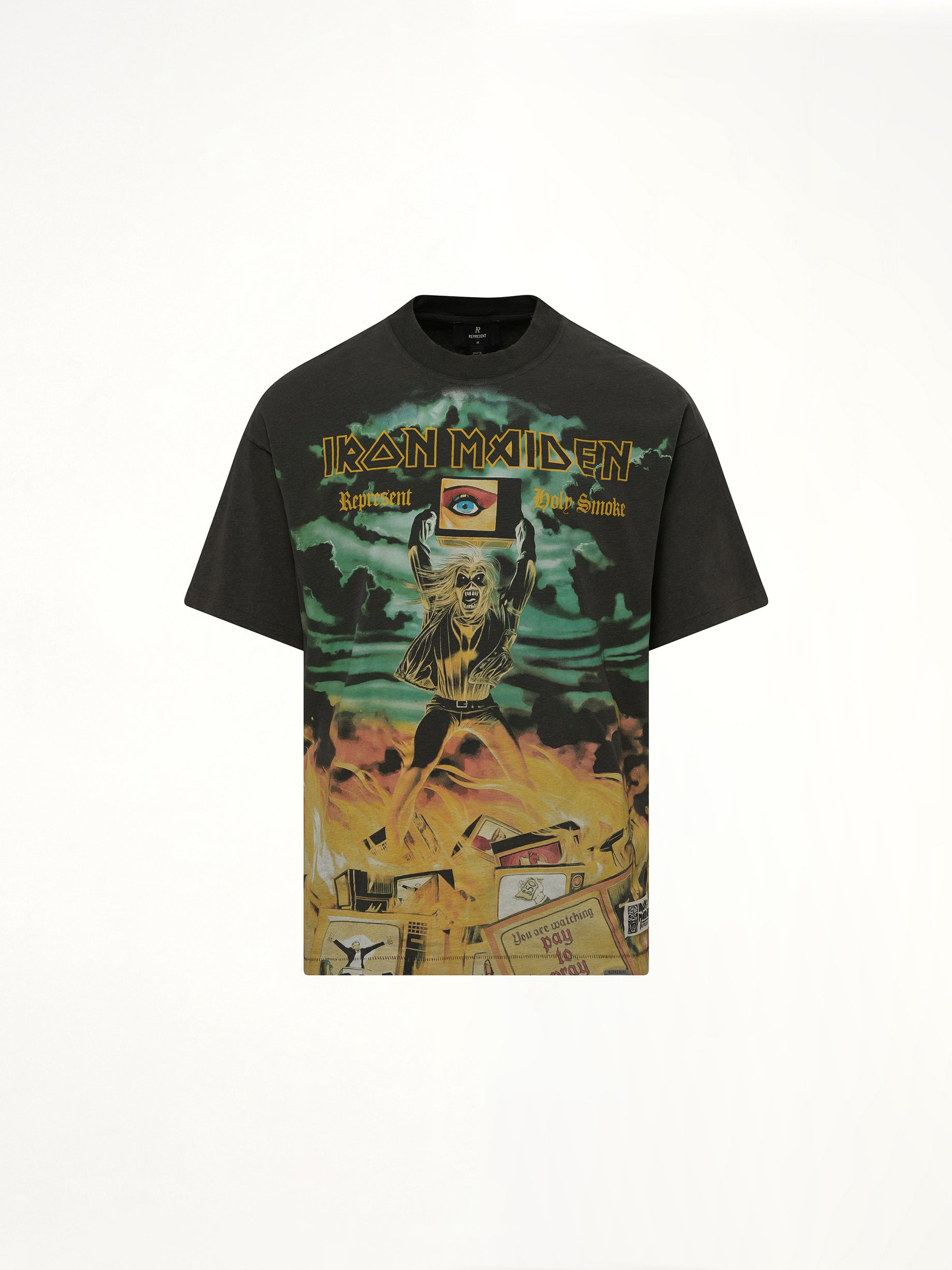 REPRESENT's Iron Maiden Holy Smoke T-Shirt in Ash is a tribute to the iconic band's legendary track, featuring a vintage-inspired design. This t-shirt offers a comfortable fit and a classic look for any Iron Maiden fan.