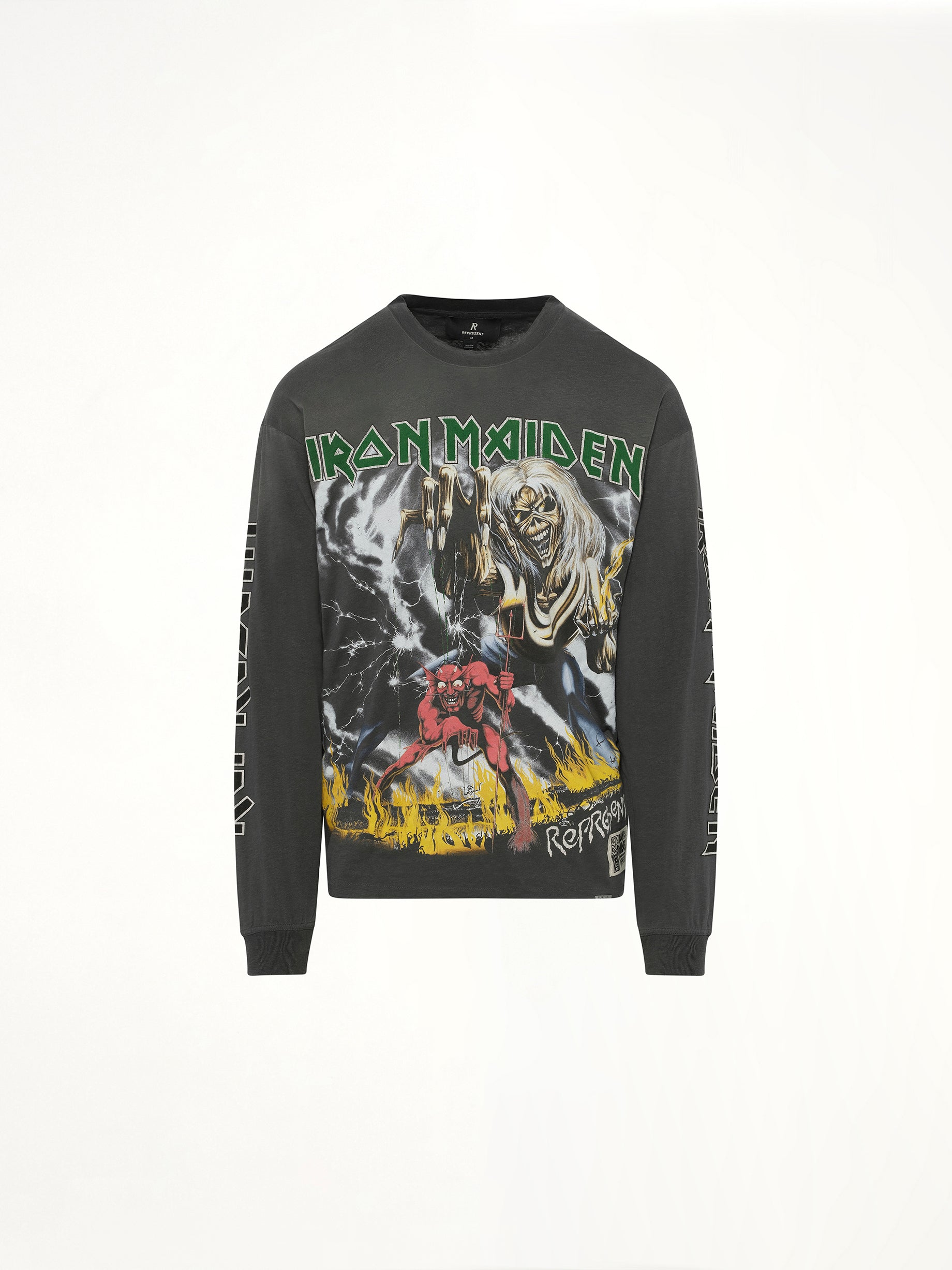 Represent's Iron Maiden Number of the Beast Long Sleeve T-Shirt in Sunfade Grey is a tribute to the iconic heavy metal band. This shirt features a vintage-inspired design that captures the essence of Iron Maiden's legendary album.