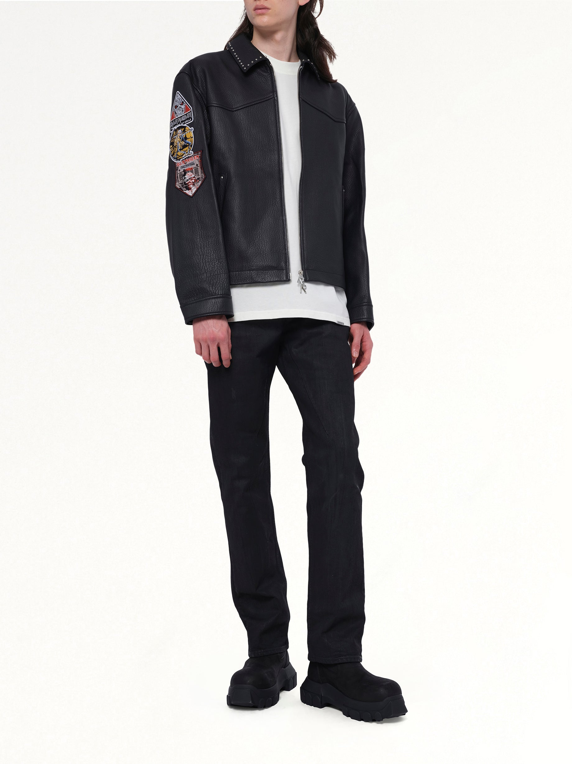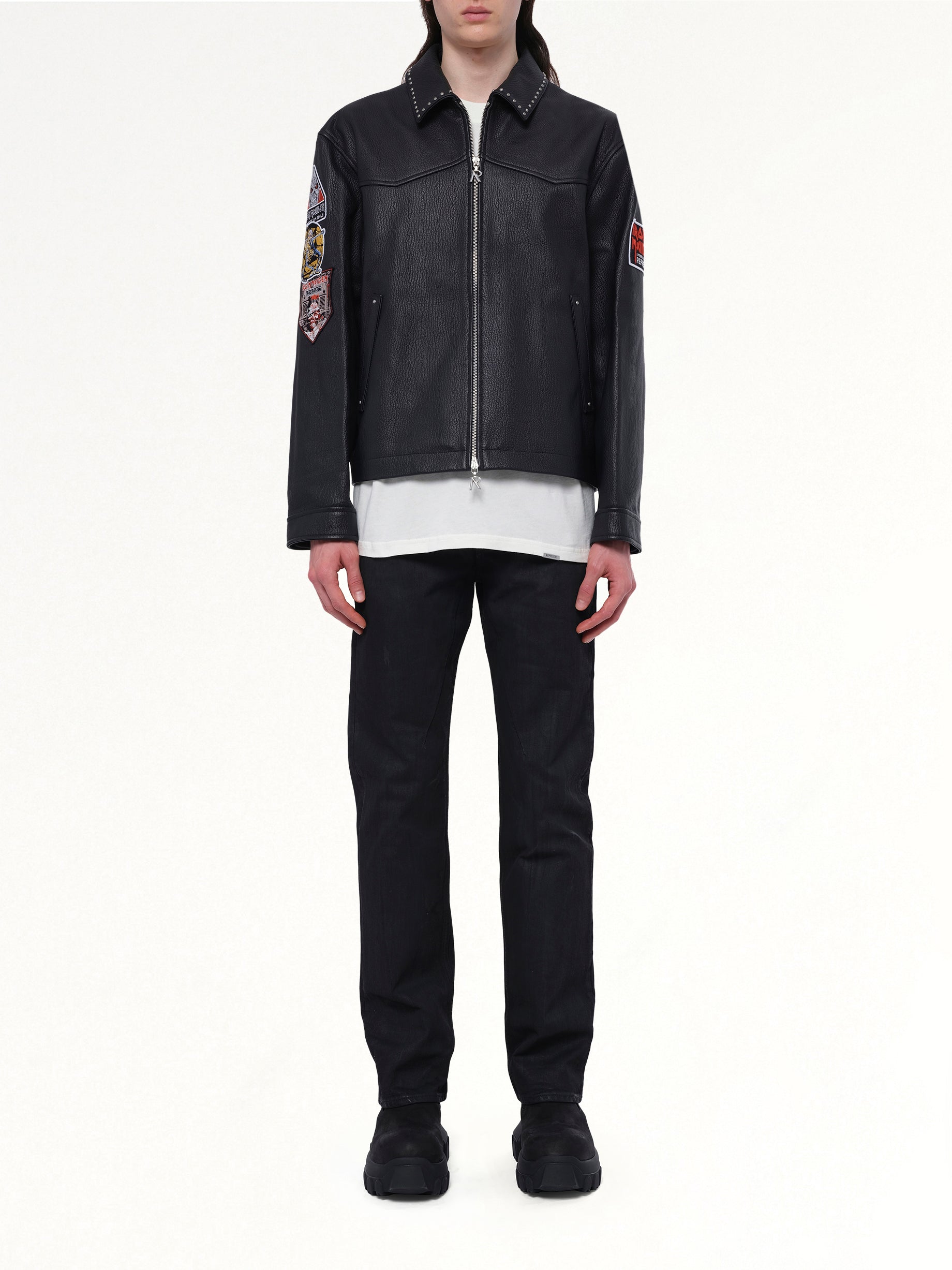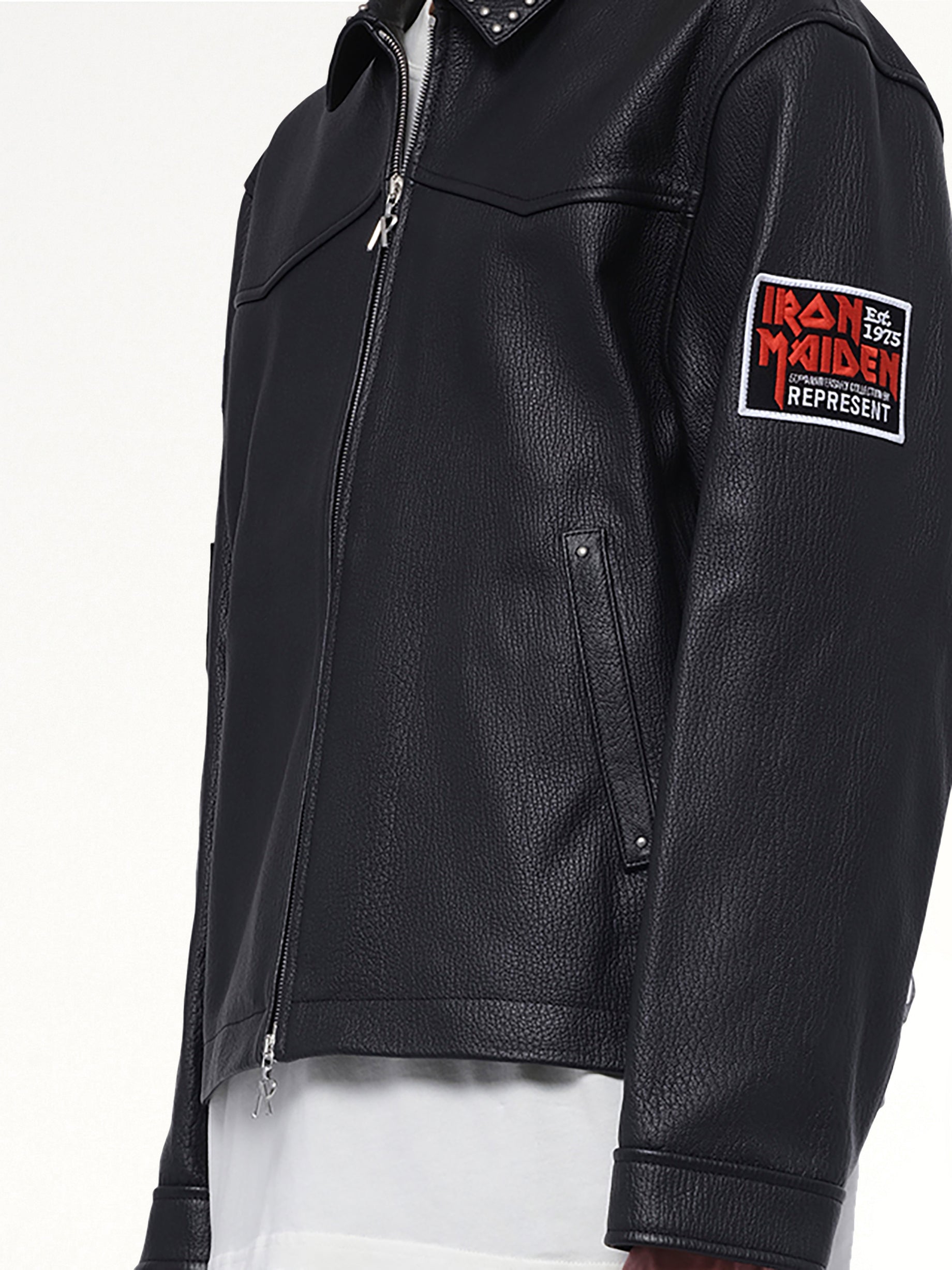 REPRESENT's Iron Maiden Trooper Leather Jacket in Jet Black is a bold statement piece inspired by the iconic band. This jacket combines classic rock aesthetics with modern design elements for a standout look.