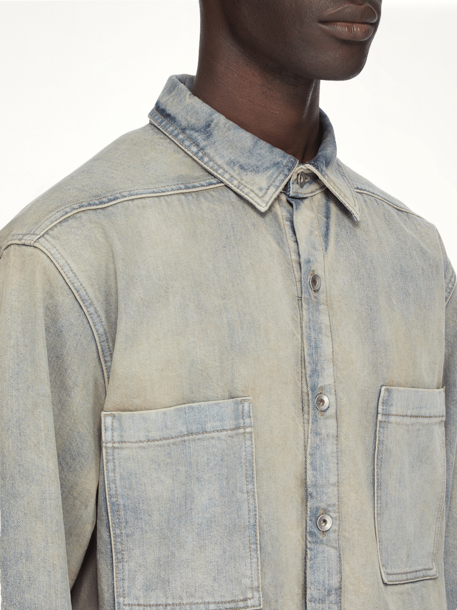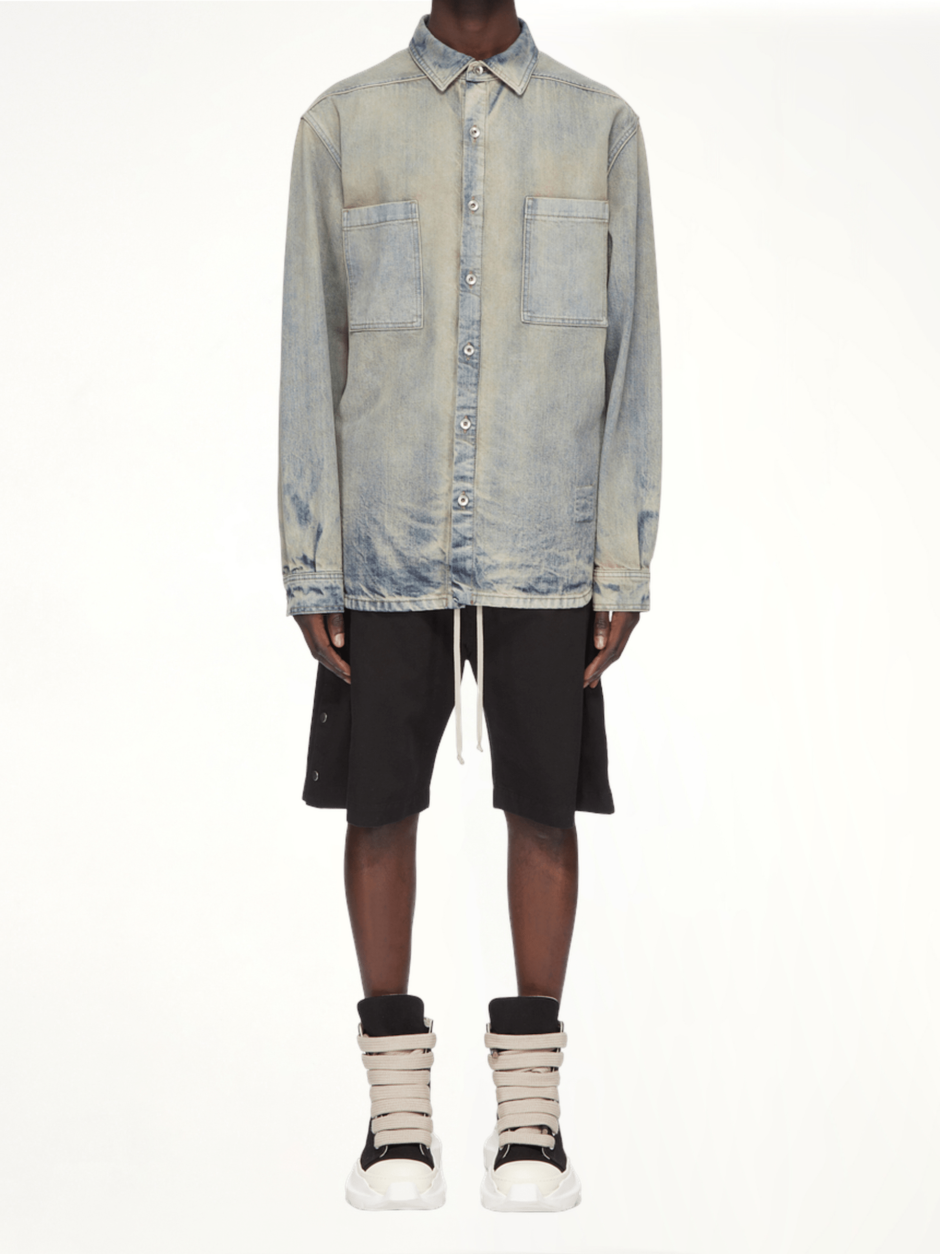 Rick Owens DRKSHDW's Jumbo Outer shirt in Mineral Pearl is a statement piece that combines avant-garde design with everyday functionality. This oversized shirt offers a unique silhouette, perfect for layering or wearing as a standalone piece.