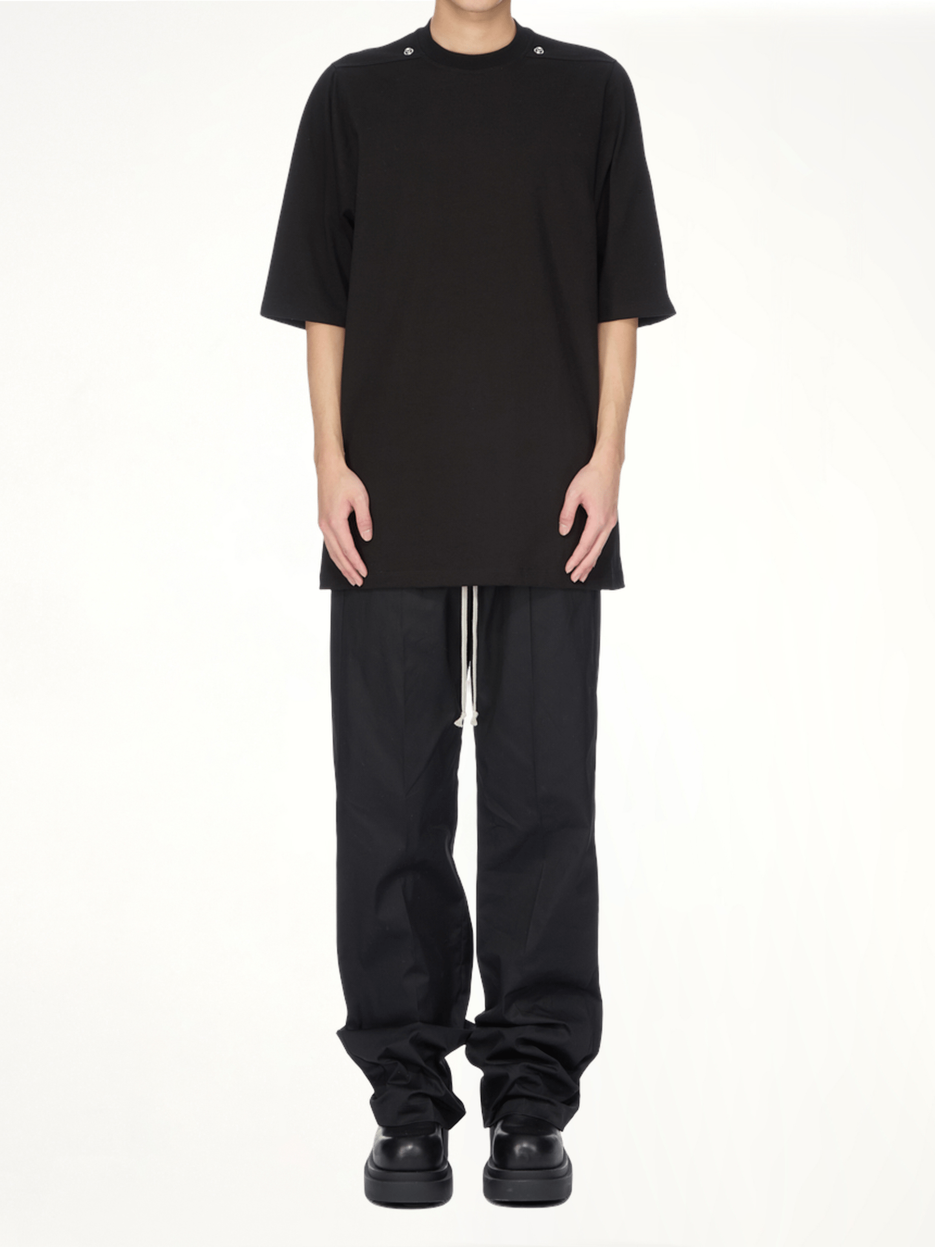 Rick Owens's Jumbo SS Rivet T-Shirt in Black is a bold statement piece that combines avant-garde design with everyday wearability. This oversized t-shirt features unique rivet detailing, adding an edge to your casual wardrobe.