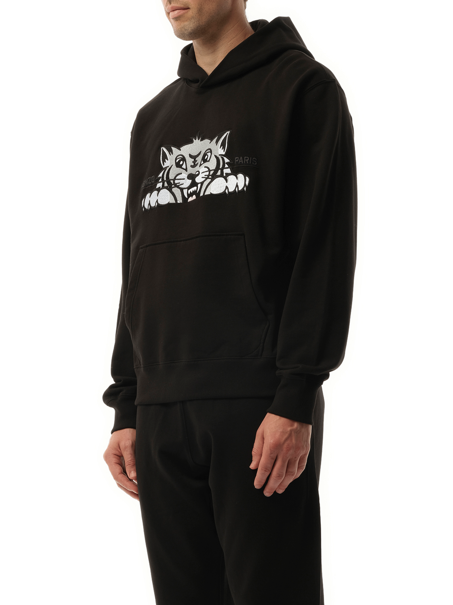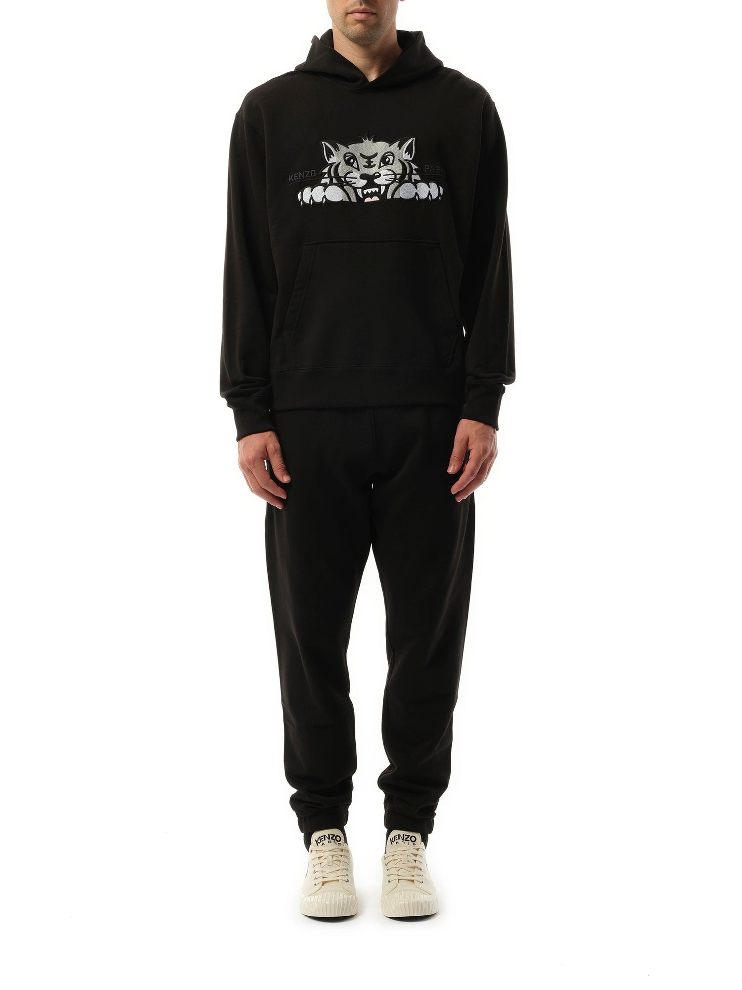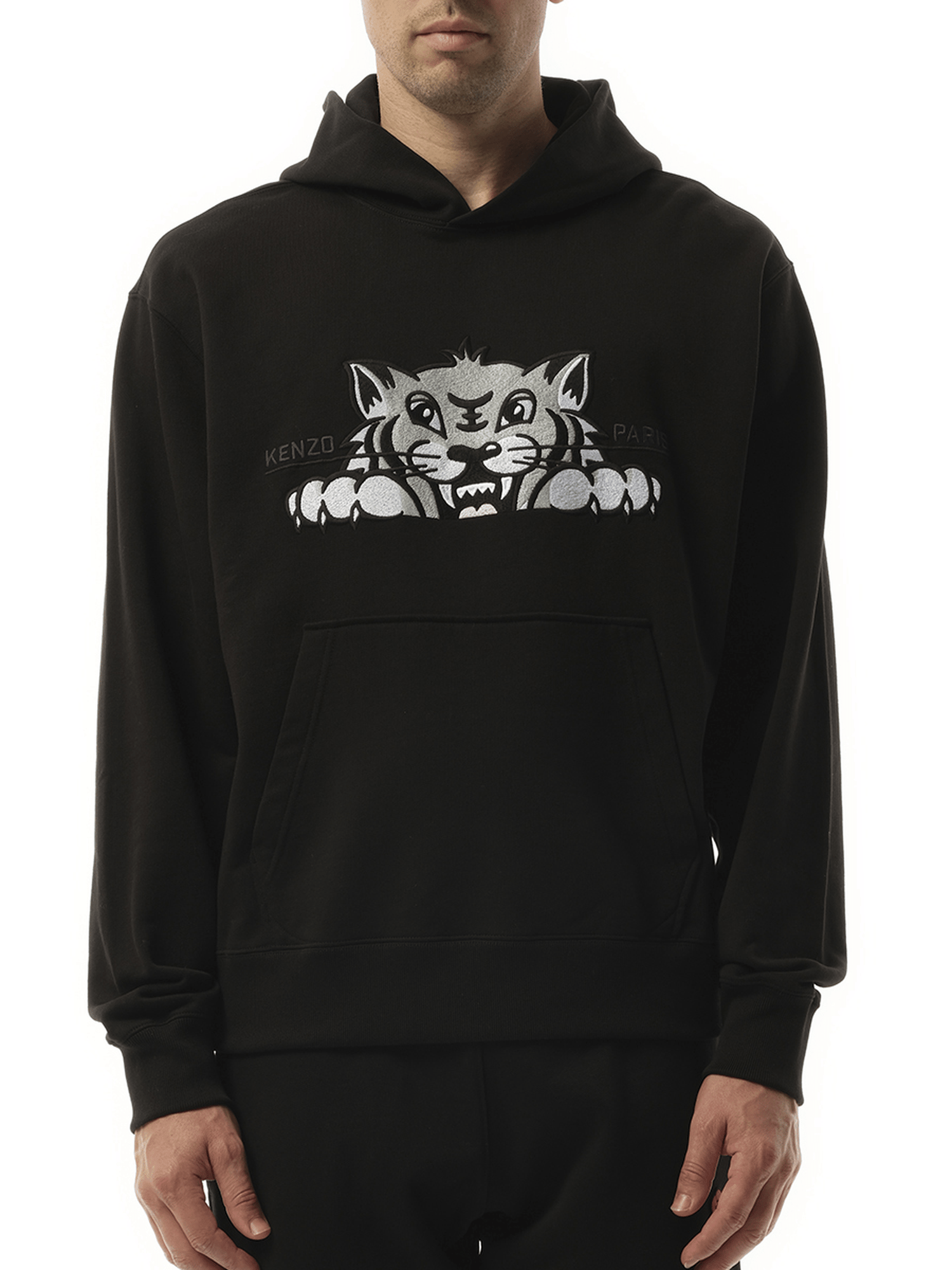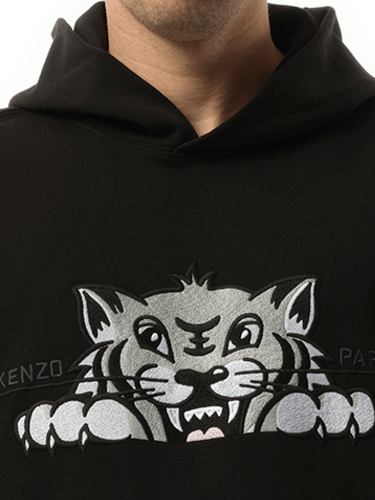 Kenzo Happy Tiger Embroidered Classic Hoodie in Black