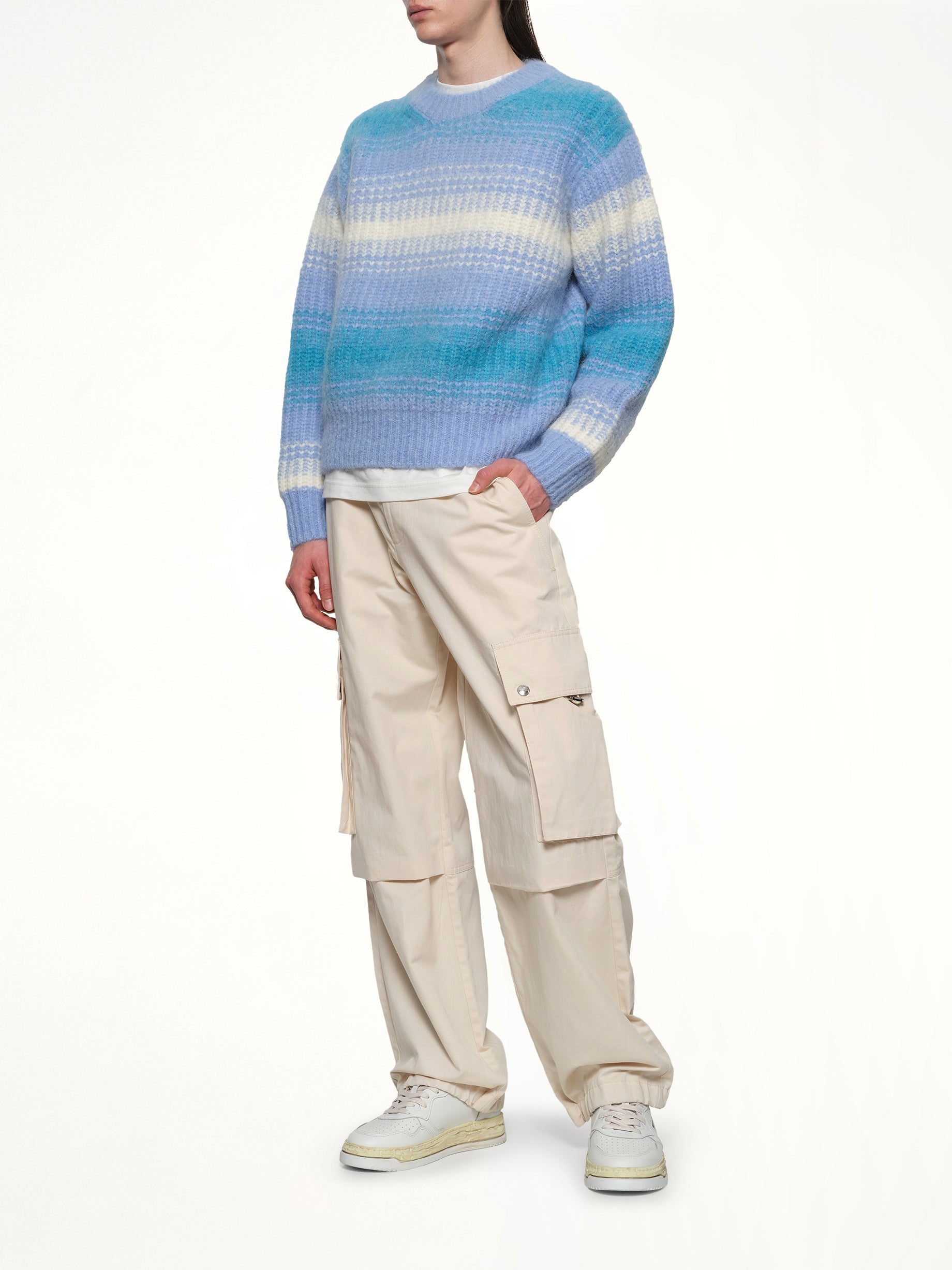 Kenzo's Kenzo Speed Stripe Jumper in Light Blue is a stylish and contemporary piece that adds a pop of color to any wardrobe. This jumper features a dynamic stripe design, perfect for making a statement.
