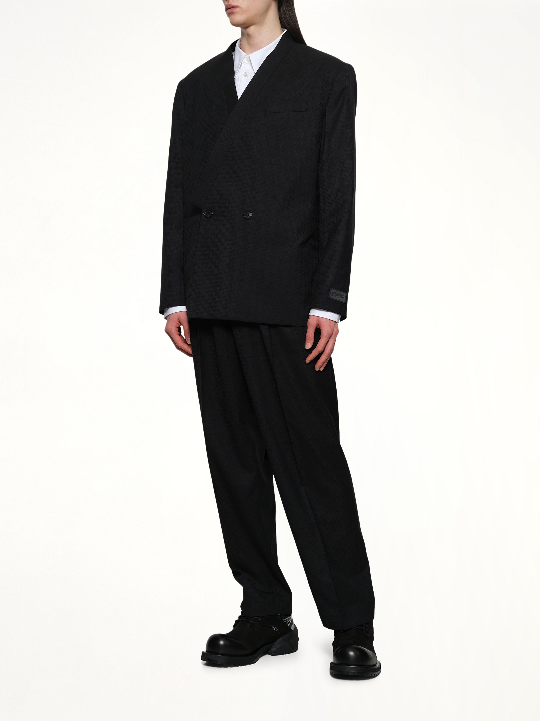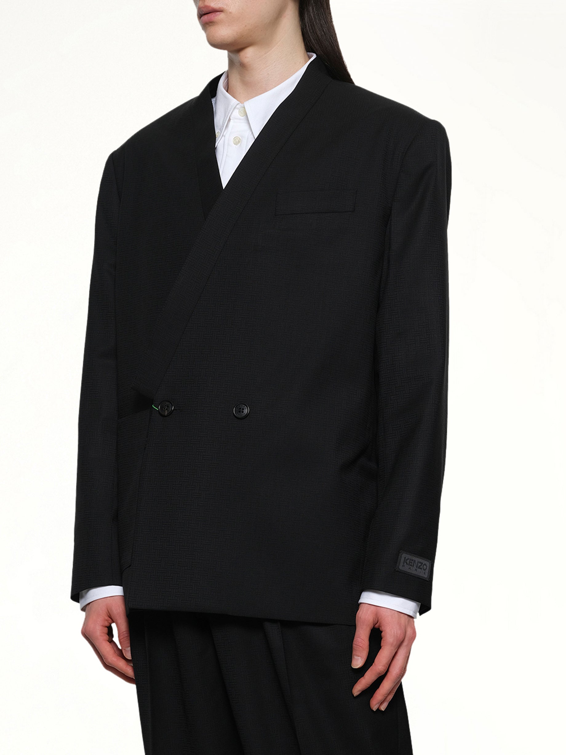 Kenzo's Kenzo Weave Kimono Tailored Jacket in Black is a sophisticated blend of traditional and modern design. This jacket offers a unique silhouette that stands out in any wardrobe.