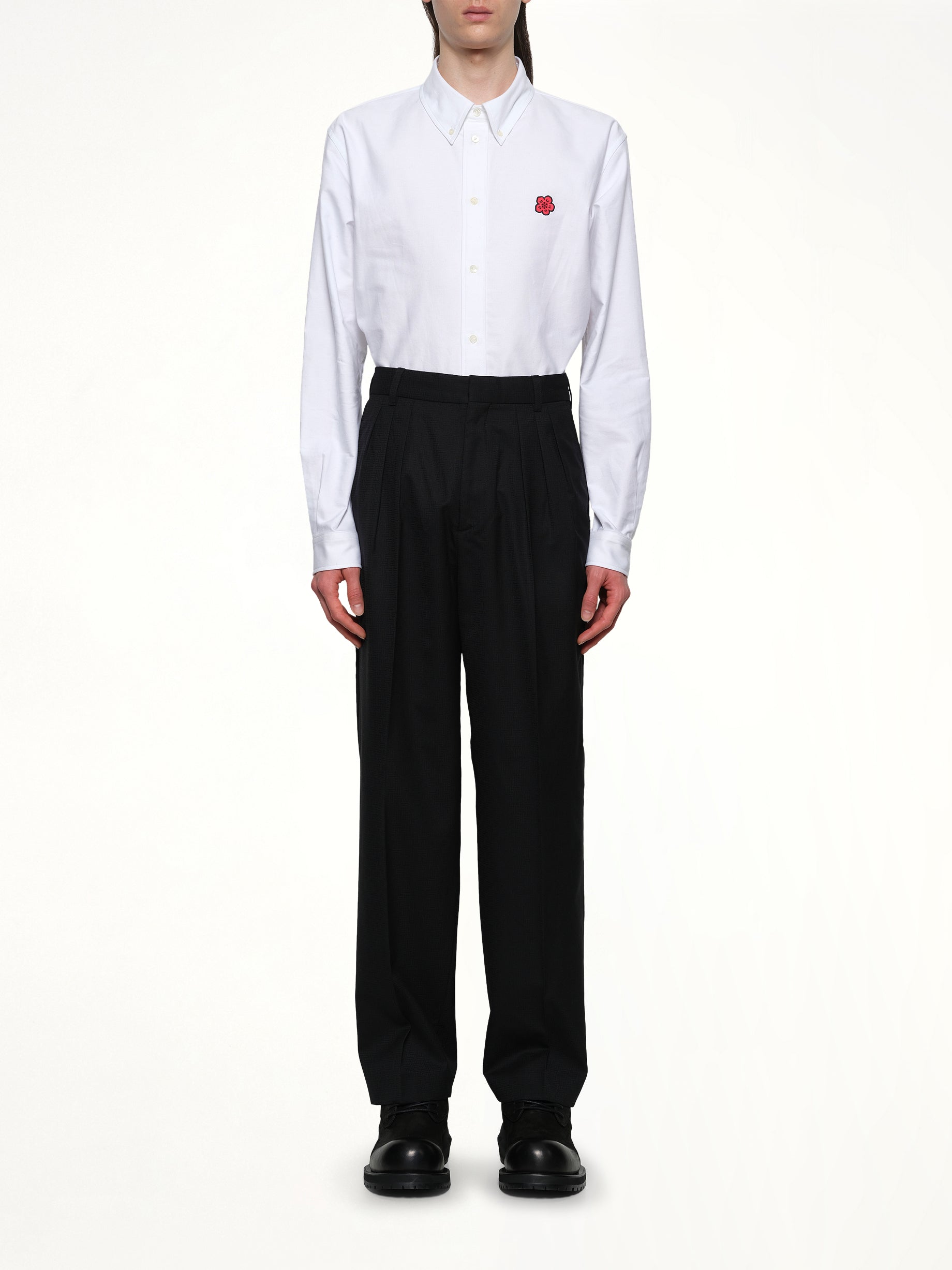 Kenzo's Kenzo Weave Pleated Tailored Pant in Black is a sophisticated addition to any wardrobe, offering a blend of modern style and classic tailoring. These pants are designed to provide a sleek silhouette with a comfortable fit.