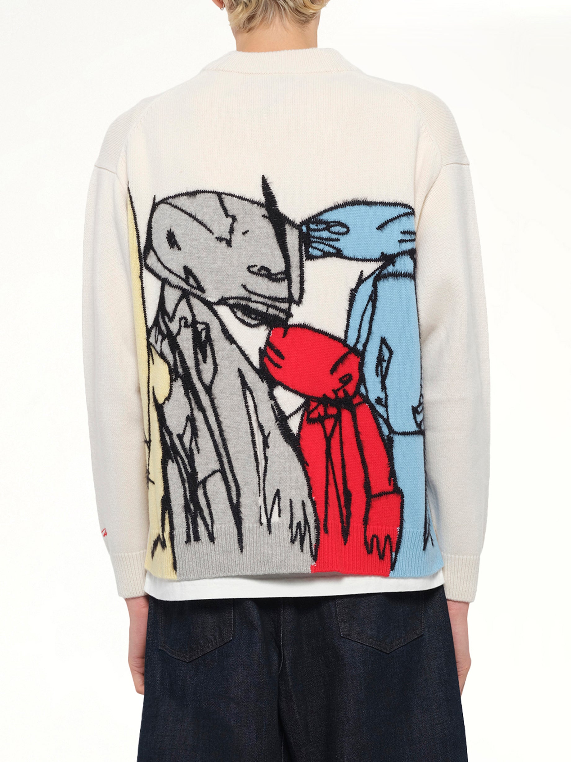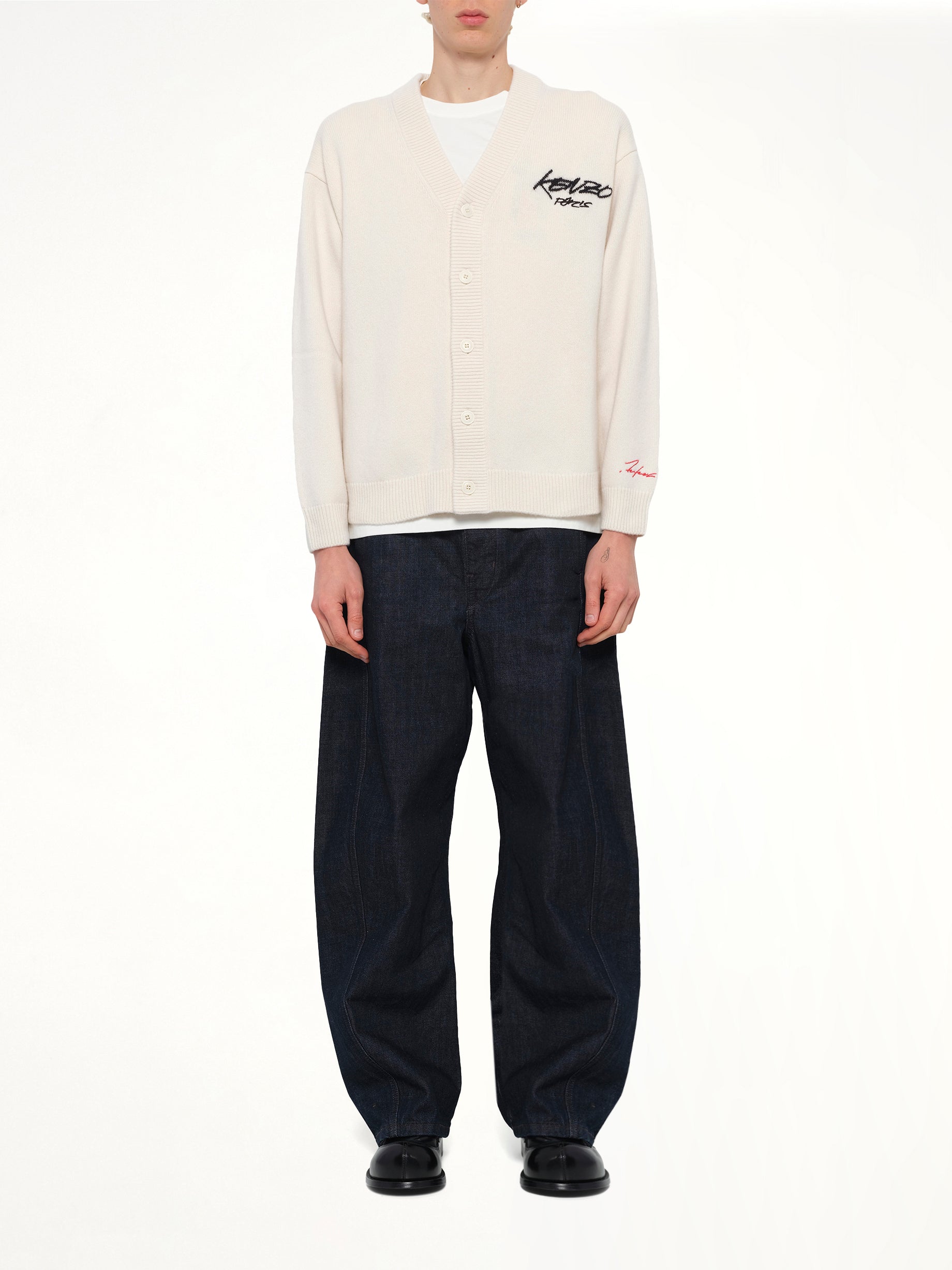Kenzo's Kenzo x Futura 2000 Cardigan in Off White is a stylish collaboration piece that merges contemporary art with fashion. This cardigan features unique design elements that make it a standout addition to any wardrobe.