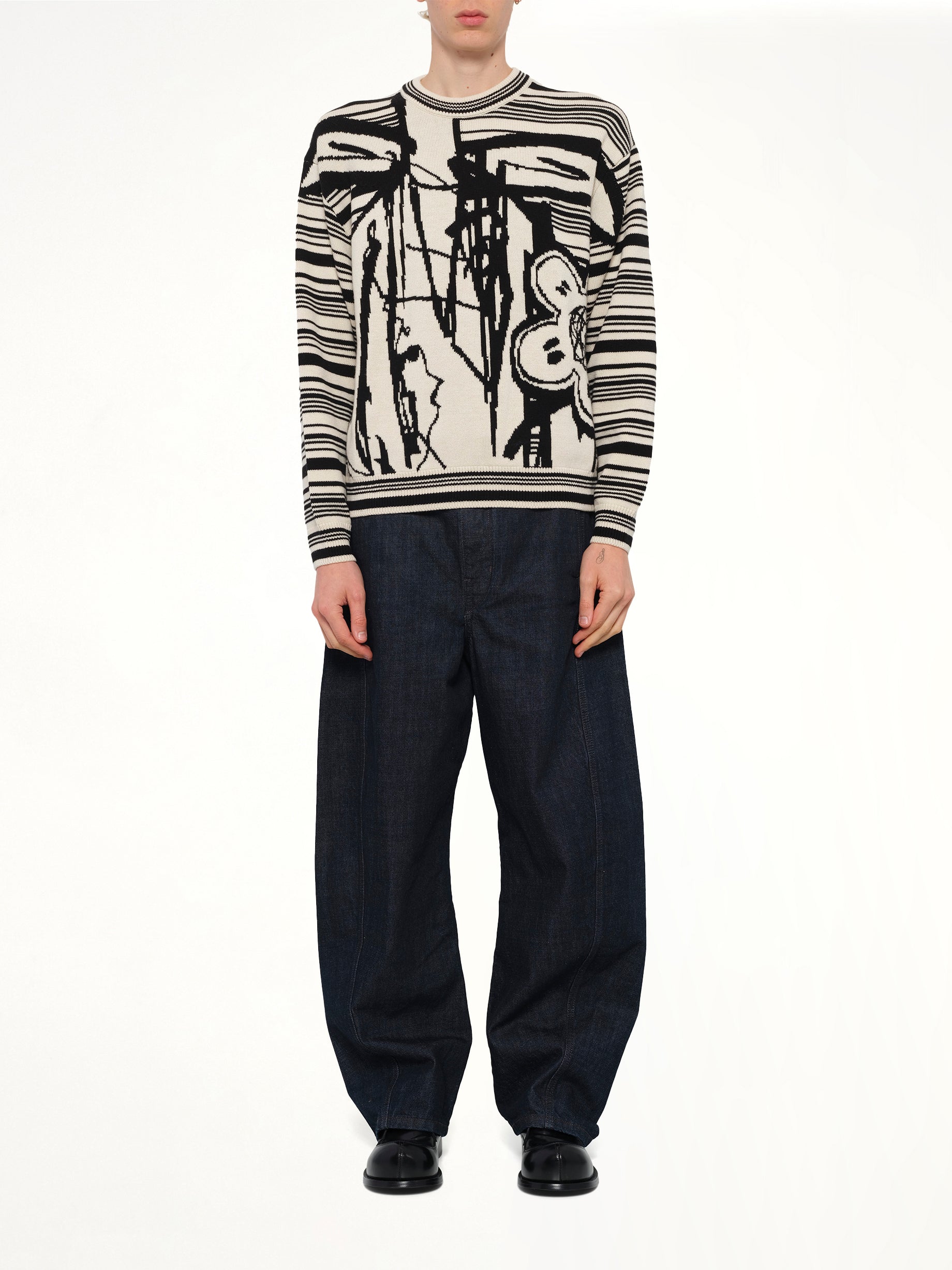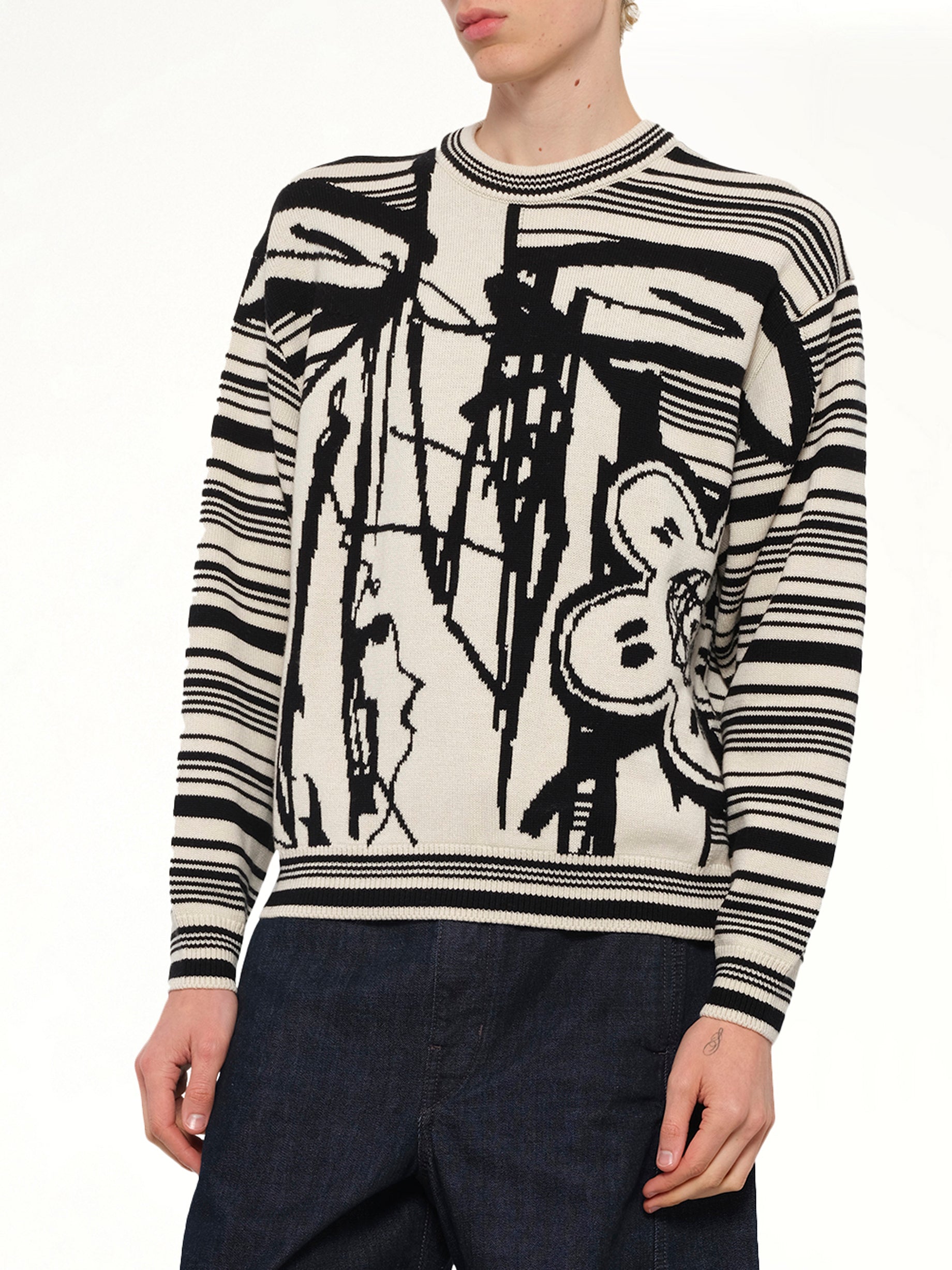 Kenzo's Kenzo x Futura 2000 Sweater in Off White is a unique collaboration piece that combines street art with high fashion. This sweater features a distinctive design by the renowned graffiti artist Futura 2000, making it a standout addition to any wardrobe.